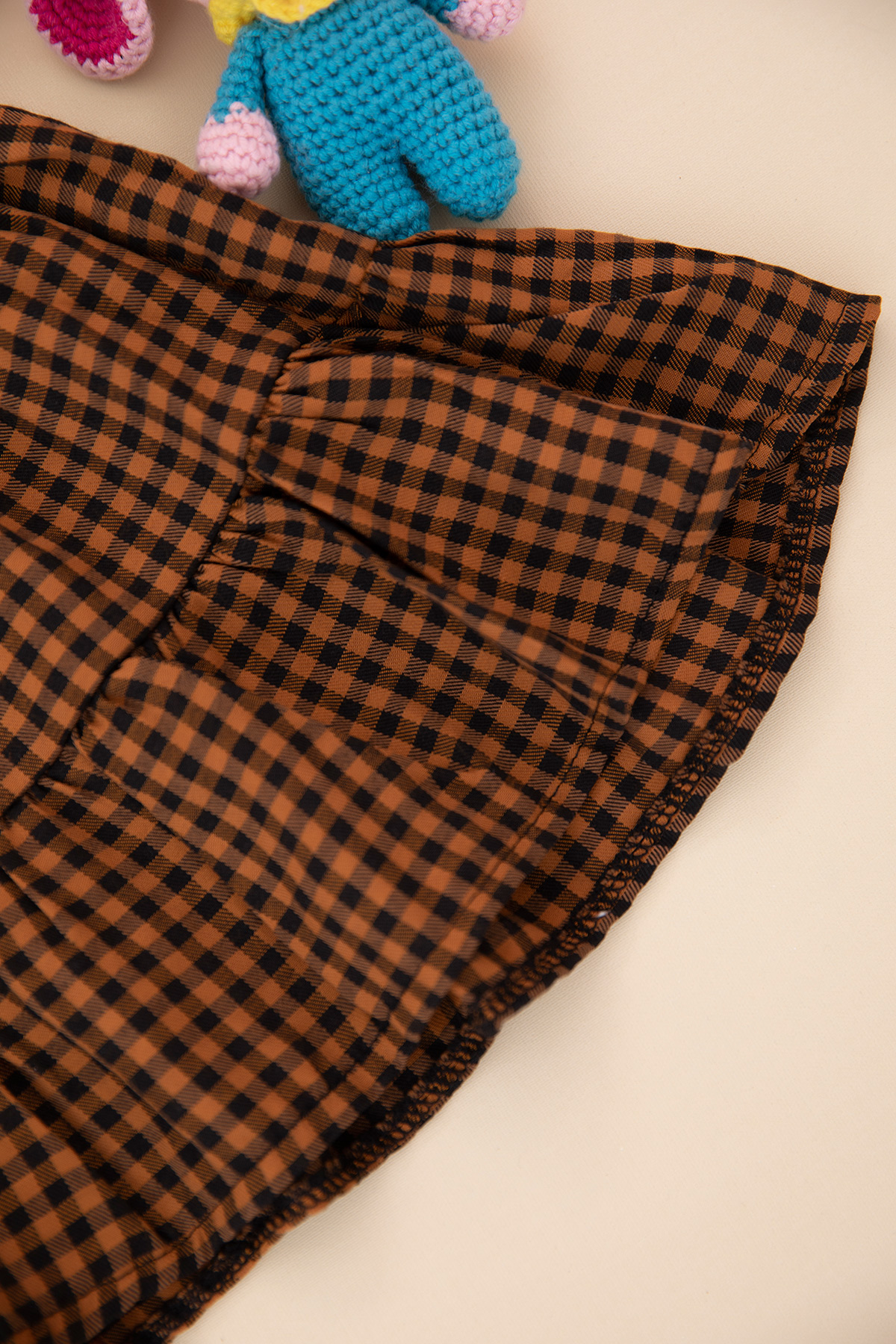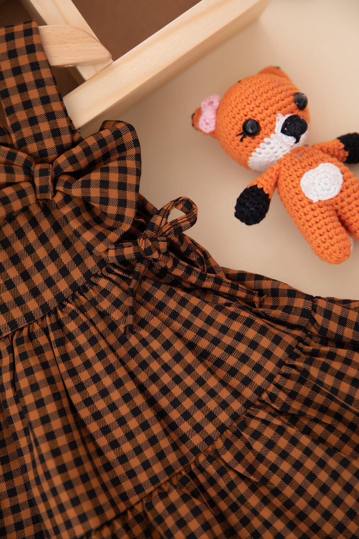 Kız Çocuk Viskon Ekose Baskılı Şapkalı Elbise - 8103 (2-6 Yaş)