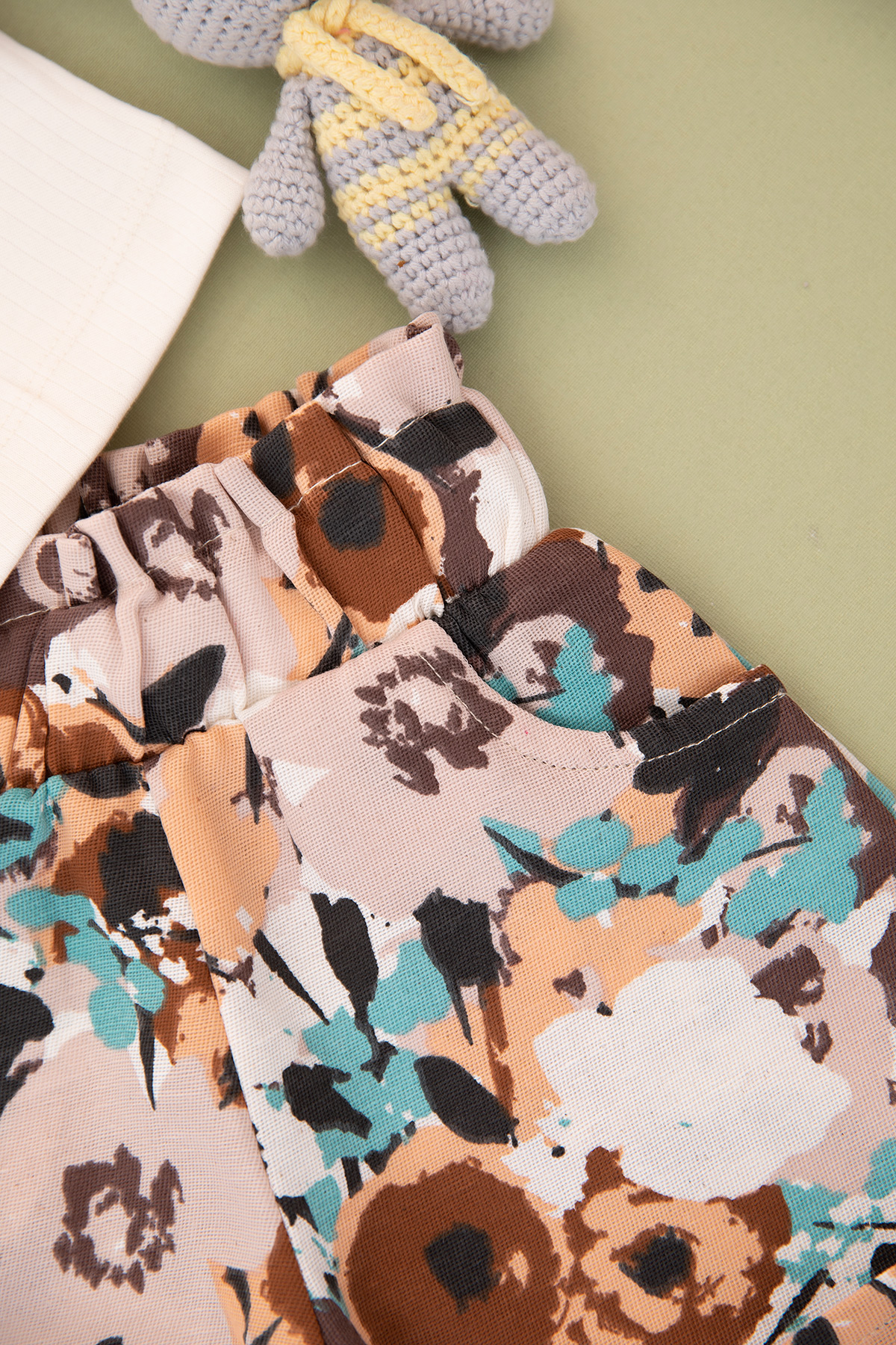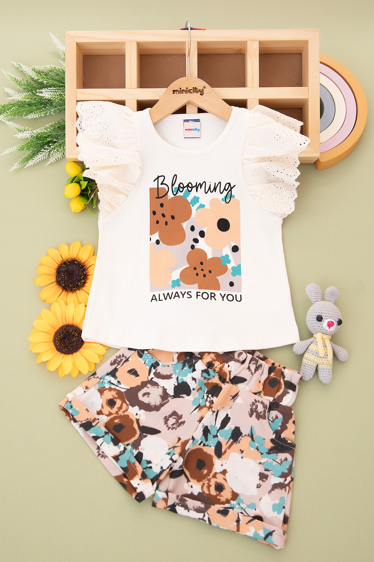 Kız Çocuk Vual Kollu Dokuma Kumaşlı Şortlu Takım - 24292 (3-6 Yaş)