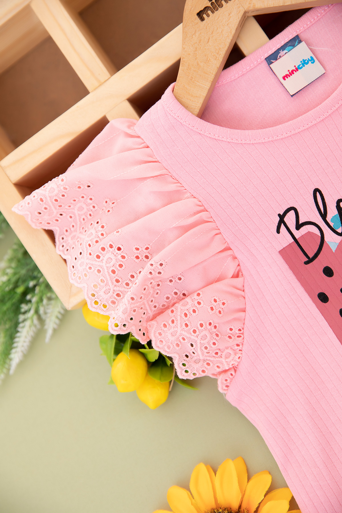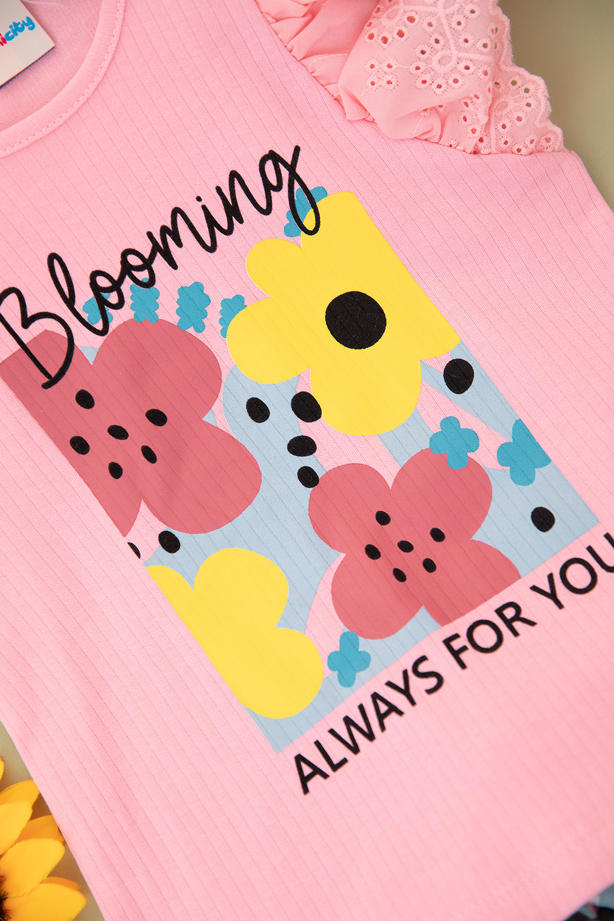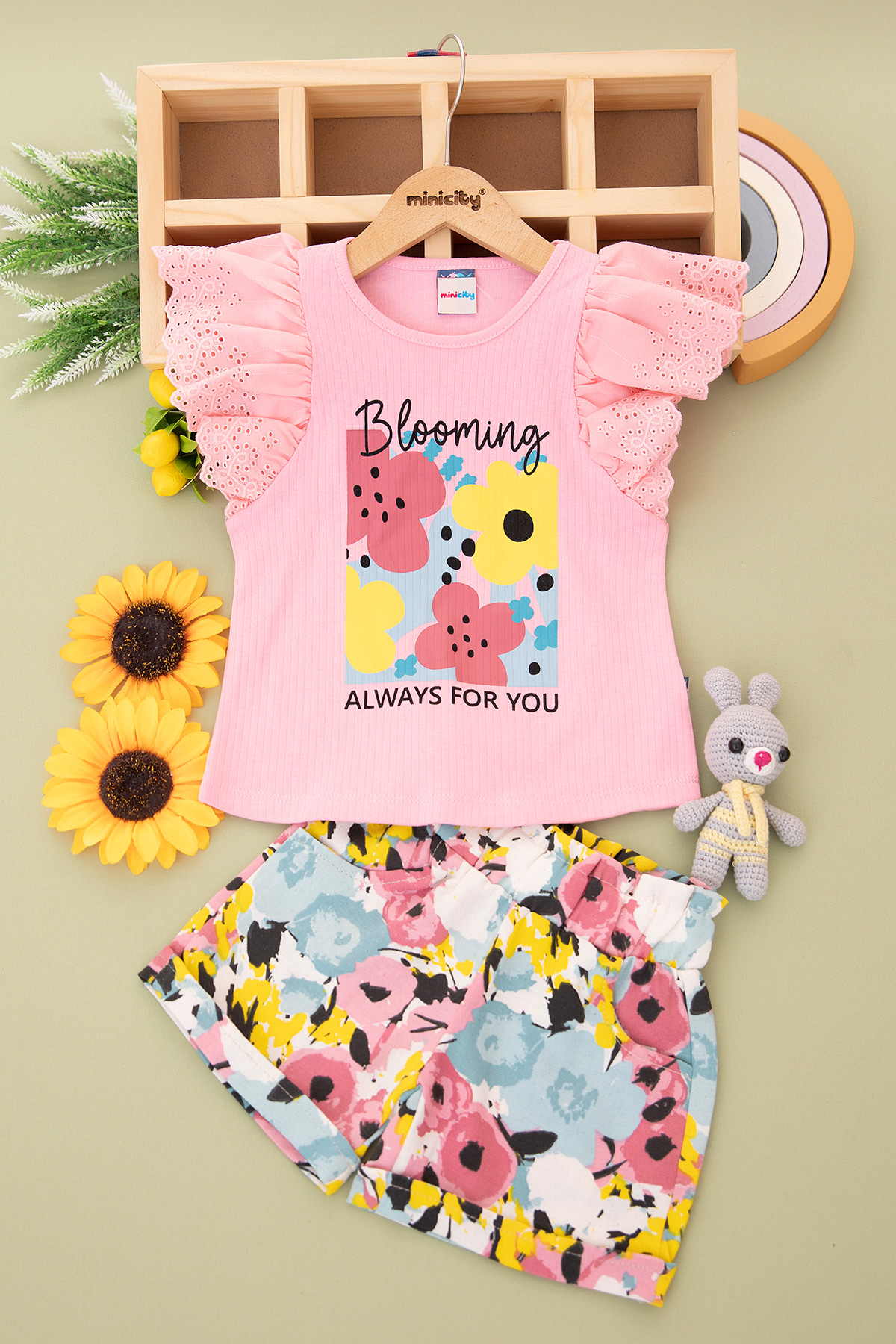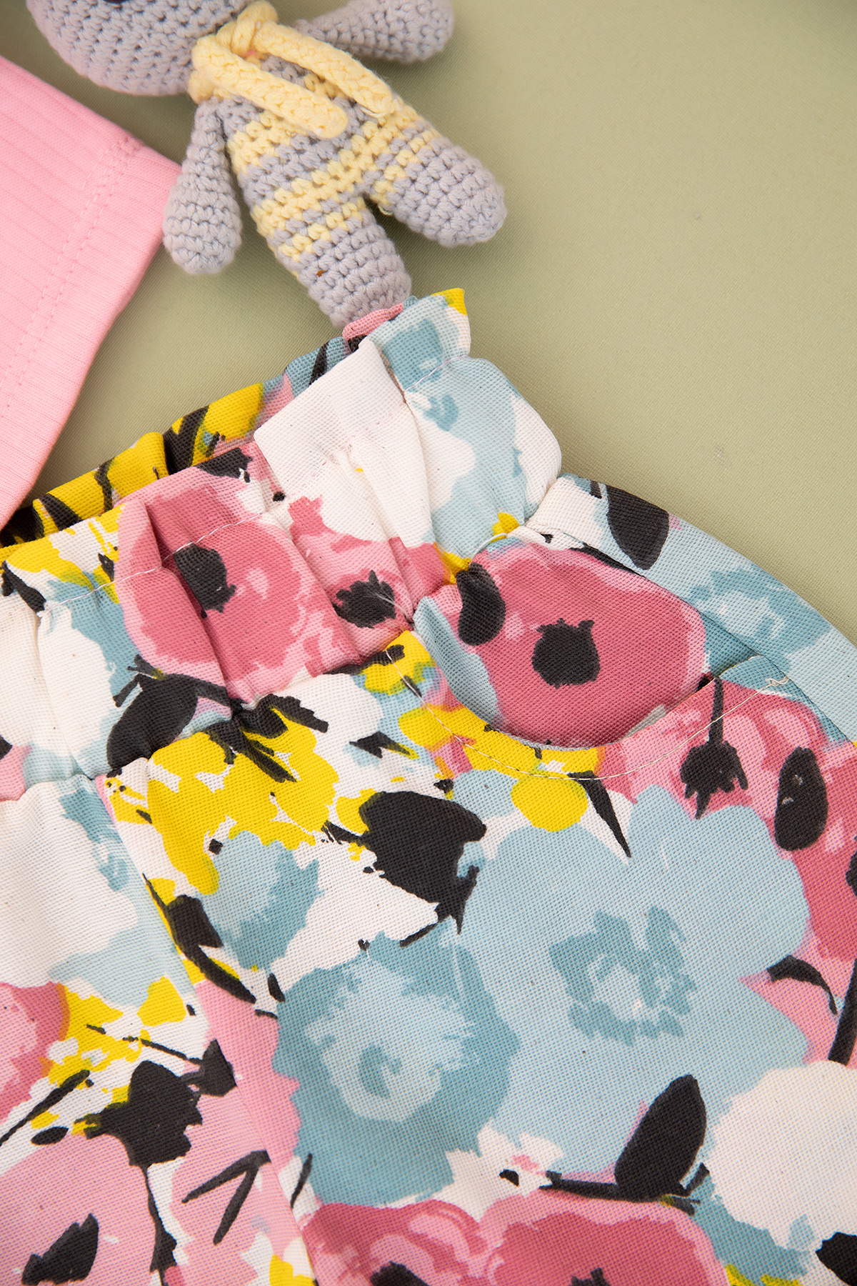 Kız Çocuk Vual Kollu Dokuma Kumaşlı Şortlu Takım - 24292 (3-6 Yaş)