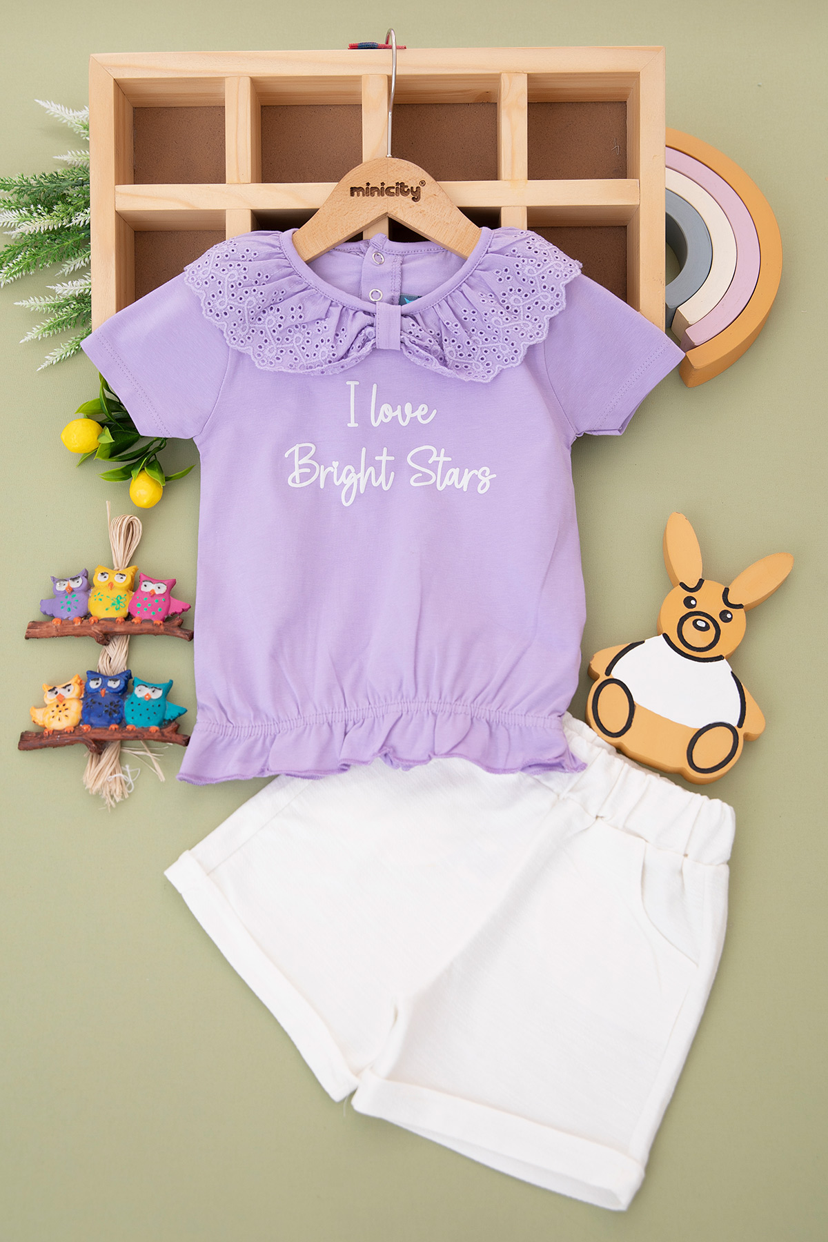 Kız Çocuk Vual Yakalı Şortlu Takım - 24304 (3-6 Yaş)