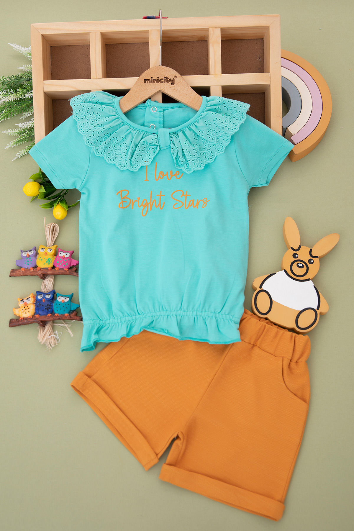 Kız Çocuk Vual Yakalı Şortlu Takım - 24304 (3-6 Yaş)