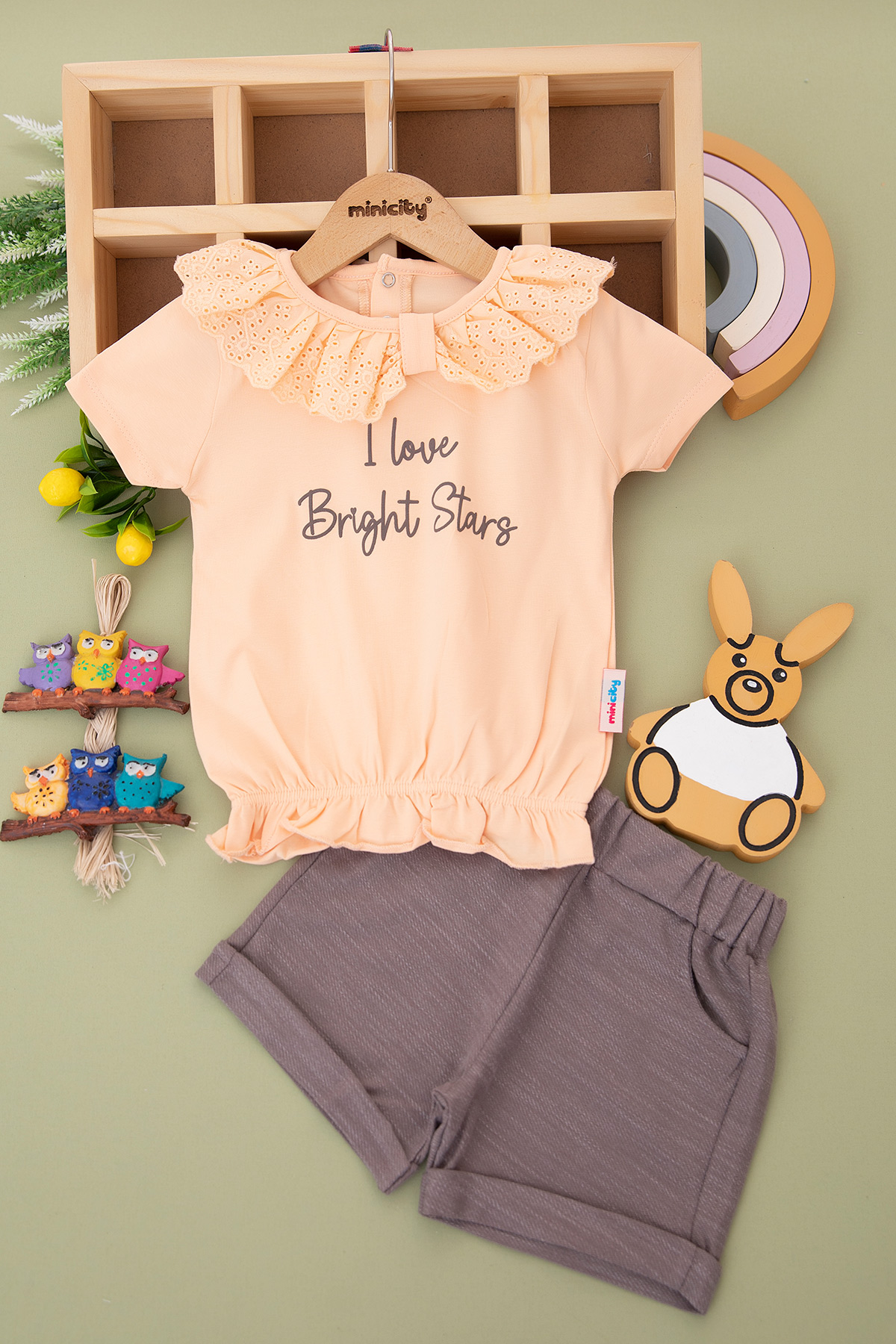 Kız Çocuk Vual Yakalı Şortlu Takım - 24304 (3-6 Yaş)