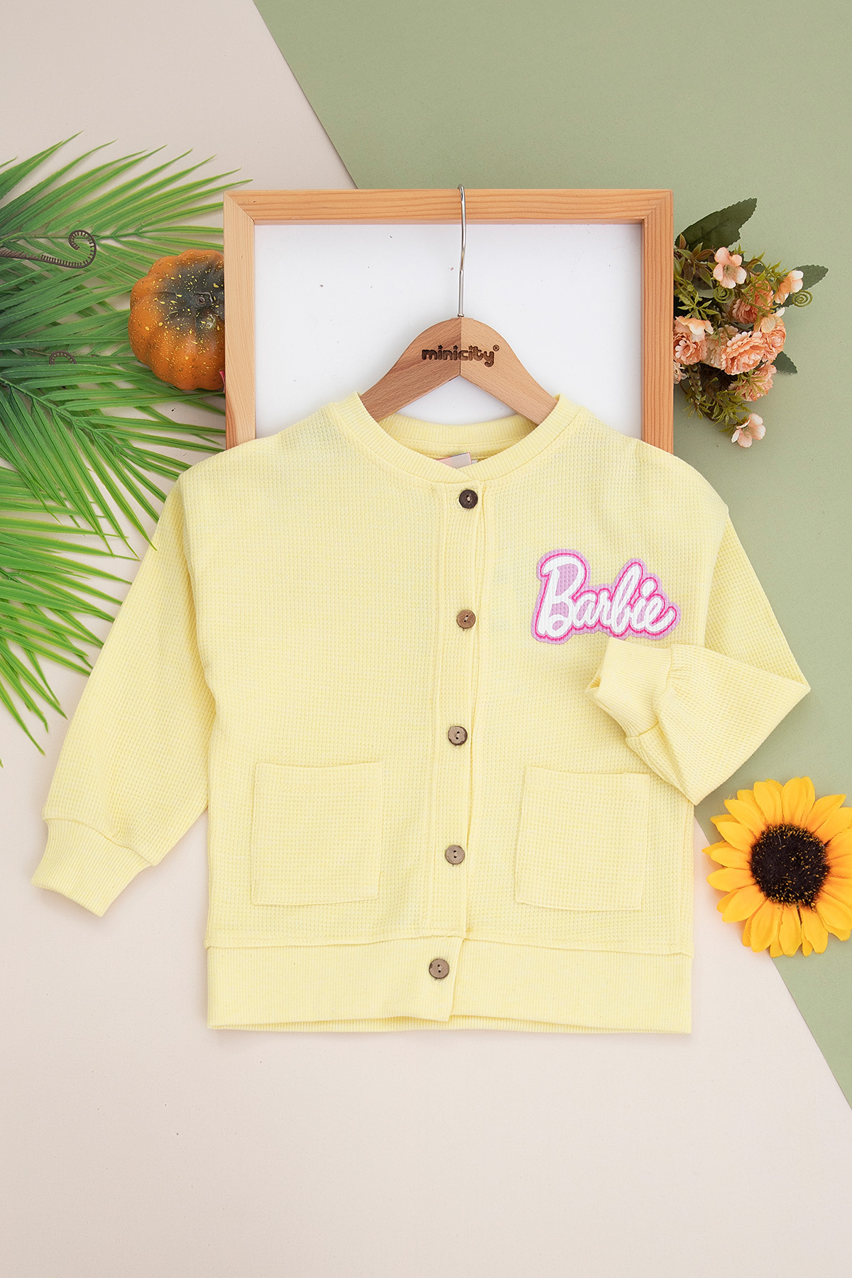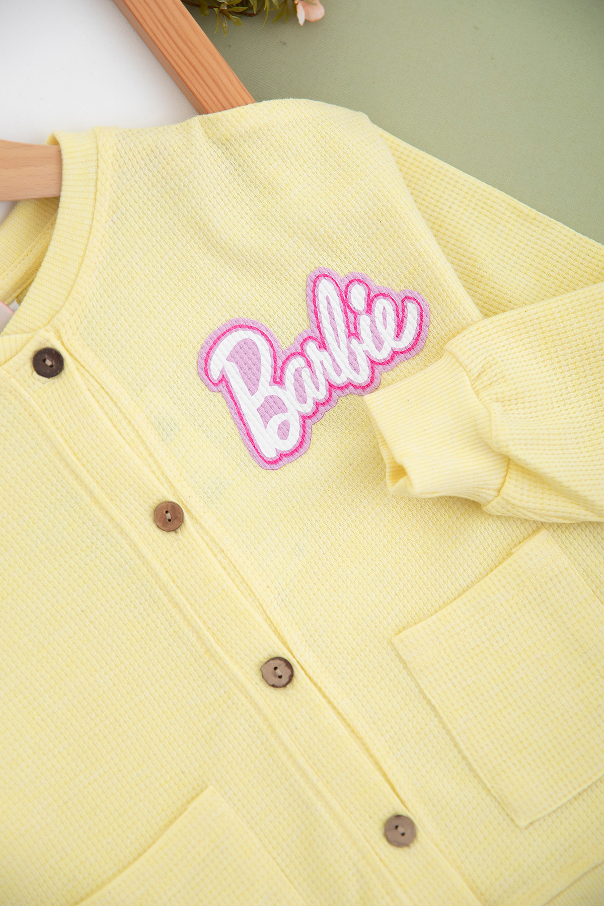 Kız Çocuk Waffle Kumaş Barbie Baskılı Hırka (3-8 Yaş)