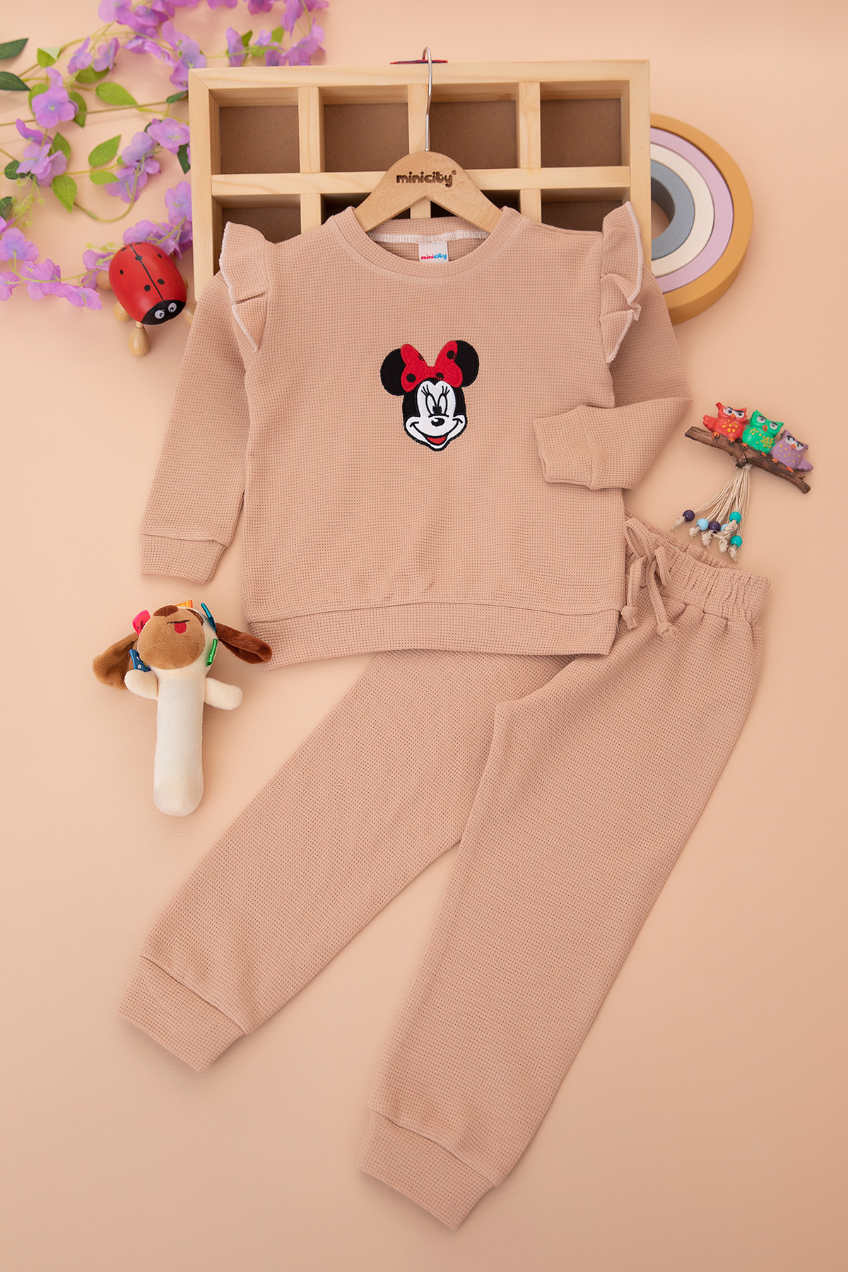 Kız Çocuk Waffle Mickey Nakışlı Takım - 11692 (4-8 Yaş)