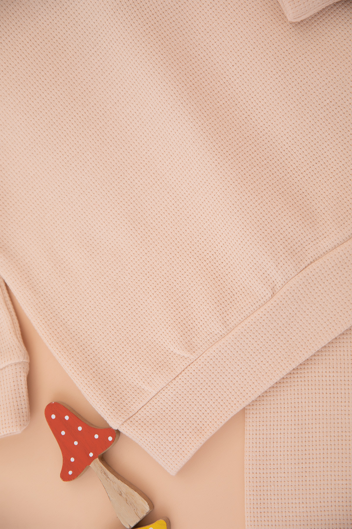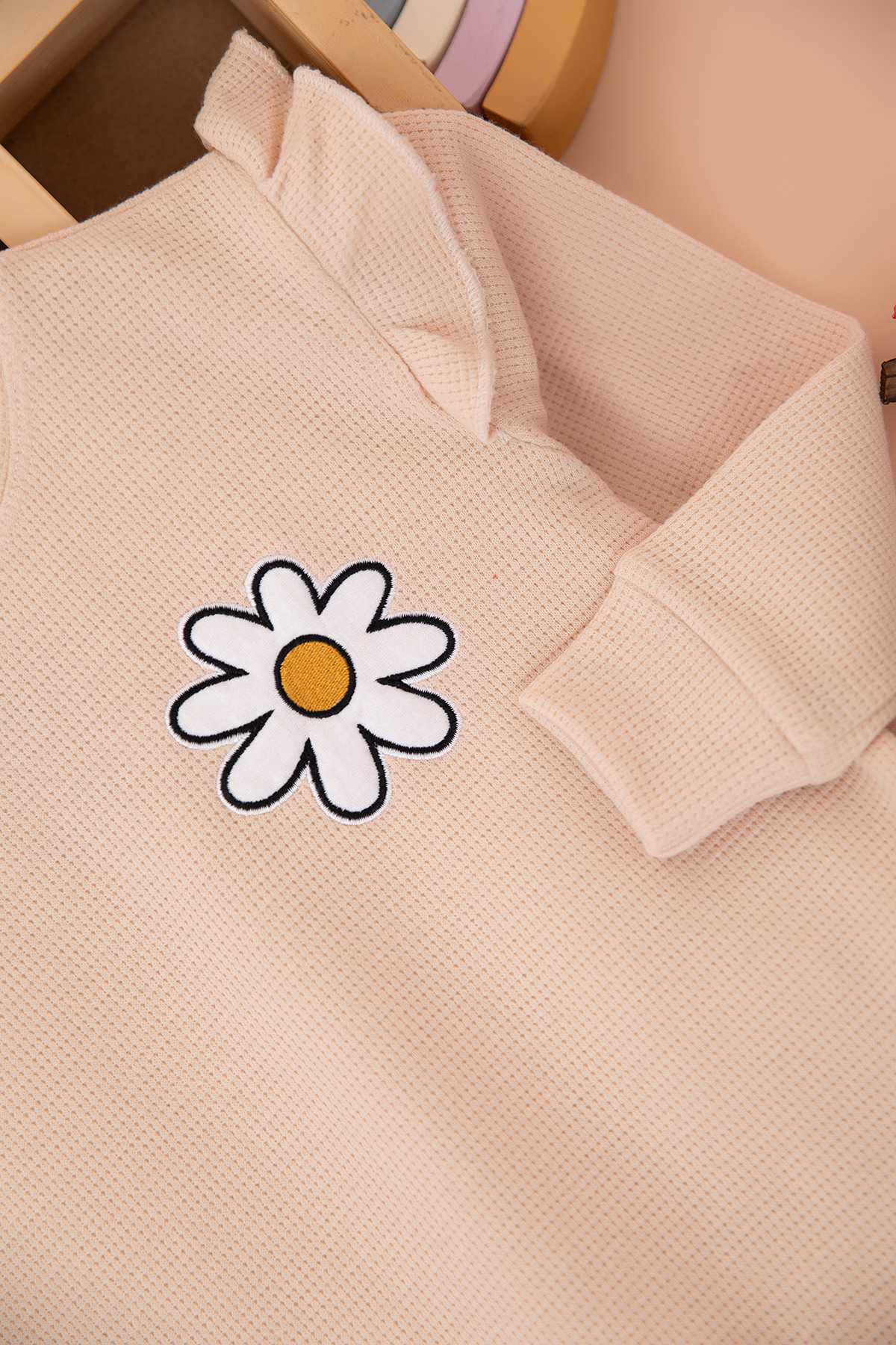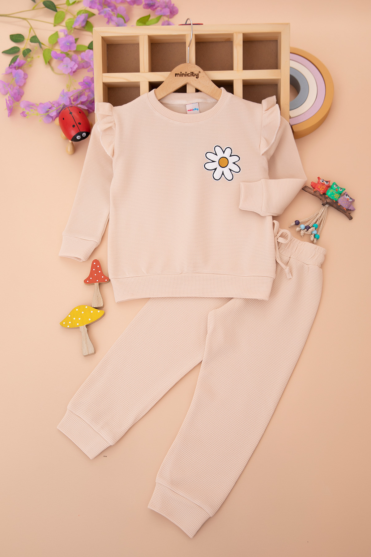 Kız Çocuk Waffle Papatya Nakışlı Takım - 11694 (4-8 Yaş)