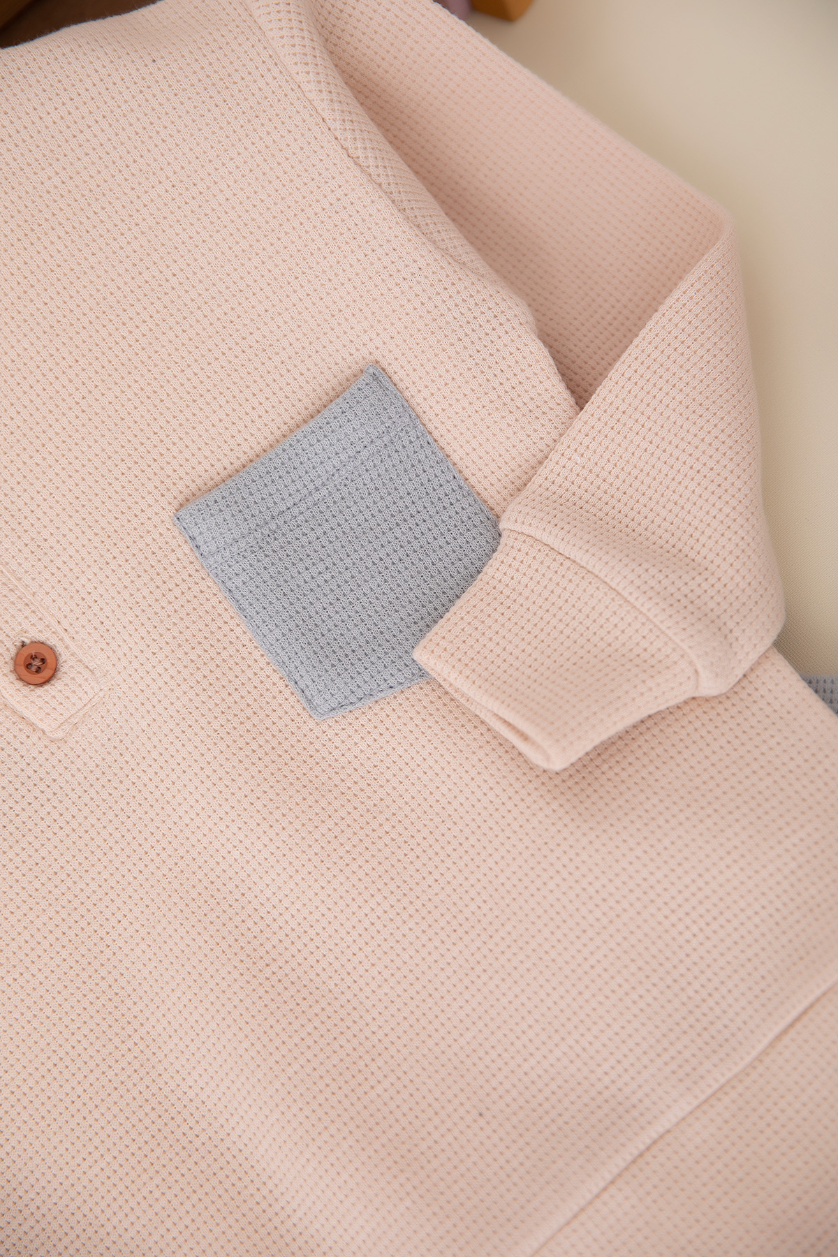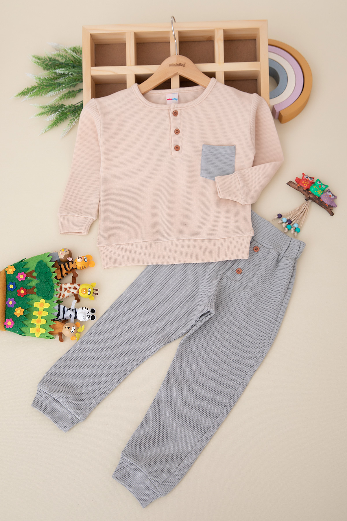 Kız Çocuk Waffle Patlı Cepli Takım - 10526 (3-7 Yaş)