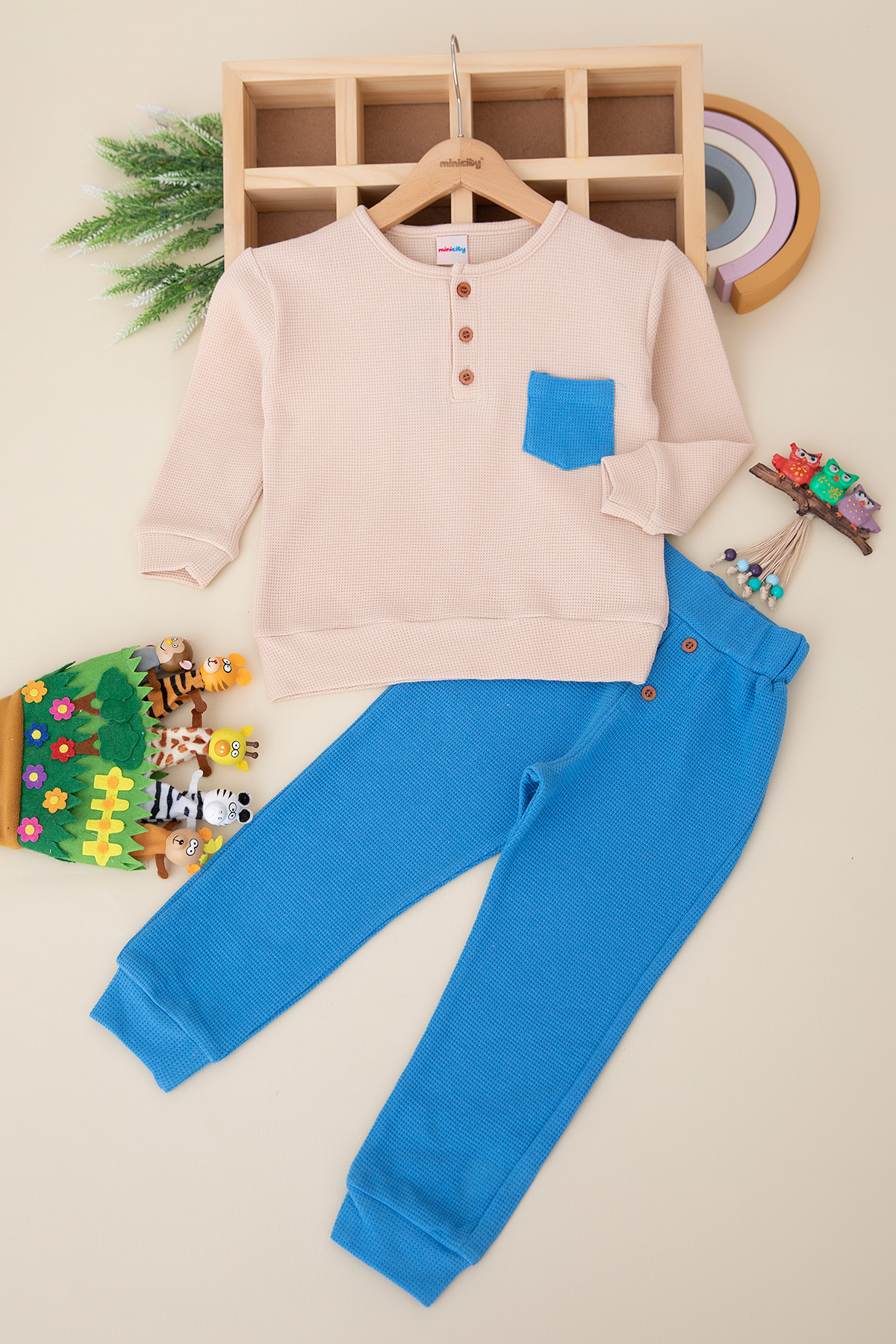 Kız Çocuk Waffle Patlı Cepli Takım - 10526 (3-7 Yaş)