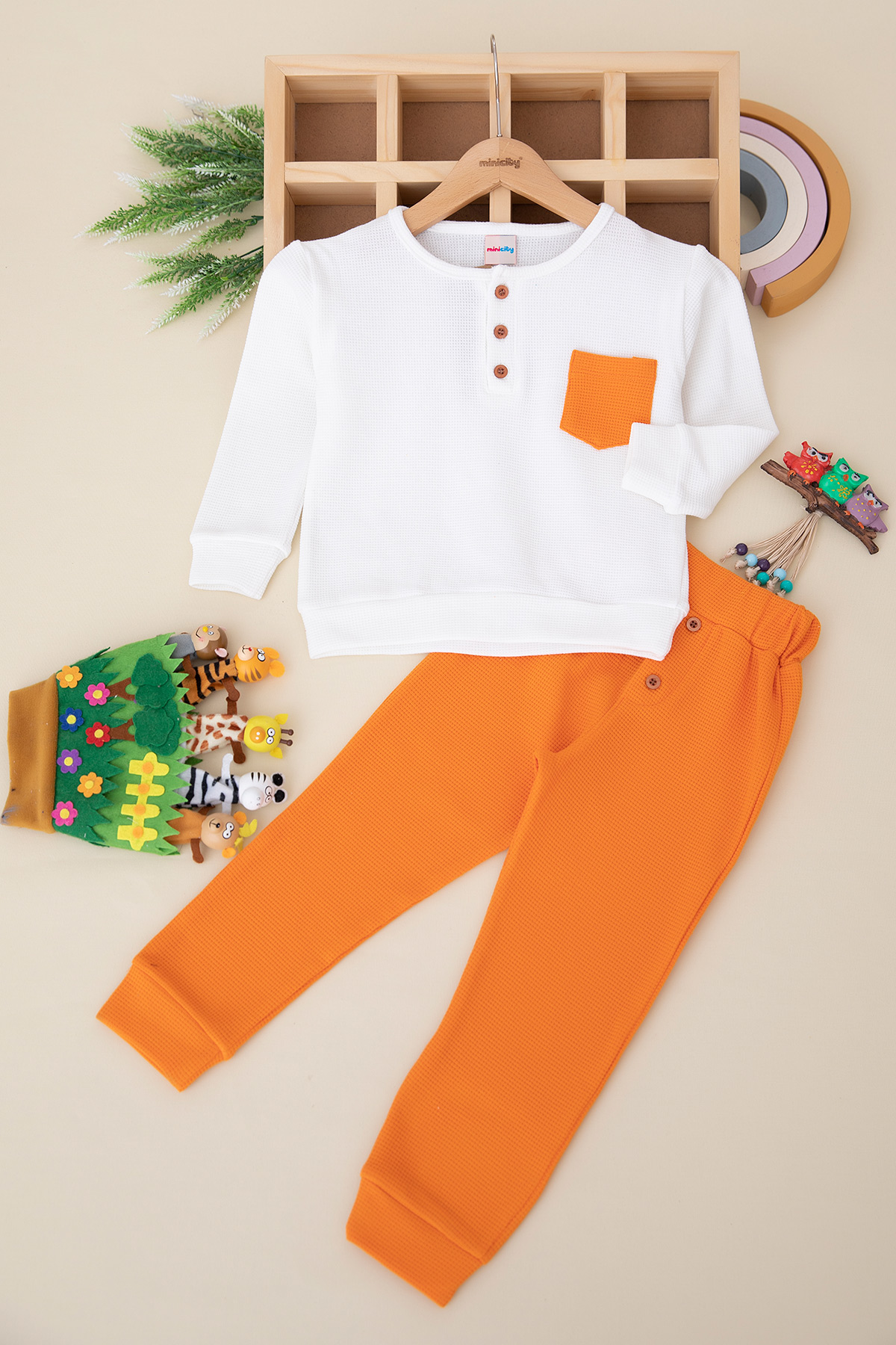 Kız Çocuk Waffle Patlı Cepli Takım - 10526 (3-7 Yaş)