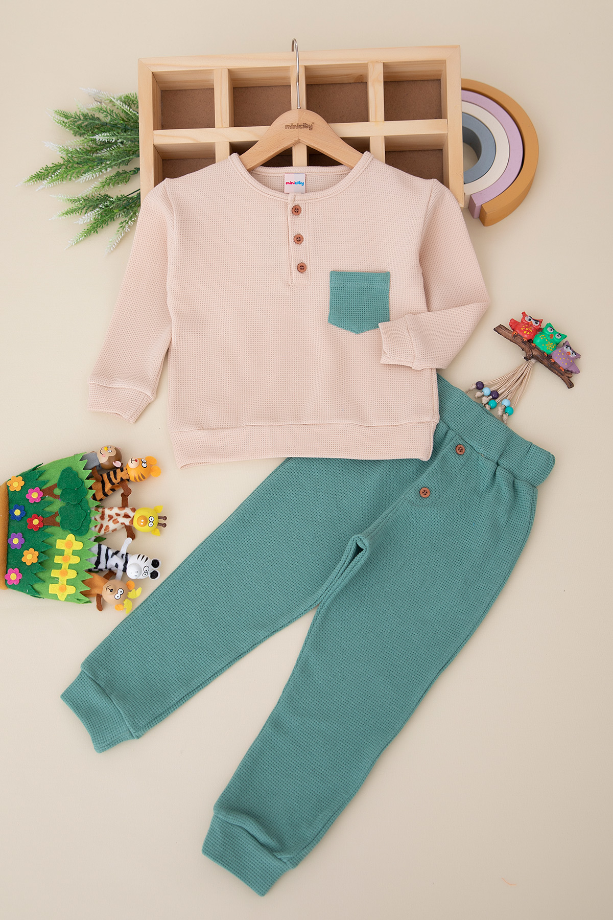 Kız Çocuk Waffle Patlı Cepli Takım - 10526 (3-7 Yaş)