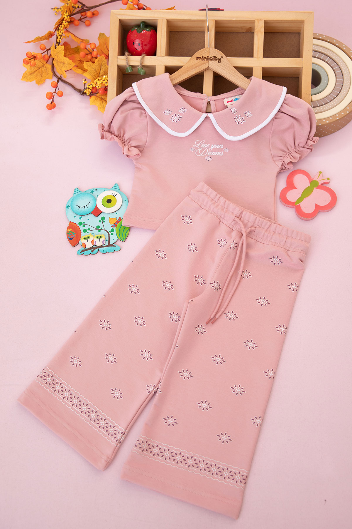 Kız Çocuk Yaka Baskılı Eşofman Takım - 9036 (3-8 Yaş)