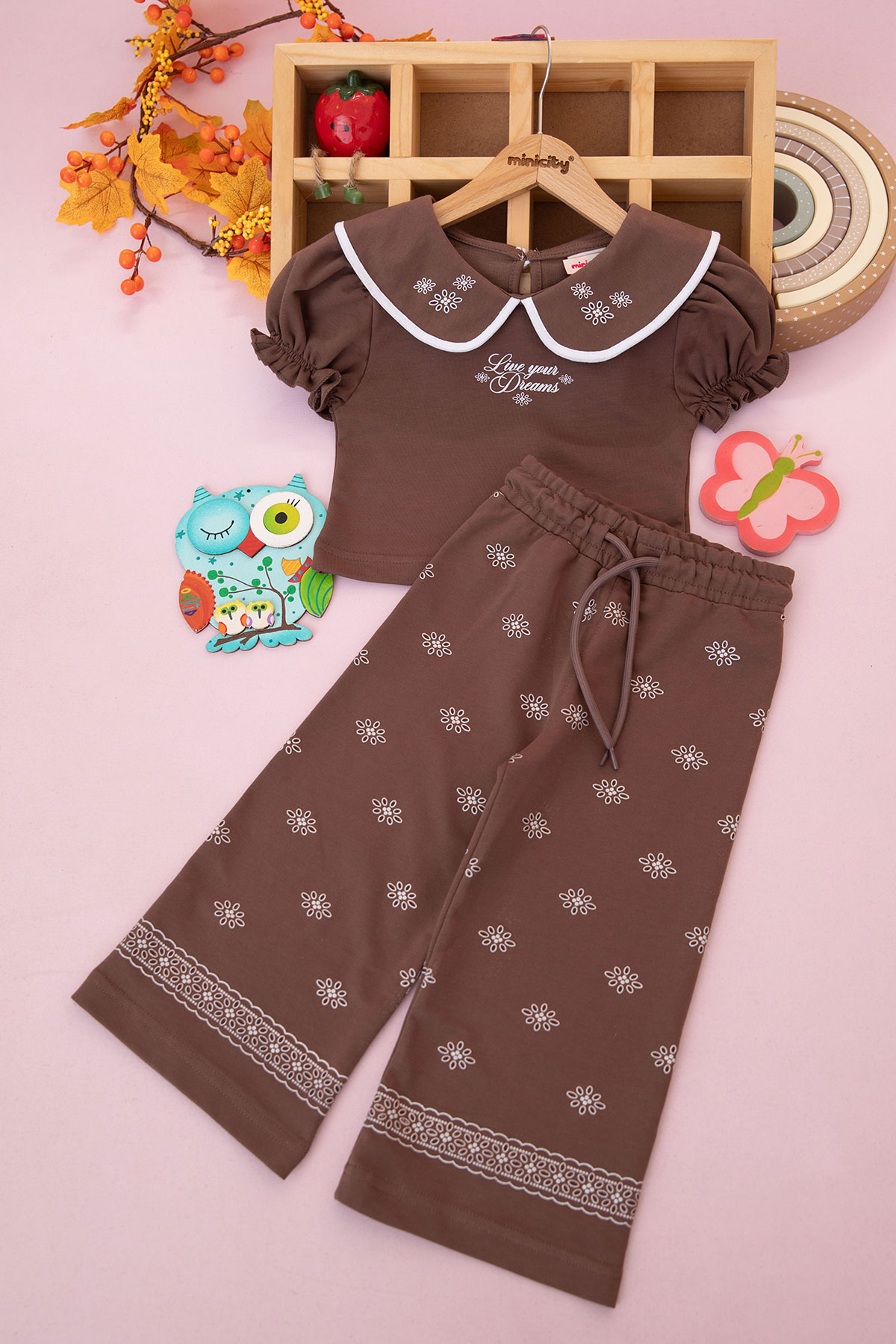 Kız Çocuk Yaka Baskılı Eşofman Takım - 9036 (3-8 Yaş)