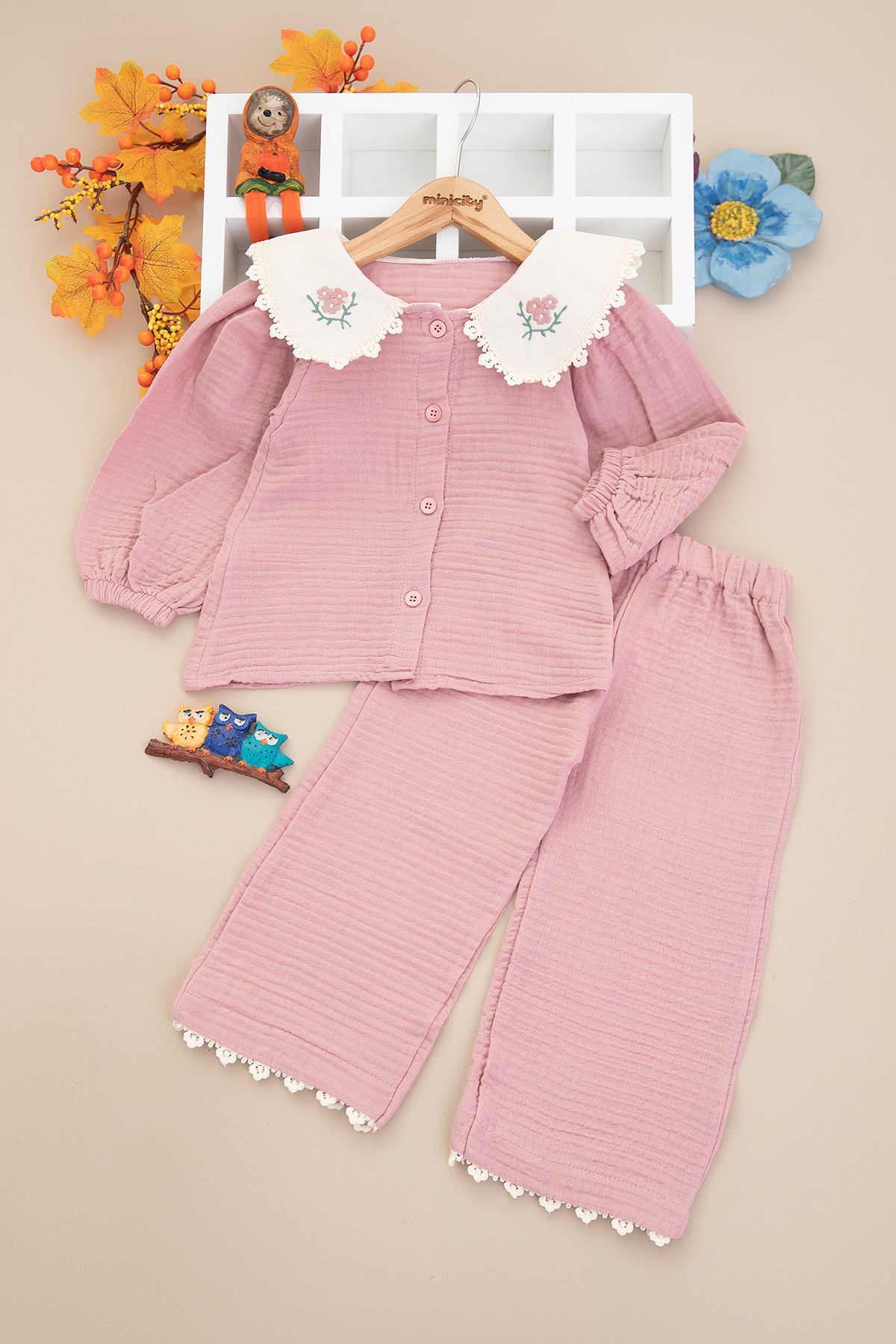 Kız Çocuk Yaka Dantel Detaylı Takım - 3006 (2-6 Yaş)
