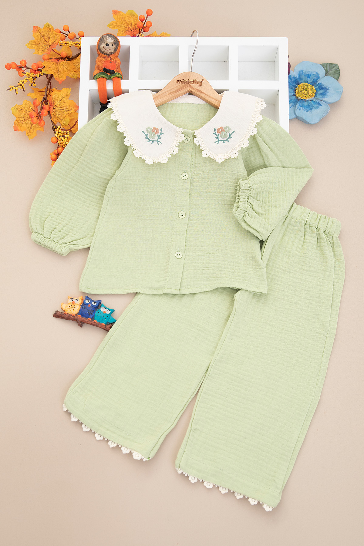 Kız Çocuk Yaka Dantel Detaylı Takım - 3006 (2-6 Yaş)