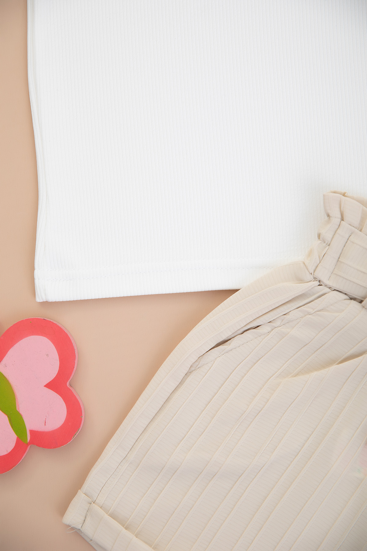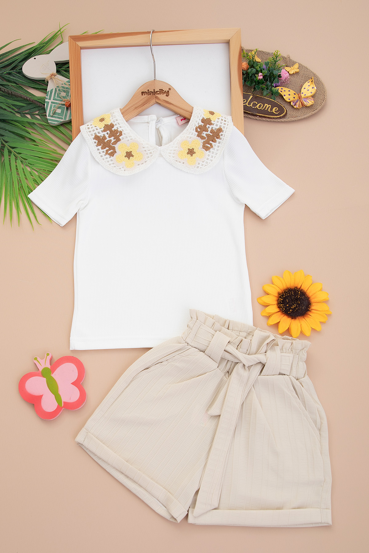 Kız Çocuk Yaka Dantel Kuşaklı Şort Takım - 31000 (3-7 Yaş)
