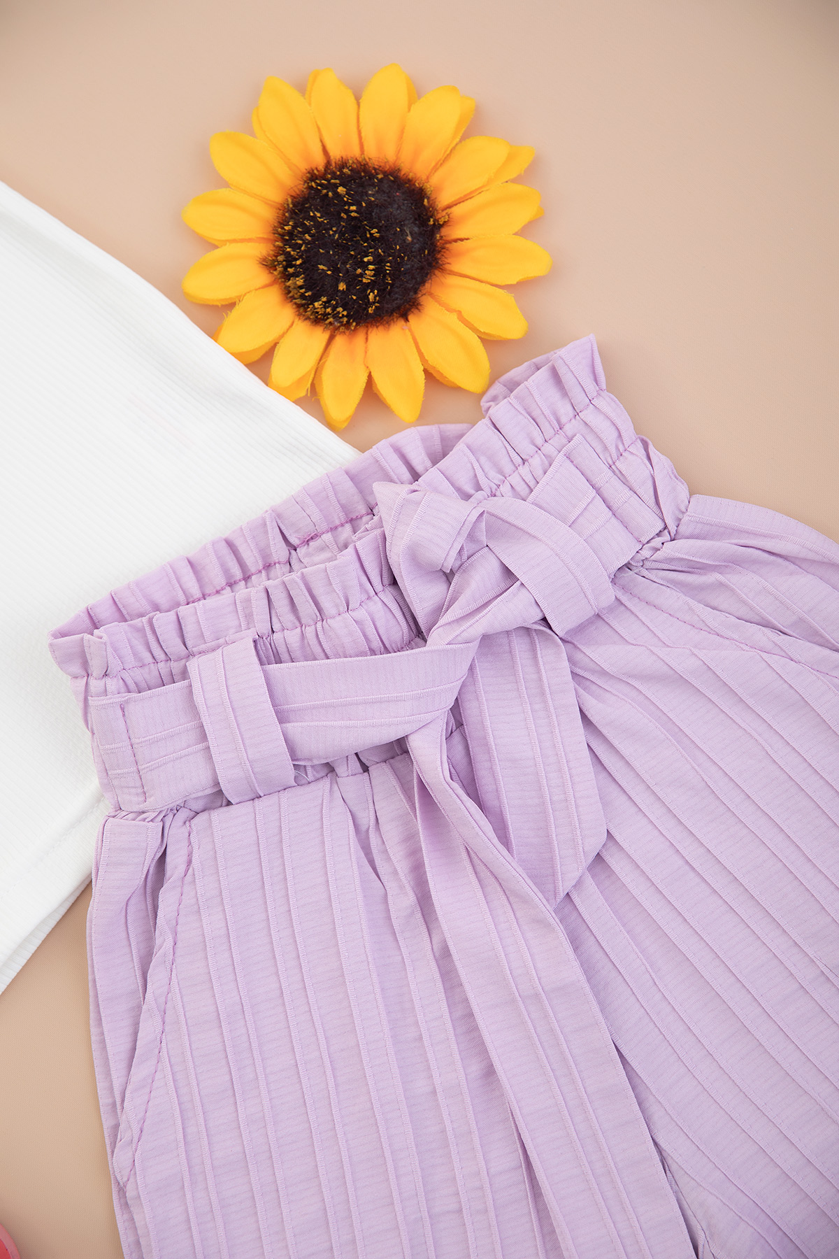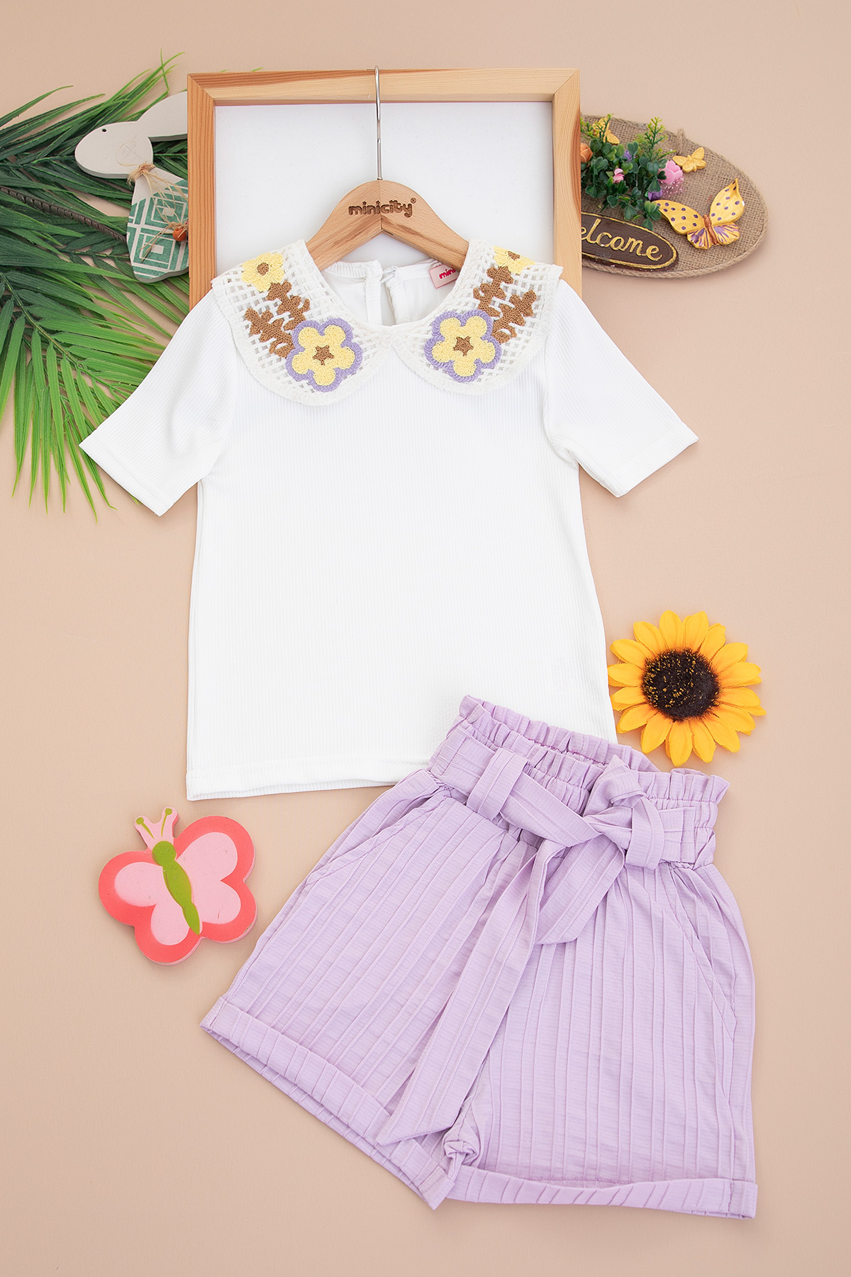 Kız Çocuk Yaka Dantel Kuşaklı Şort Takım - 31000 (3-7 Yaş)