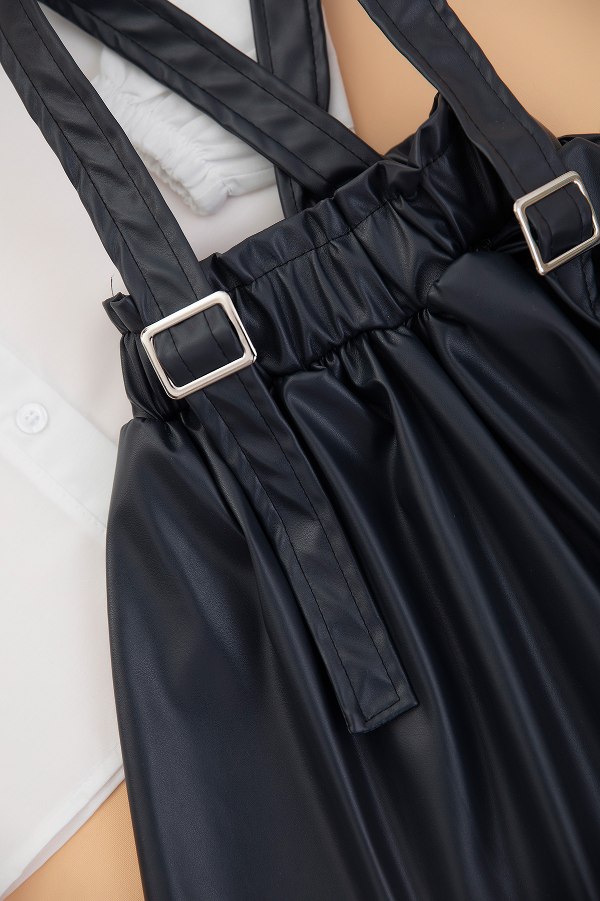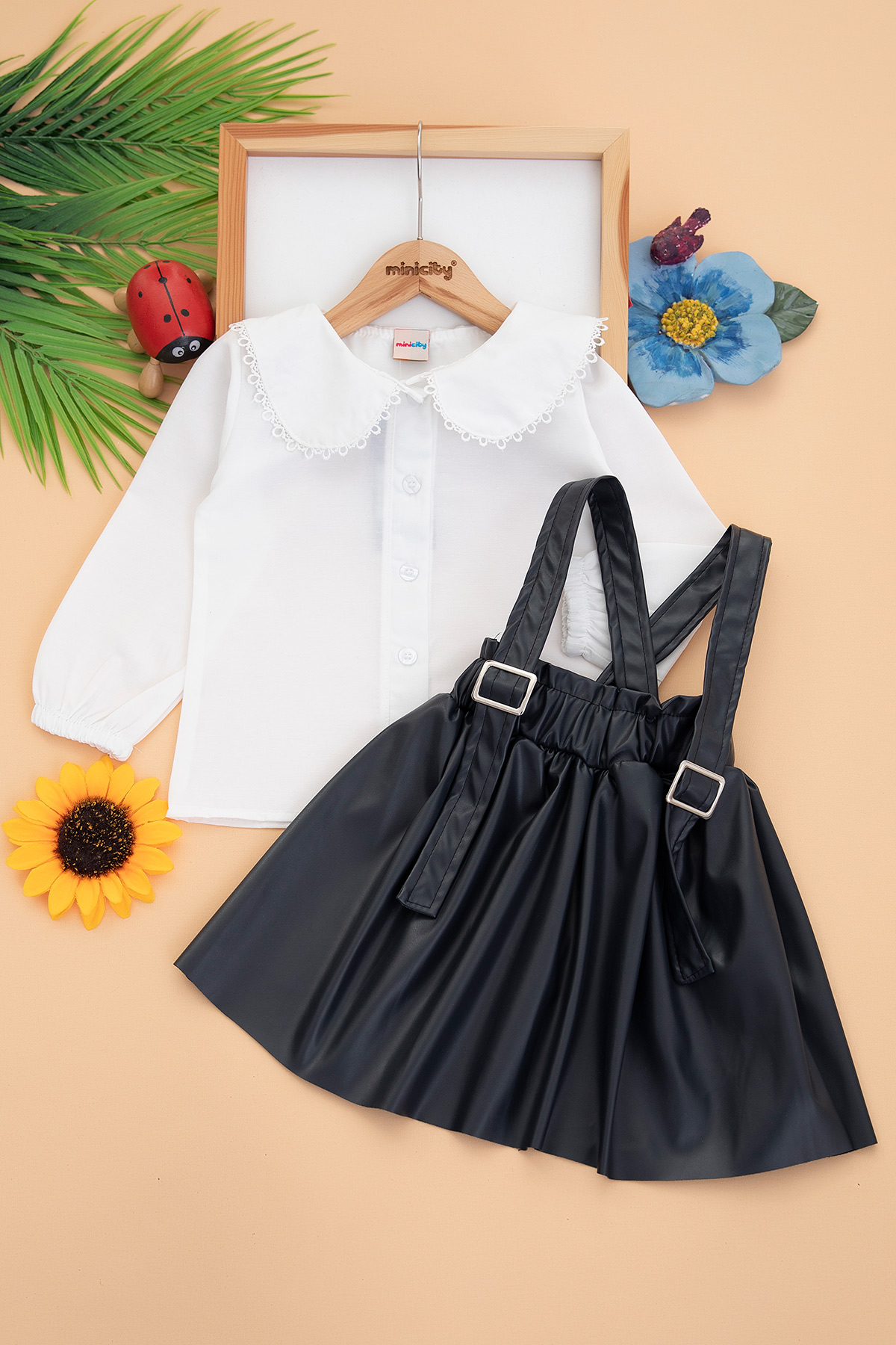 Kız Çocuk Yaka Dantelli Deri Etekli Salopet - 10046 (4-8 Yaş)