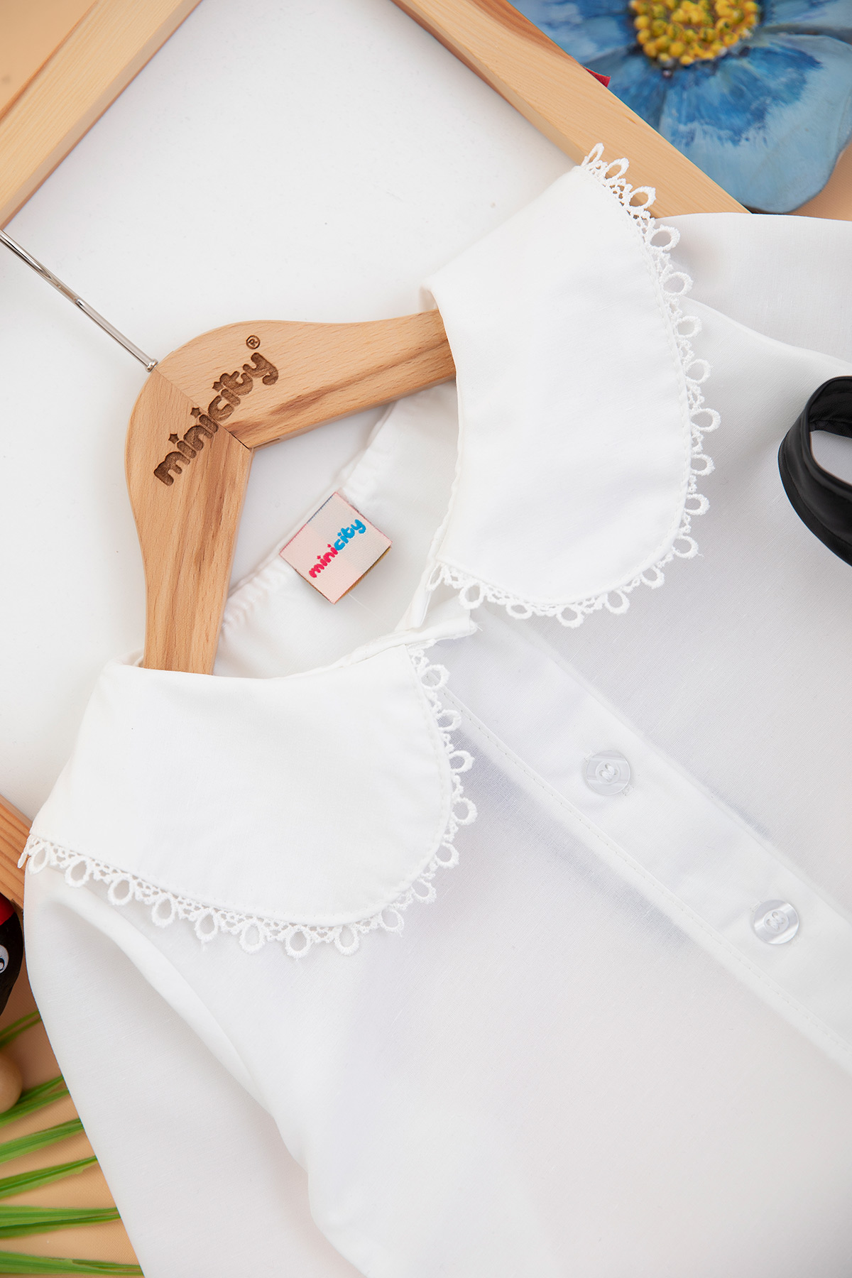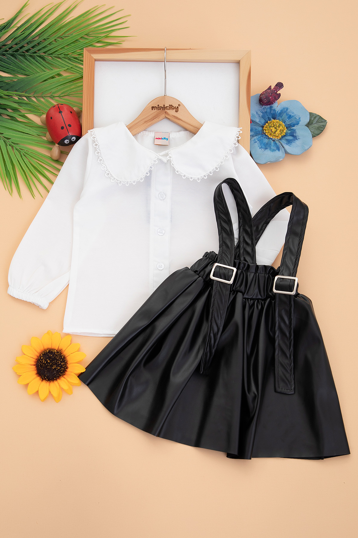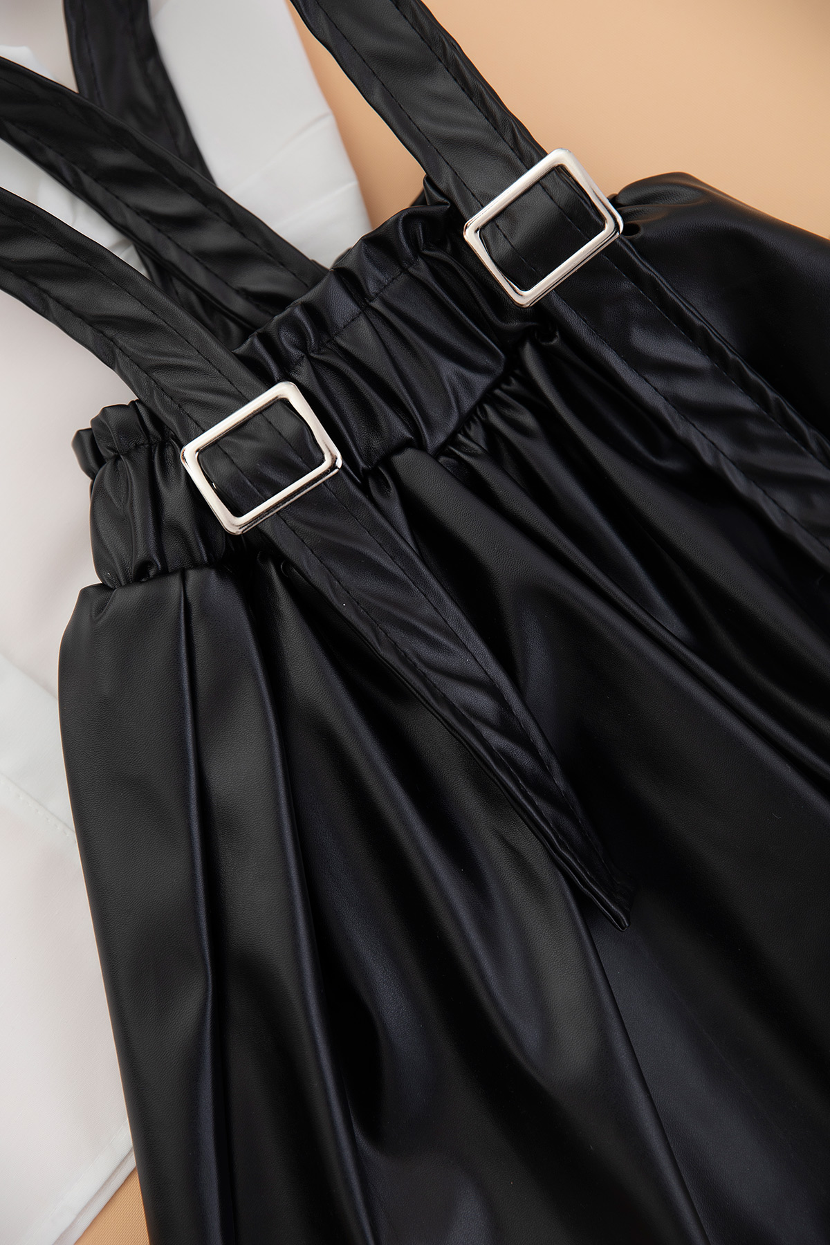 Kız Çocuk Yaka Dantelli Deri Etekli Salopet - 10046 (4-8 Yaş)