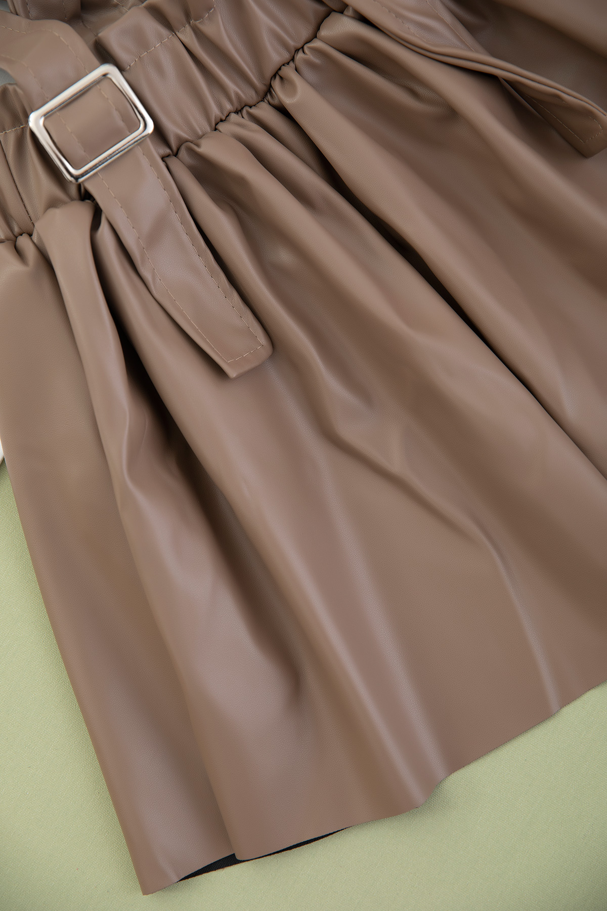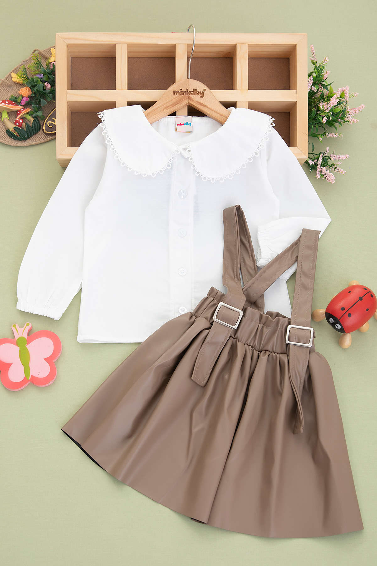 Kız Çocuk Yaka Dantelli Deri Etekli Salopet - 10046 (4-8 Yaş)
