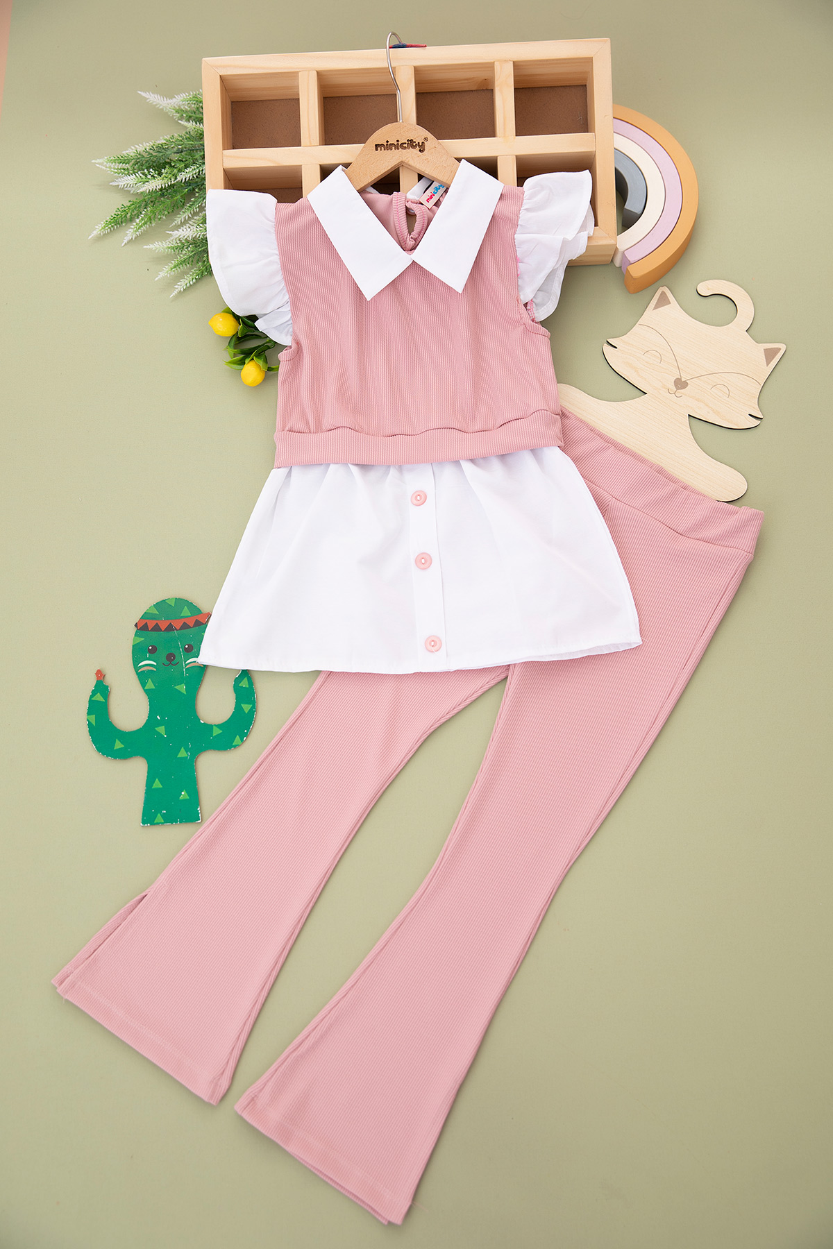 Kız Çocuk Yaka Detaylı Düğmeli Takım - 1014 (6-10 Yaş)