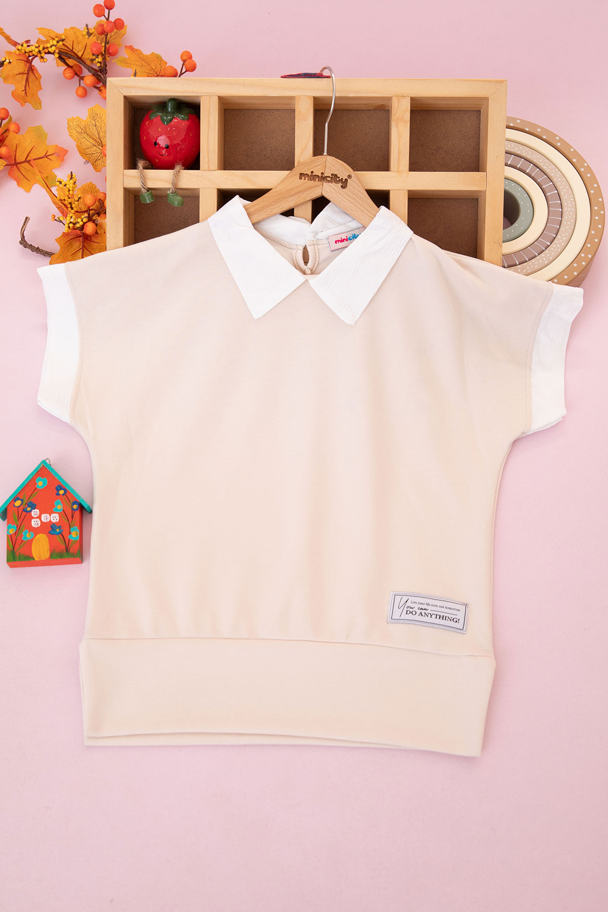 Kız Çocuk Yaka Detaylı Parçalı Tişört - 2023 (8-14 Yaş)