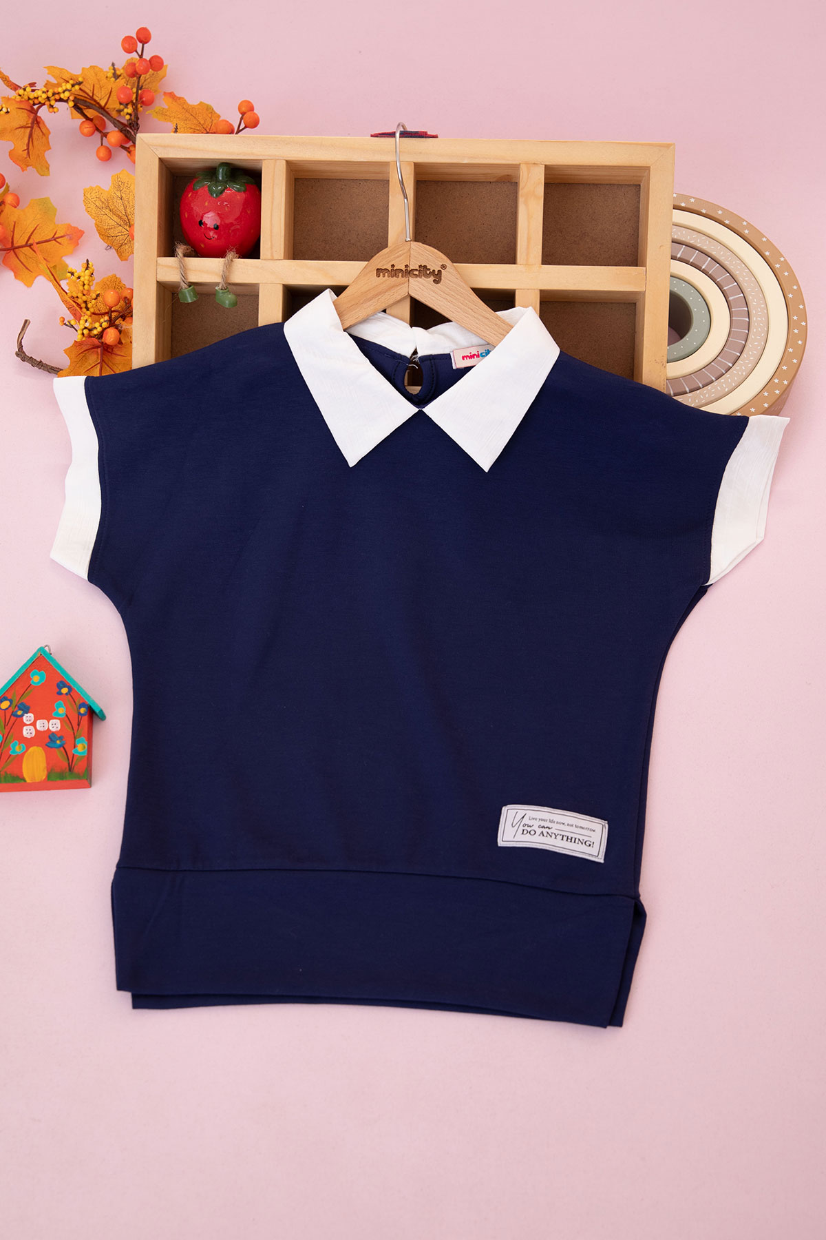 Kız Çocuk Yaka Detaylı Parçalı Tişört - 2023 (8-14 Yaş)