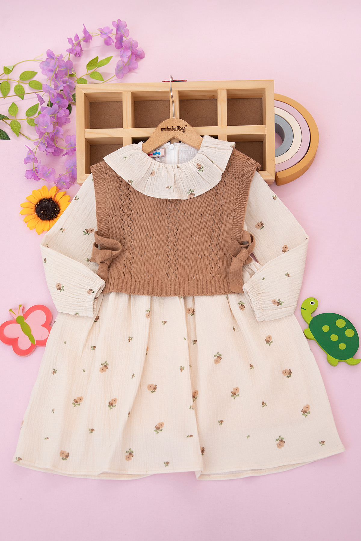 Kız Çocuk Yaka Fırfırlı Süveterli Elbise - 1600 (7-10 Yaş)