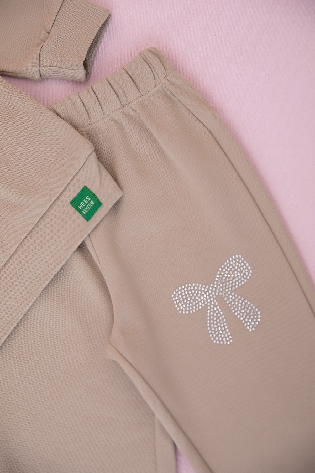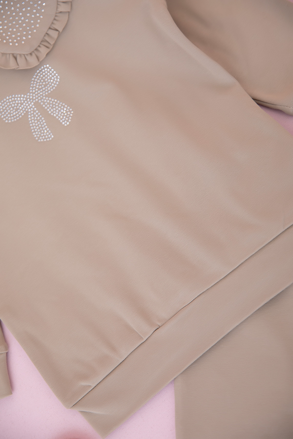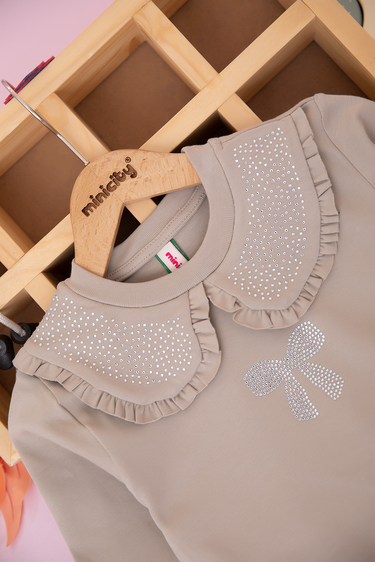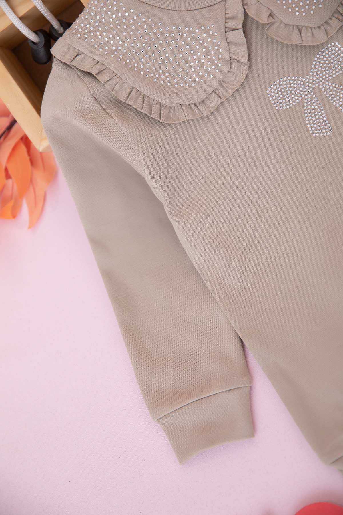 Kız Çocuk Yaka Fırfırlı Taşlı Fiyonklu Takım (3-10 Yaş)