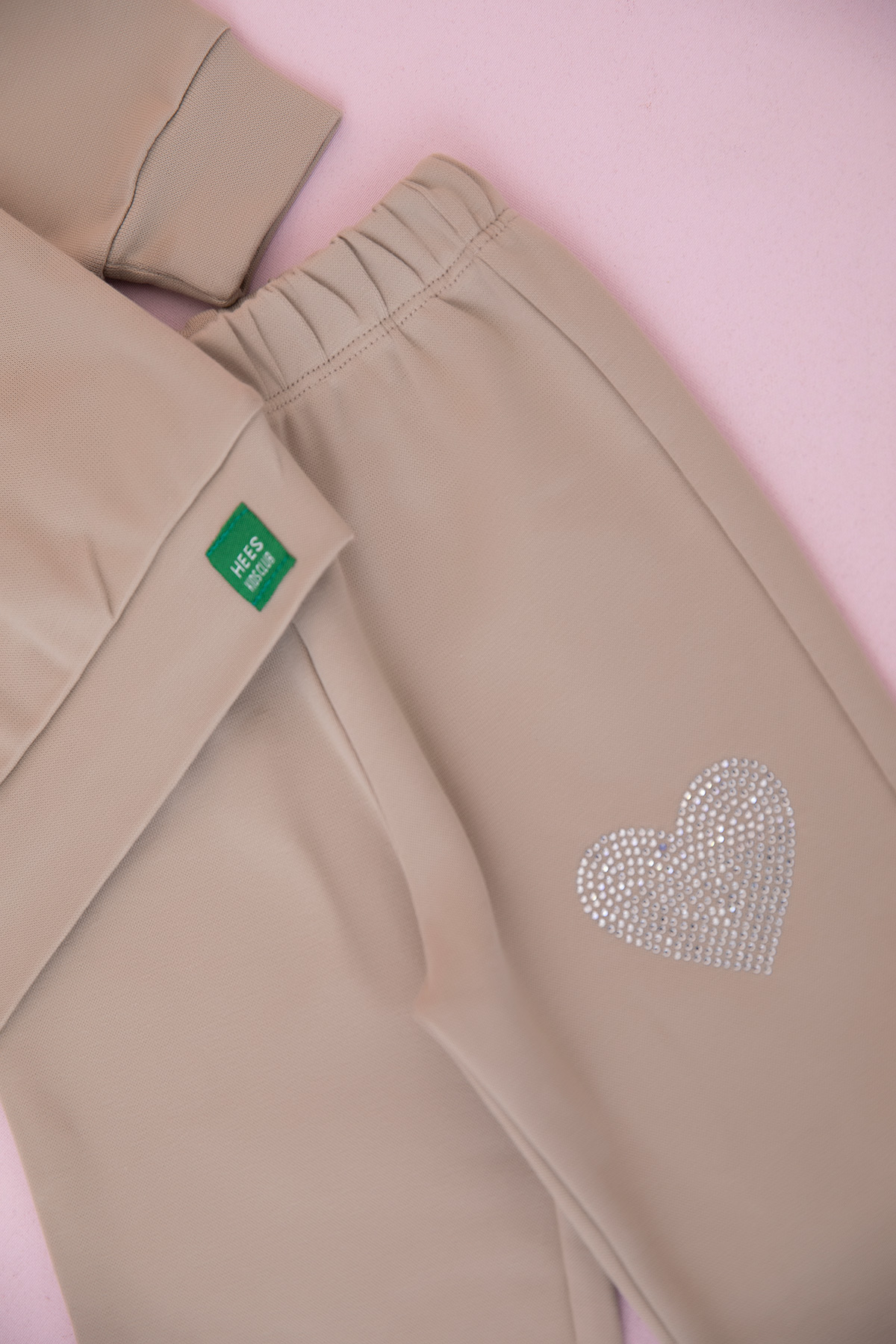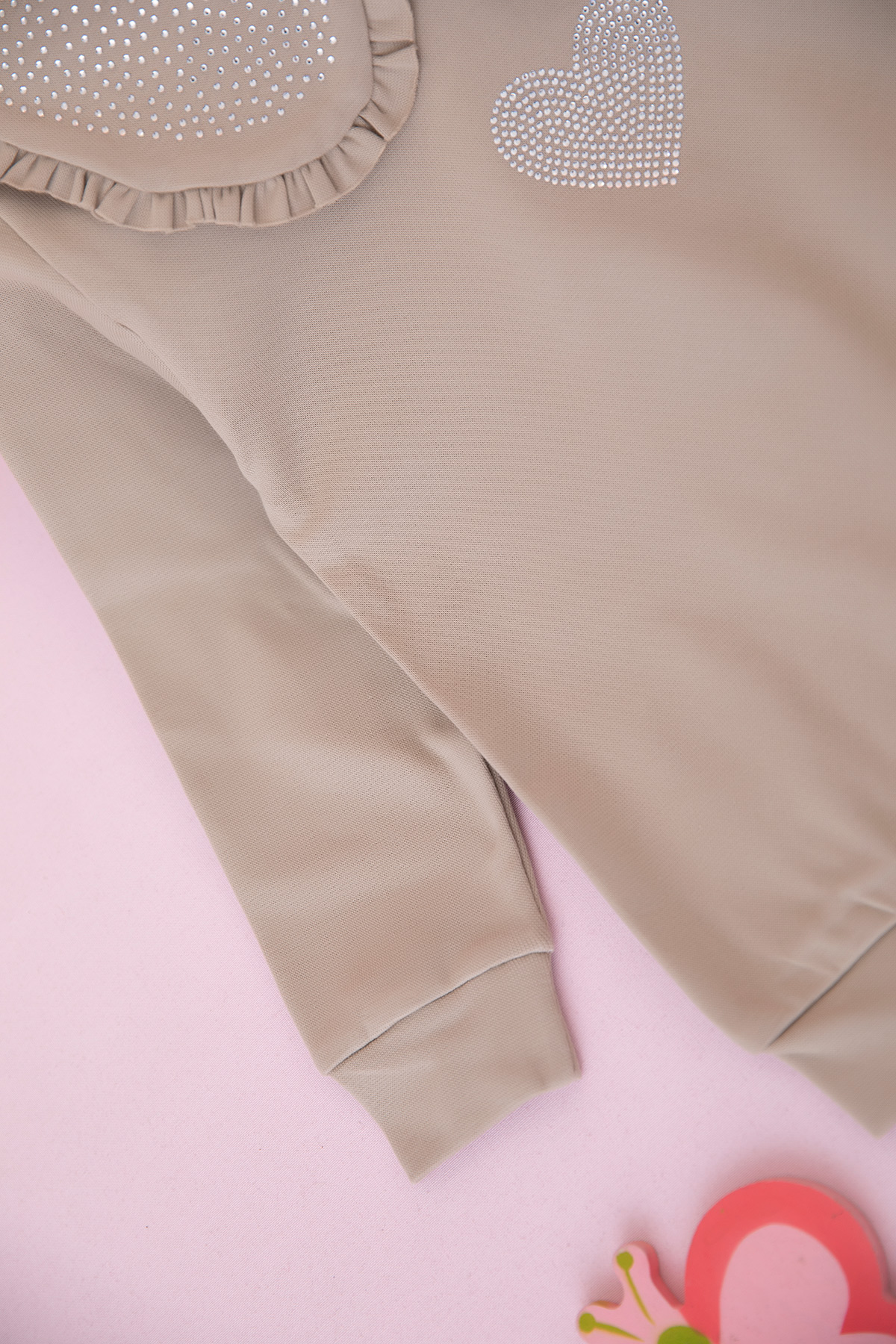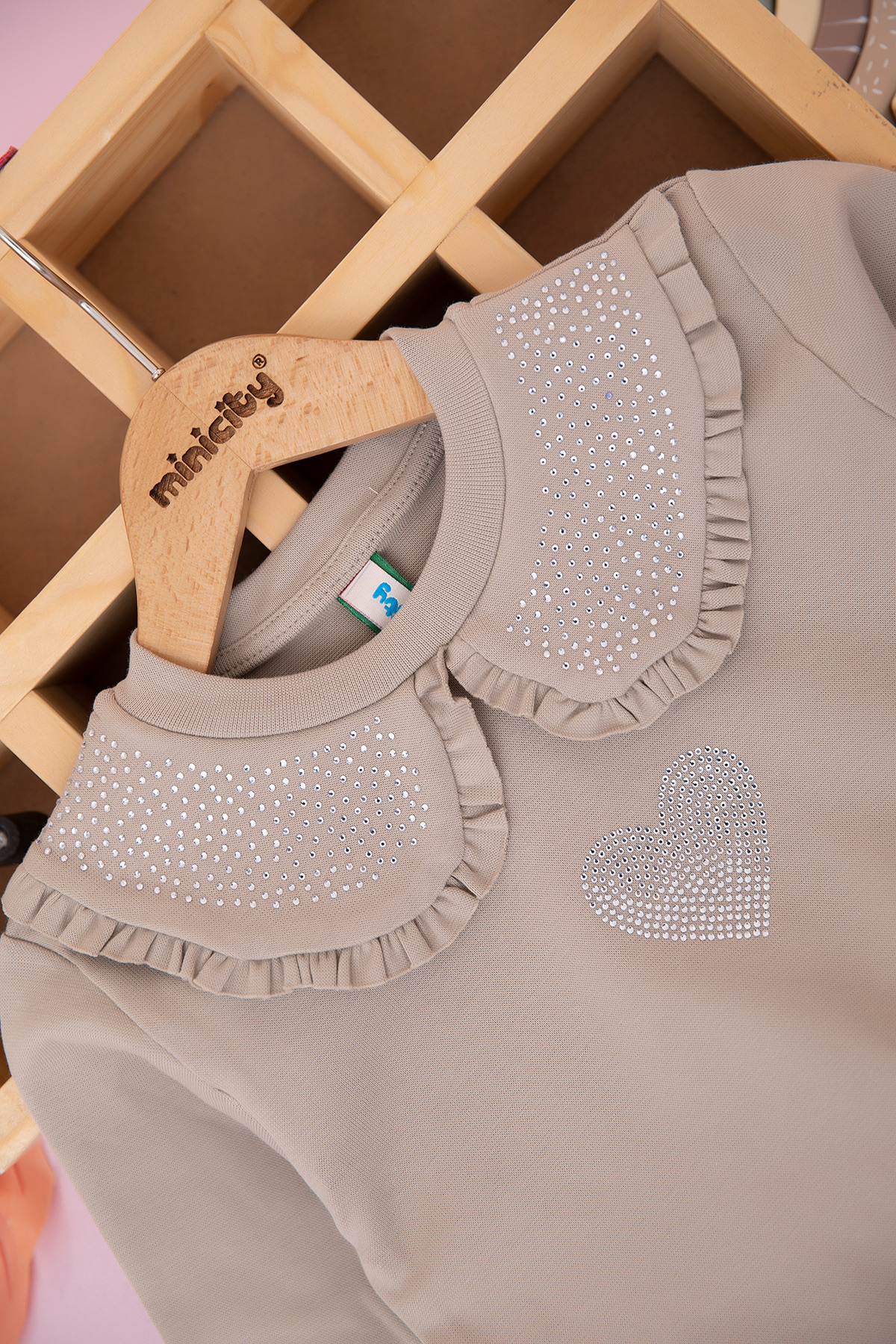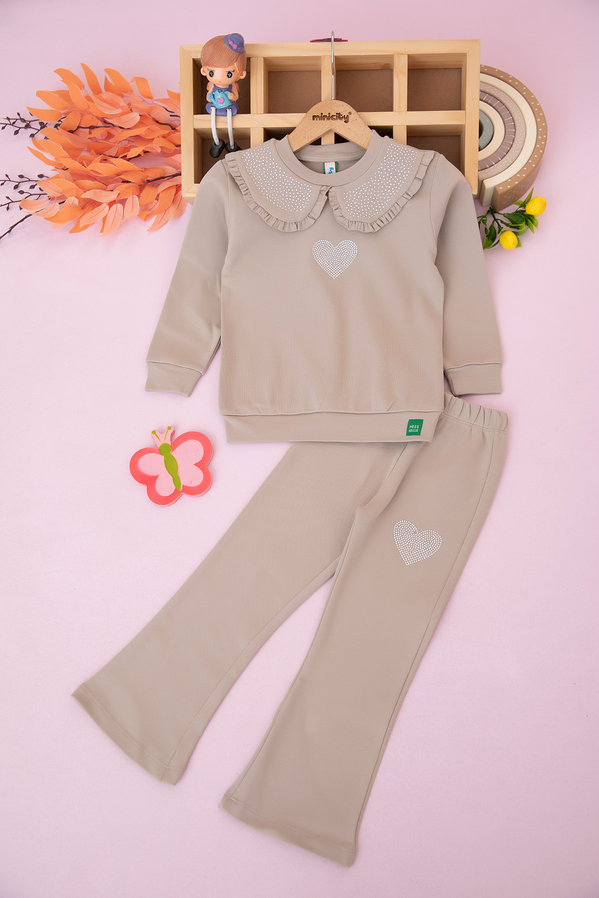 Kız Çocuk Yaka Fırfırlı Taşlı Kalpli Takım (3-10 Yaş)