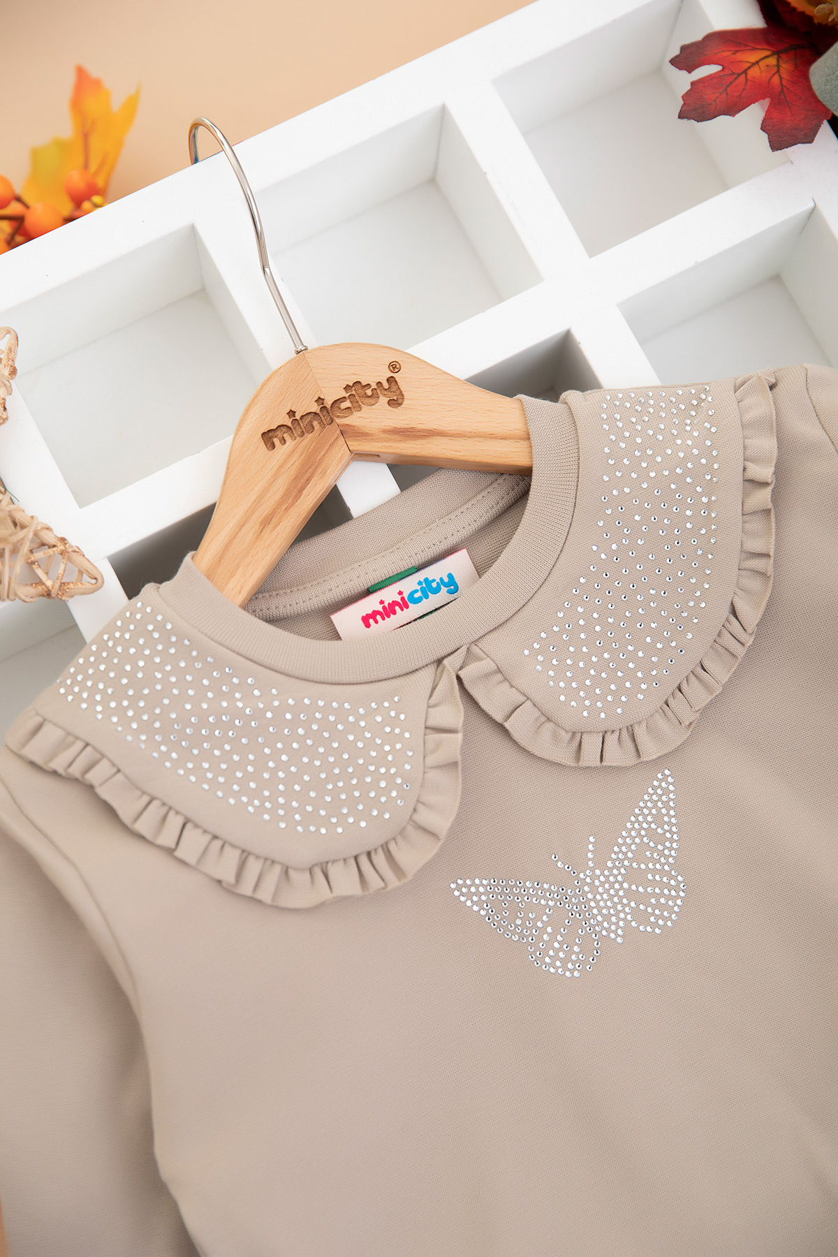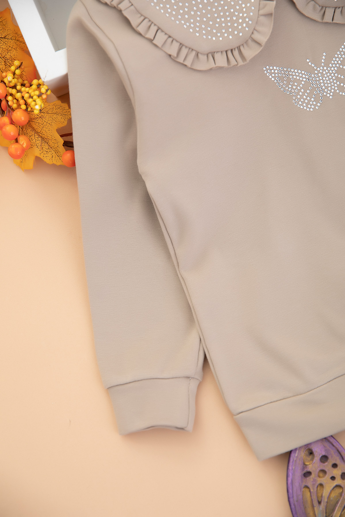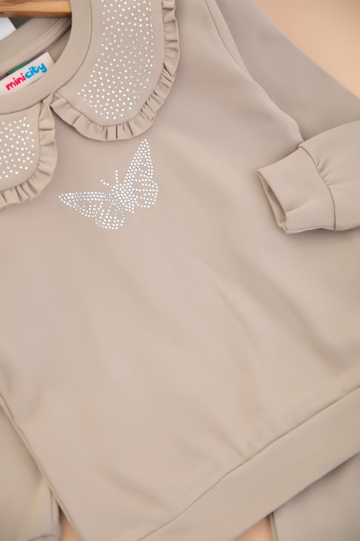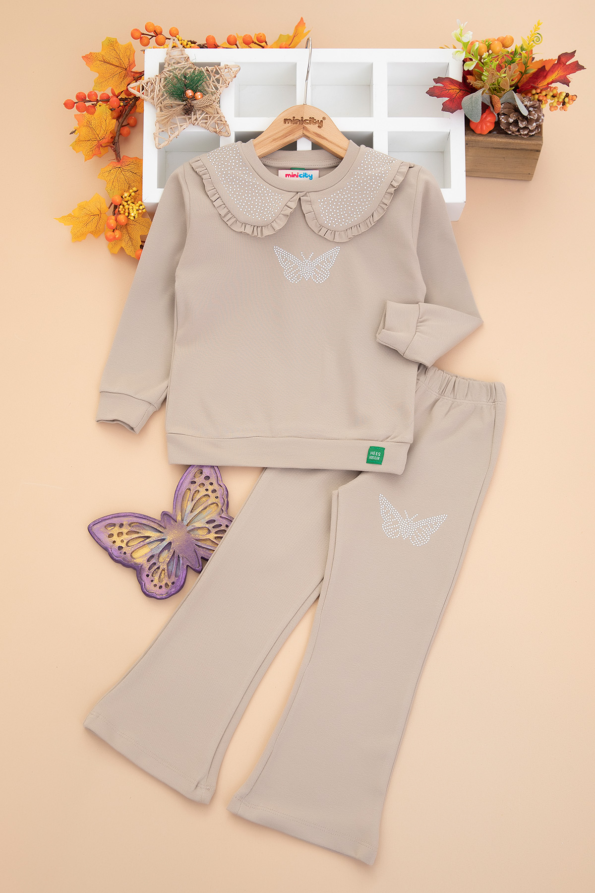 Kız Çocuk Yaka Fırfırlı Taşlı Kelebek Takım (3-10 Yaş)