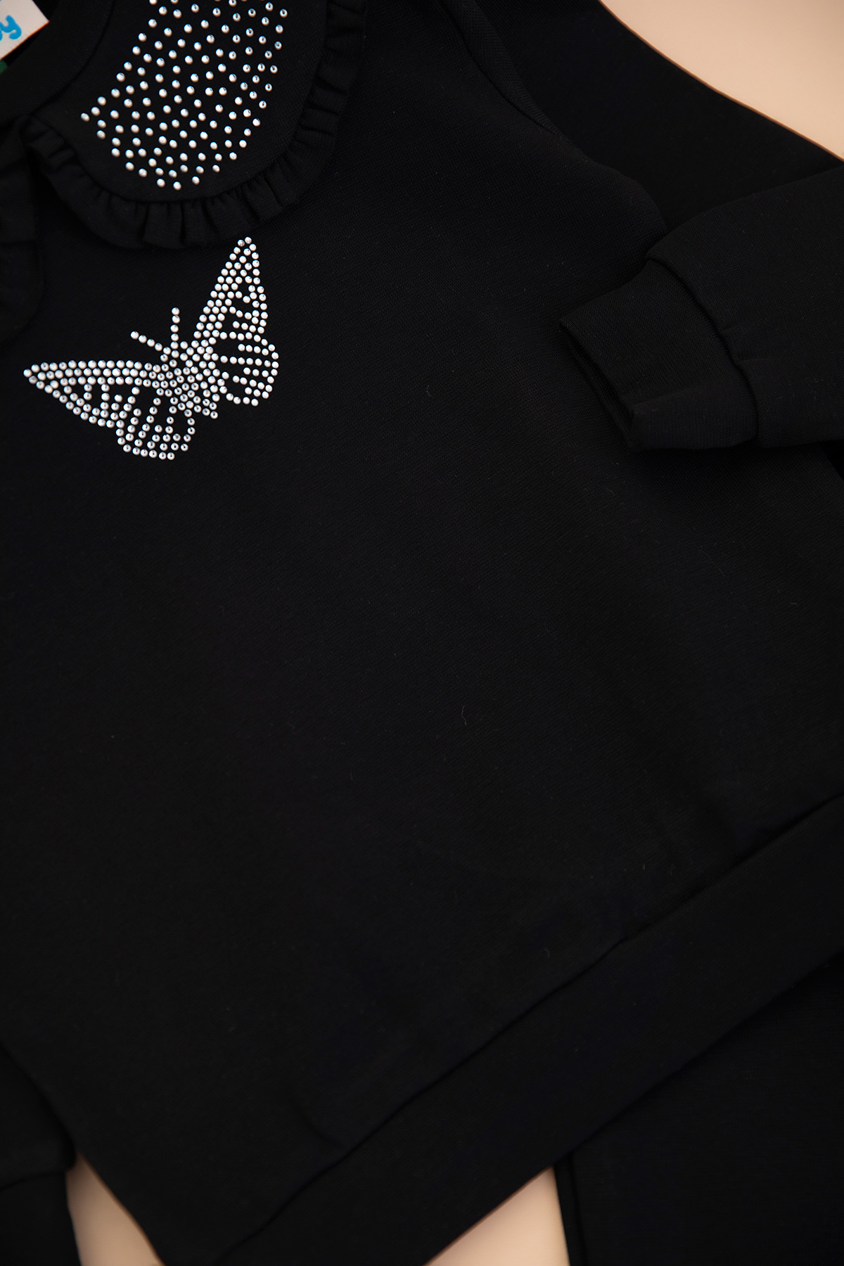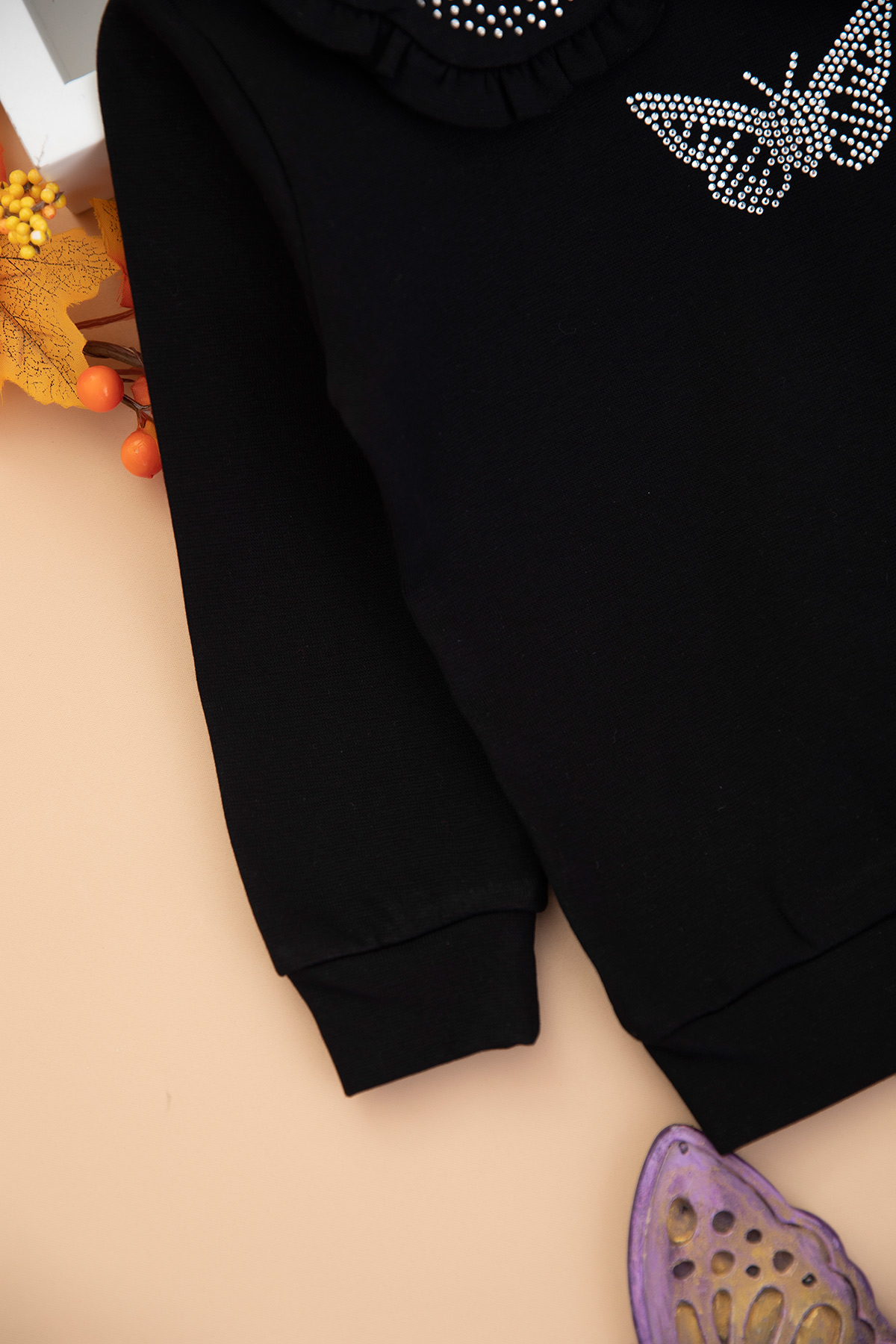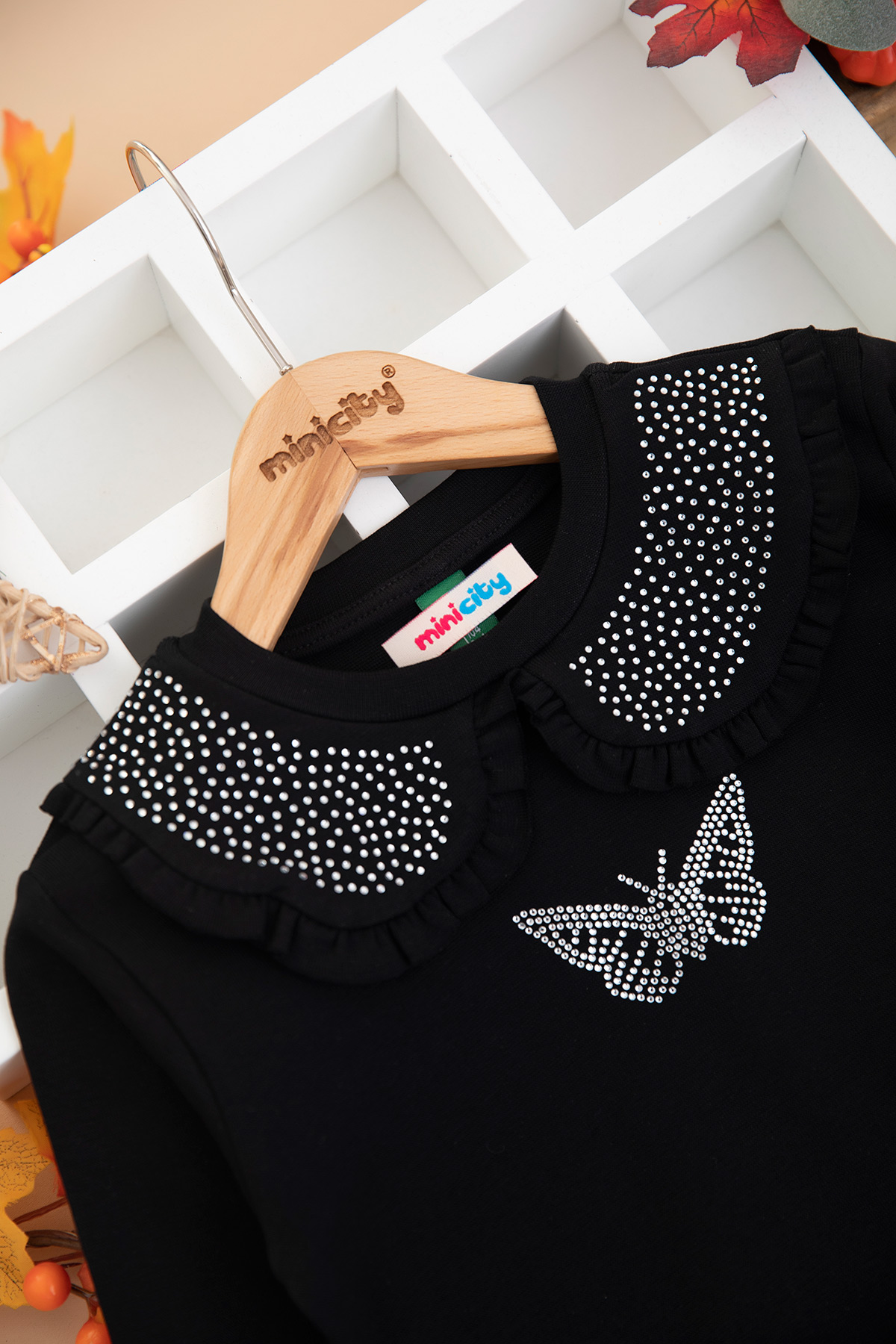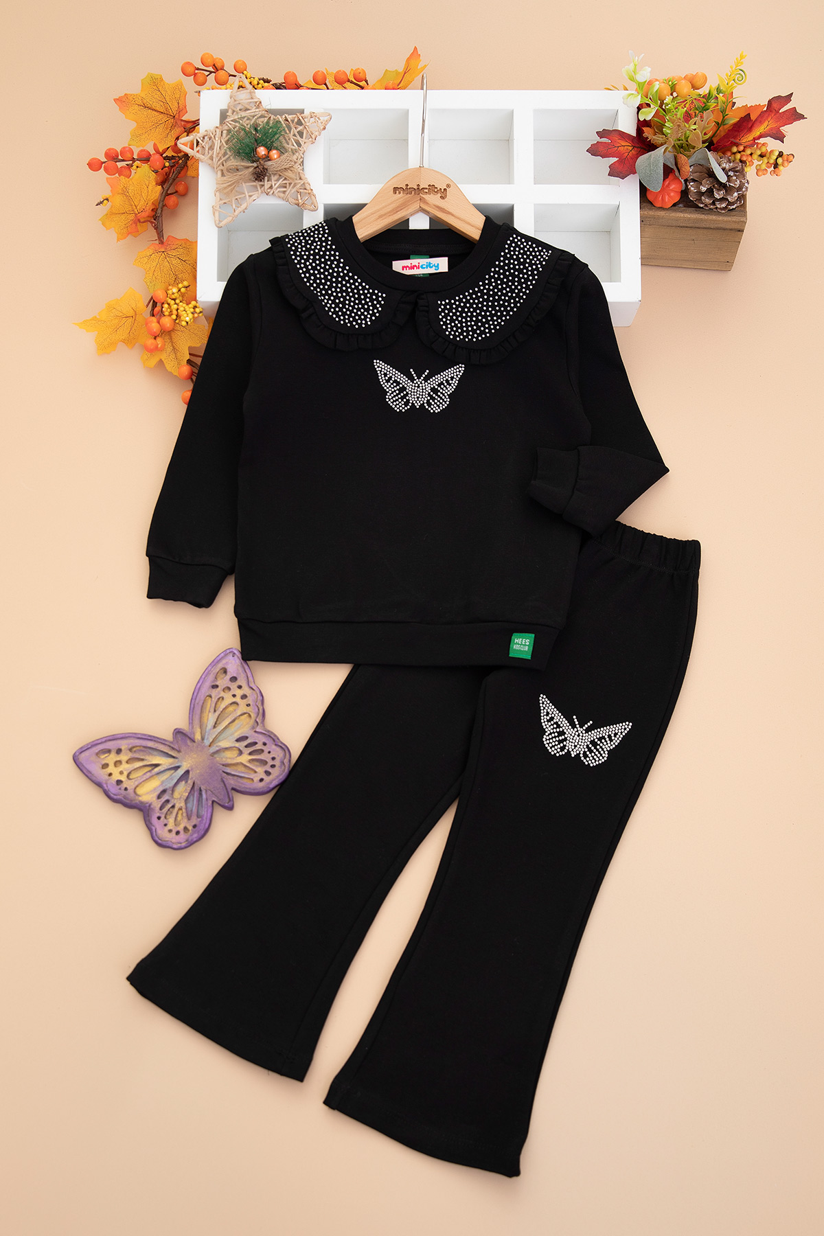 Kız Çocuk Yaka Fırfırlı Taşlı Kelebek Takım (3-10 Yaş)