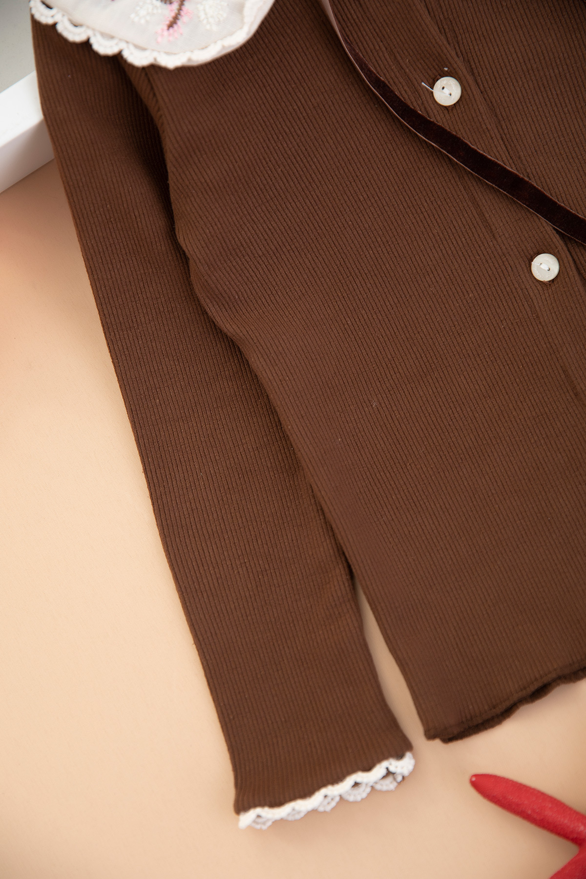 Kız Çocuk Yaka İşlemeli Kaşkorse Takım - 7789 (4-8 Yaş)