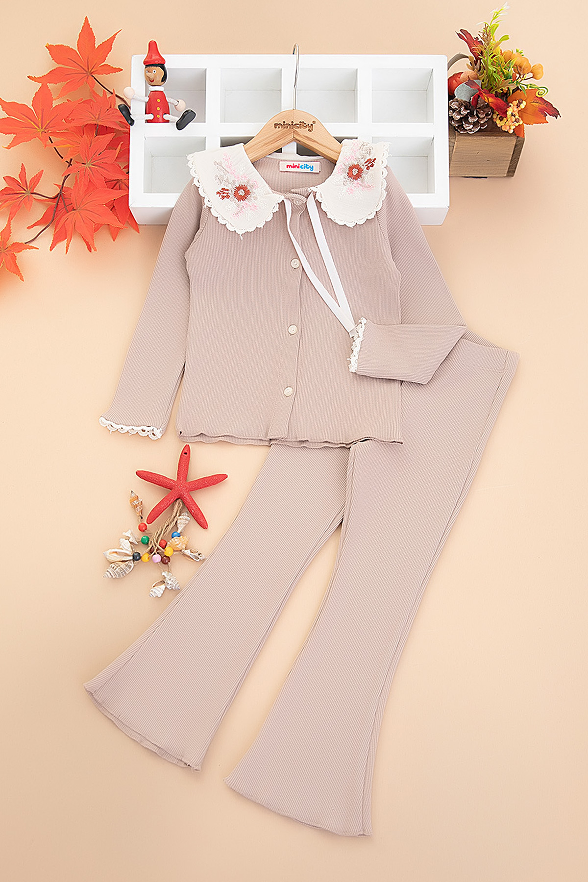 Kız Çocuk Yaka İşlemeli Kaşkorse Takım - 7789 (4-8 Yaş)