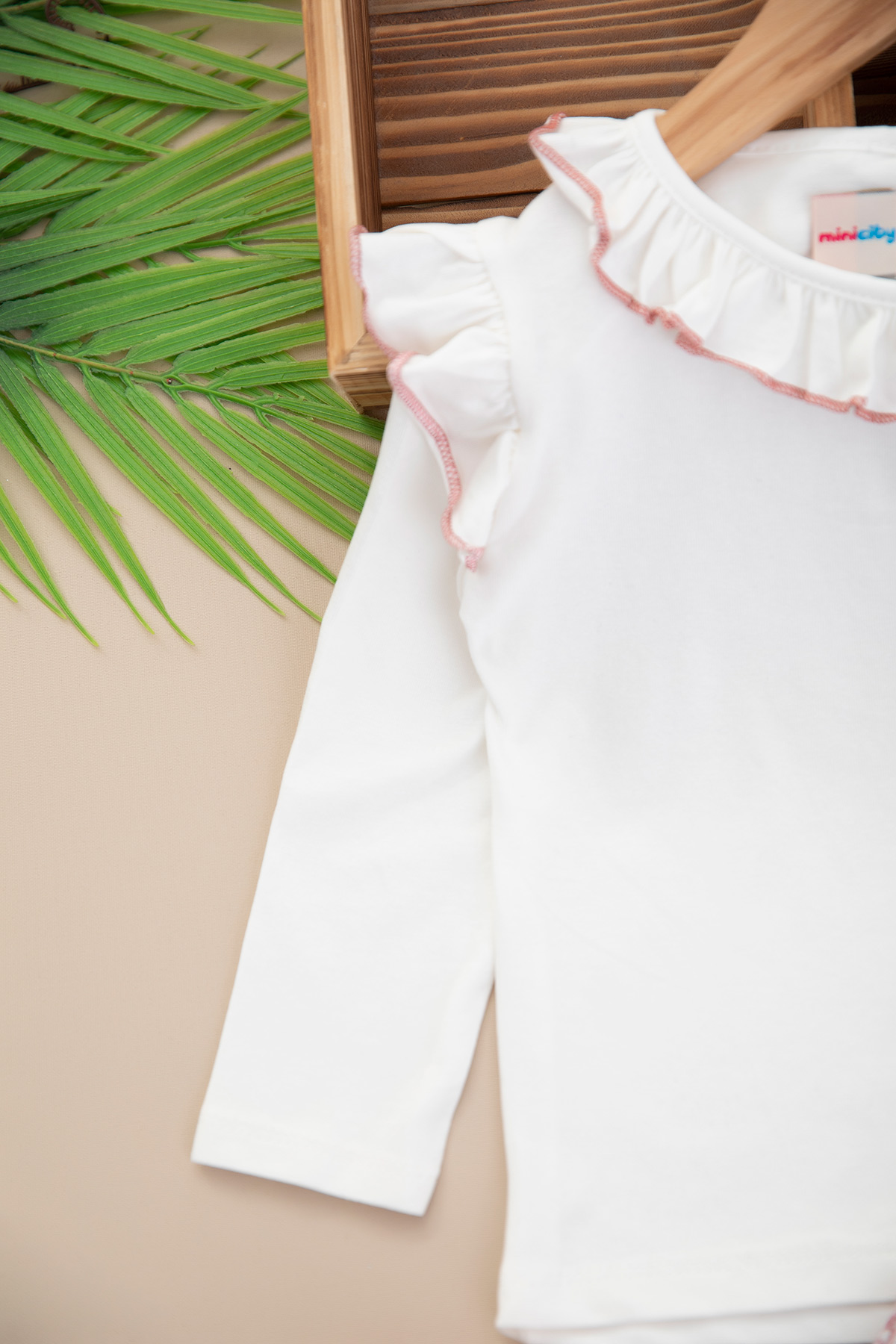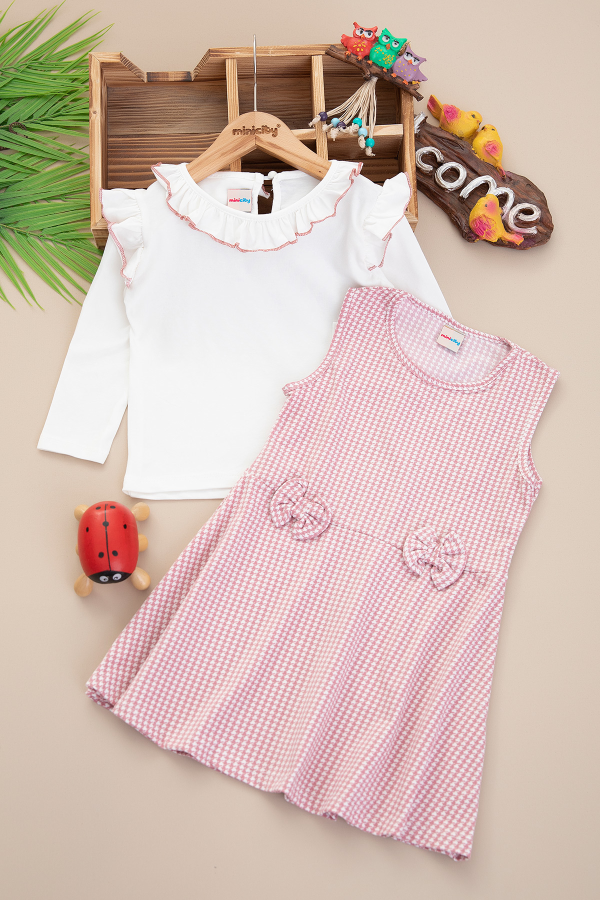 Kız Çocuk Yaka Kol Fırfırlı Fiyonklu Takım - 12539 (4-8 Yaş)
