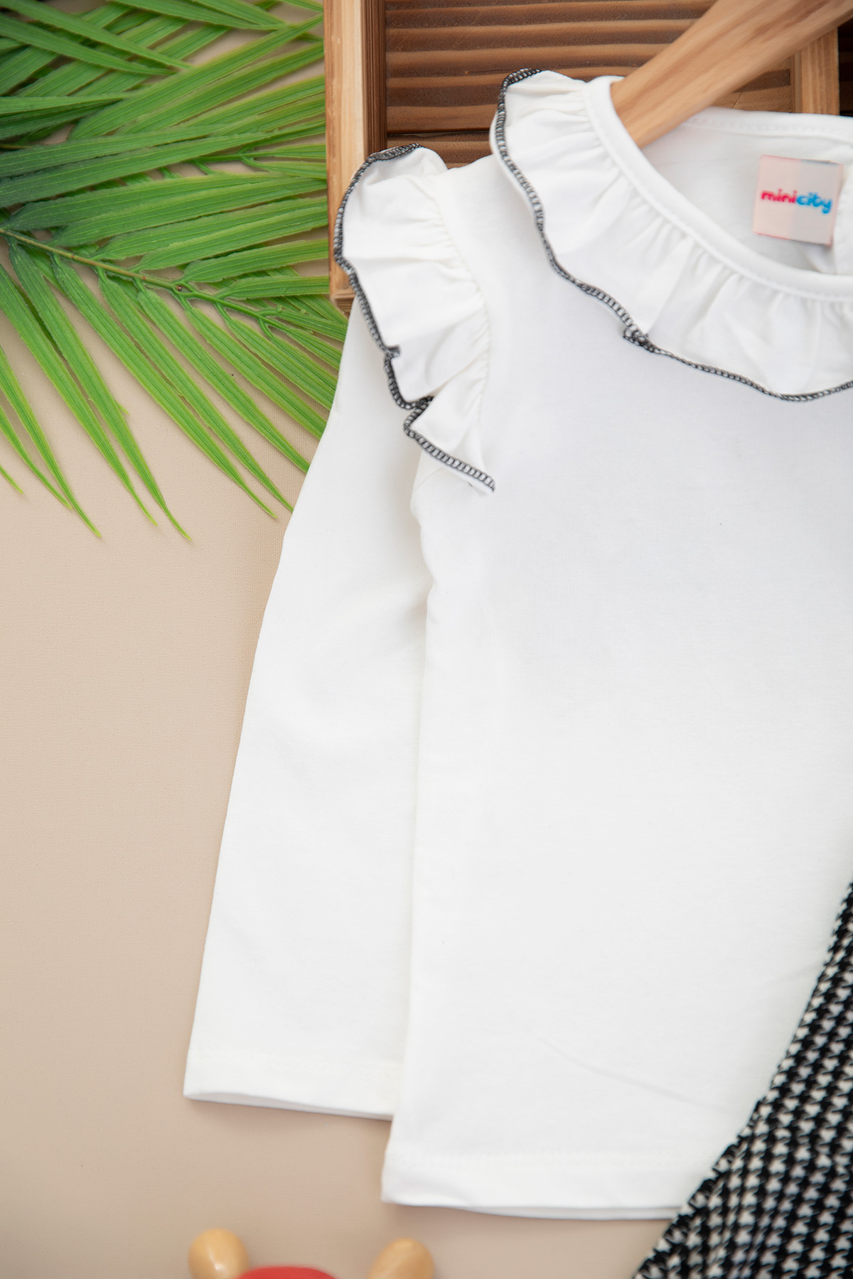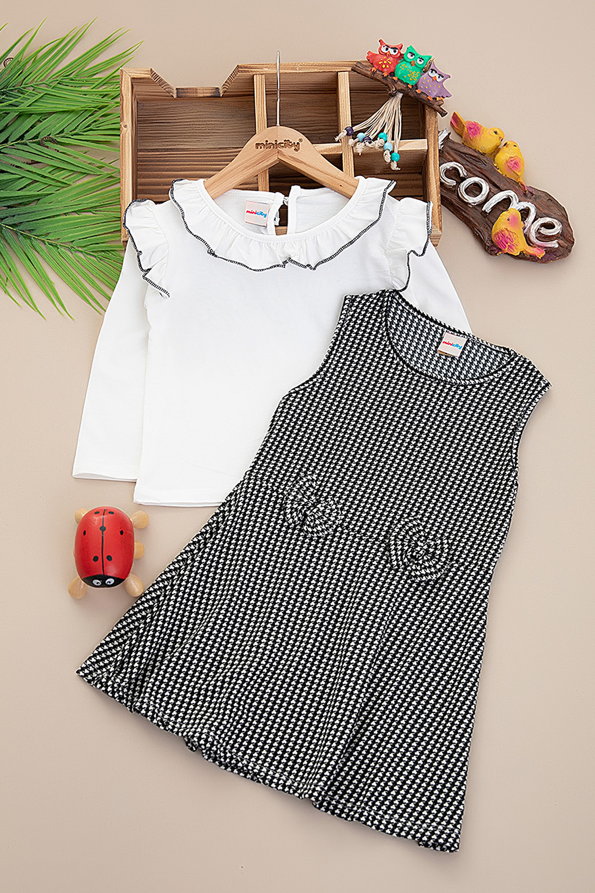 Kız Çocuk Yaka Kol Fırfırlı Fiyonklu Takım - 12539 (4-8 Yaş)