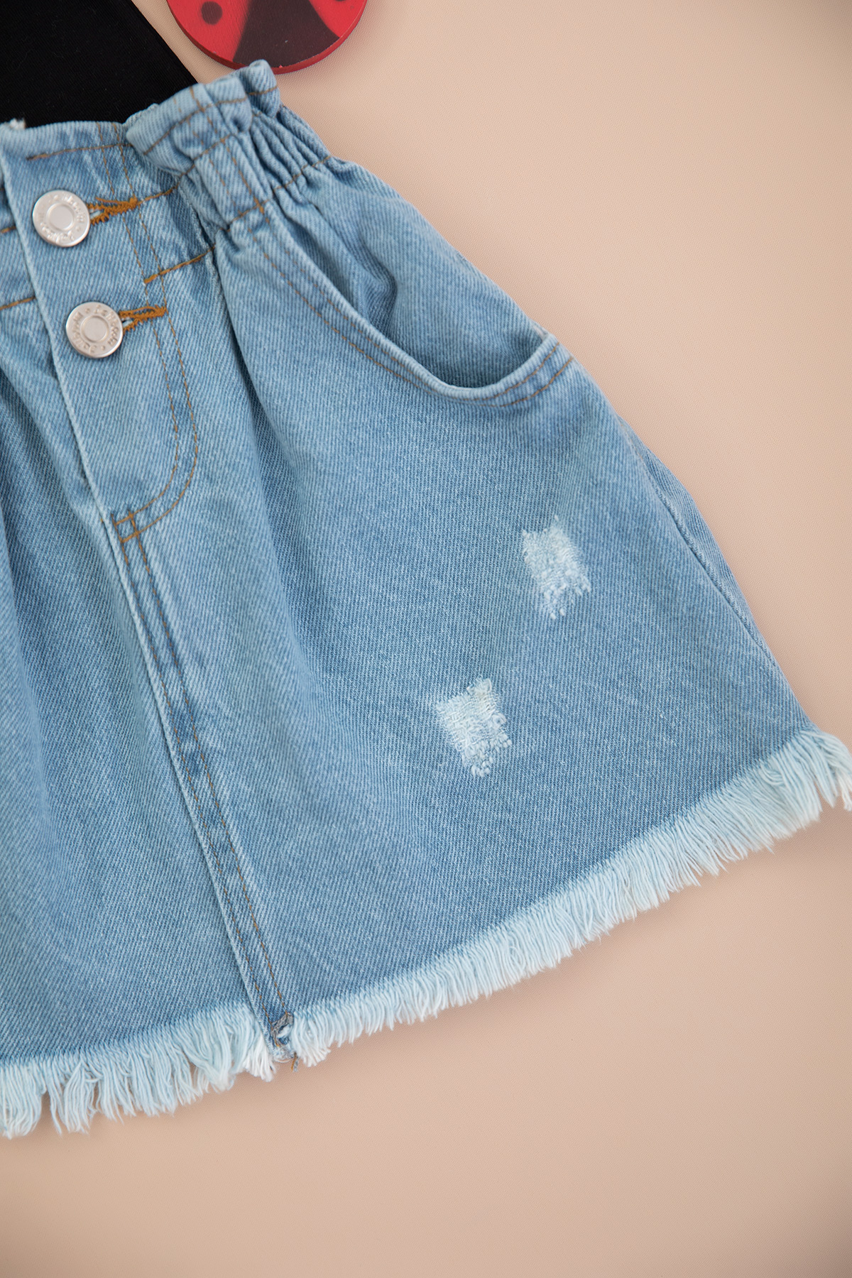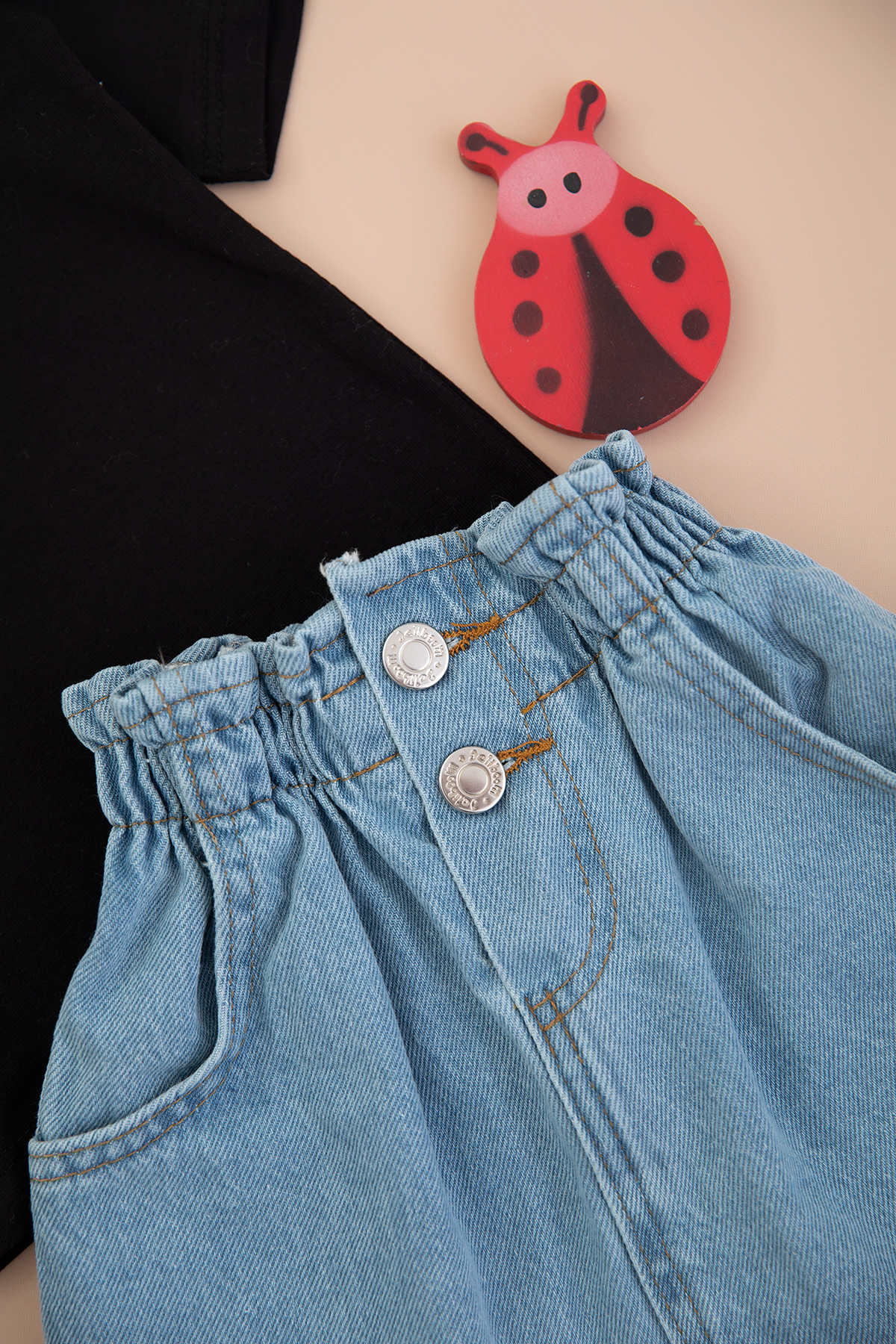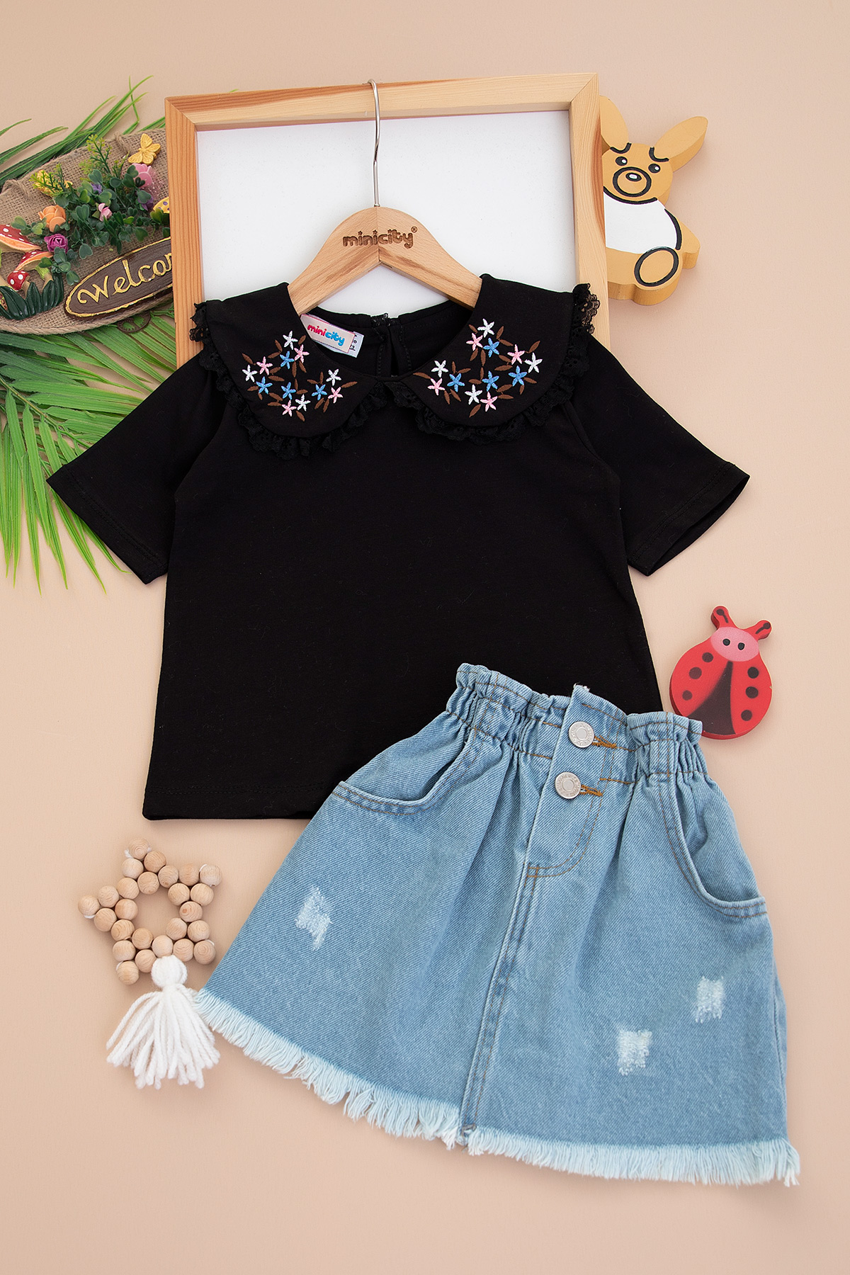 Kız Çocuk Yaka Nakışlı Kot Etek Takım - 029 (2-8 Yaş)