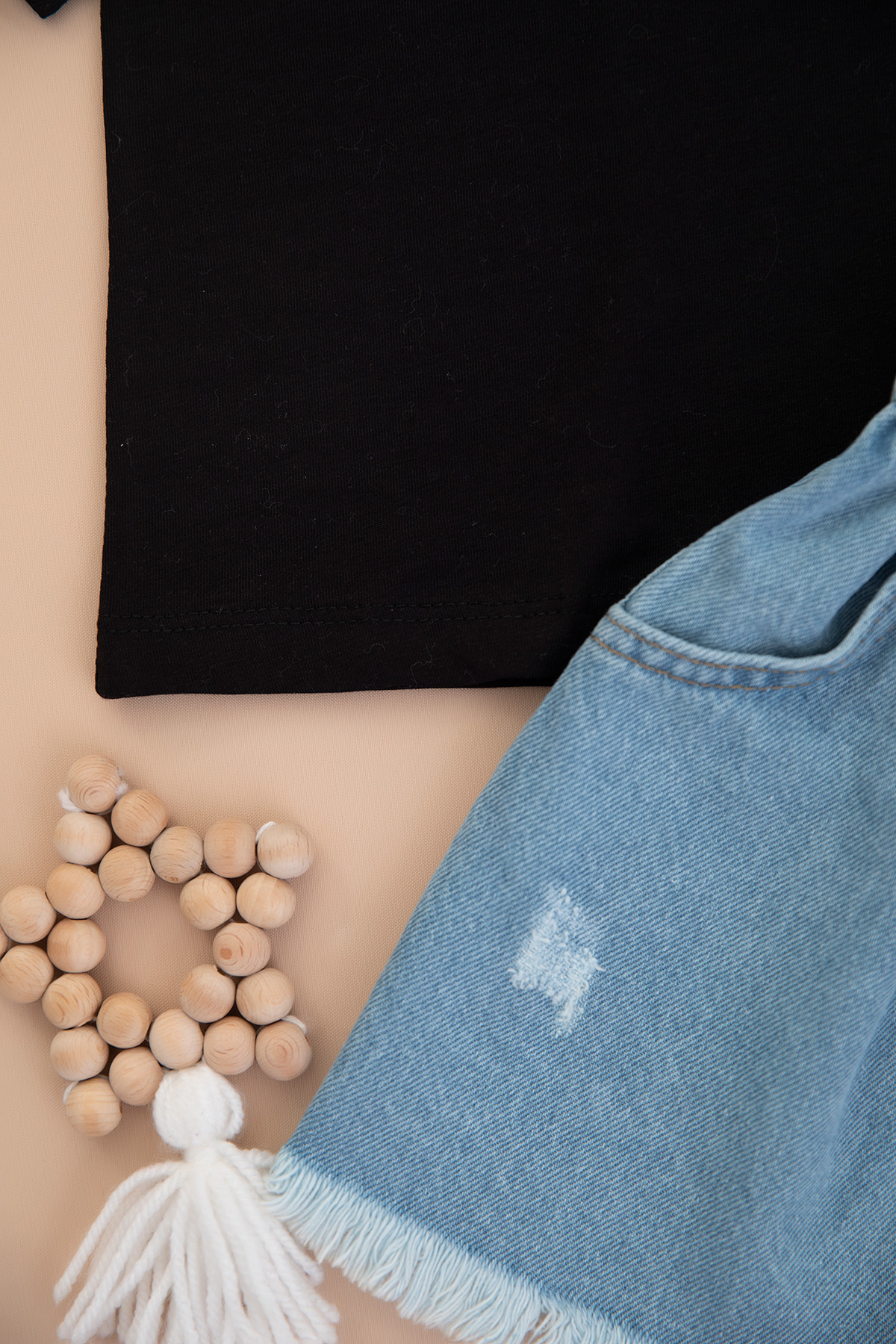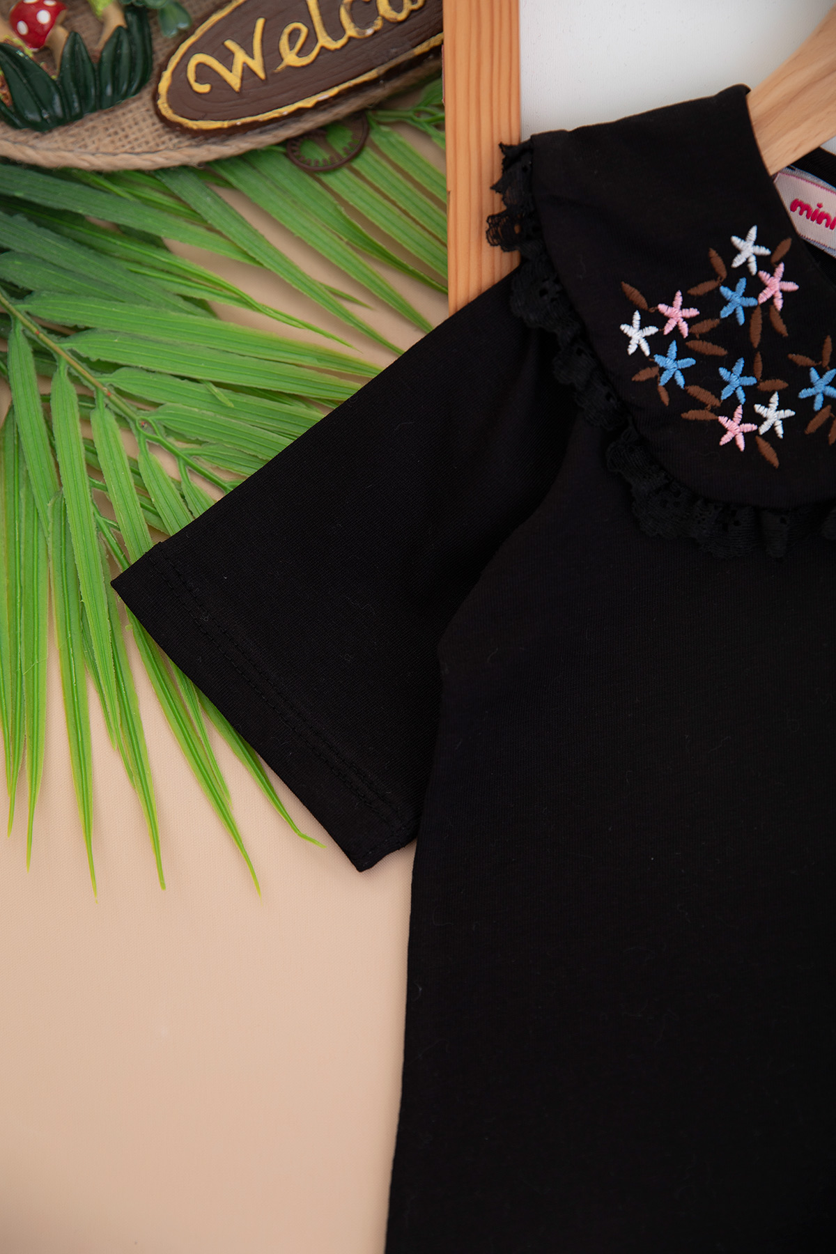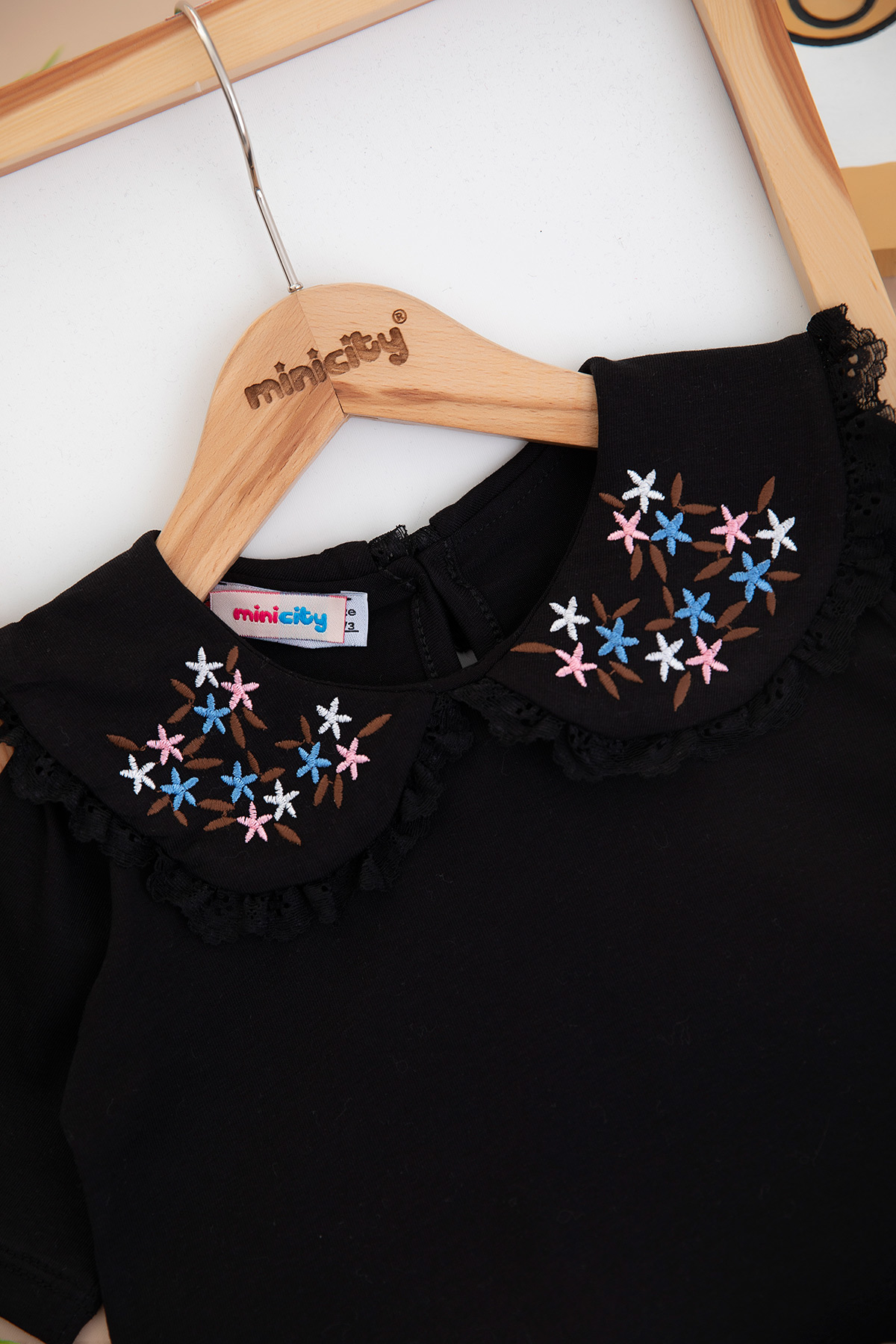 Kız Çocuk Yaka Nakışlı Kot Etek Takım - 029 (2-8 Yaş)