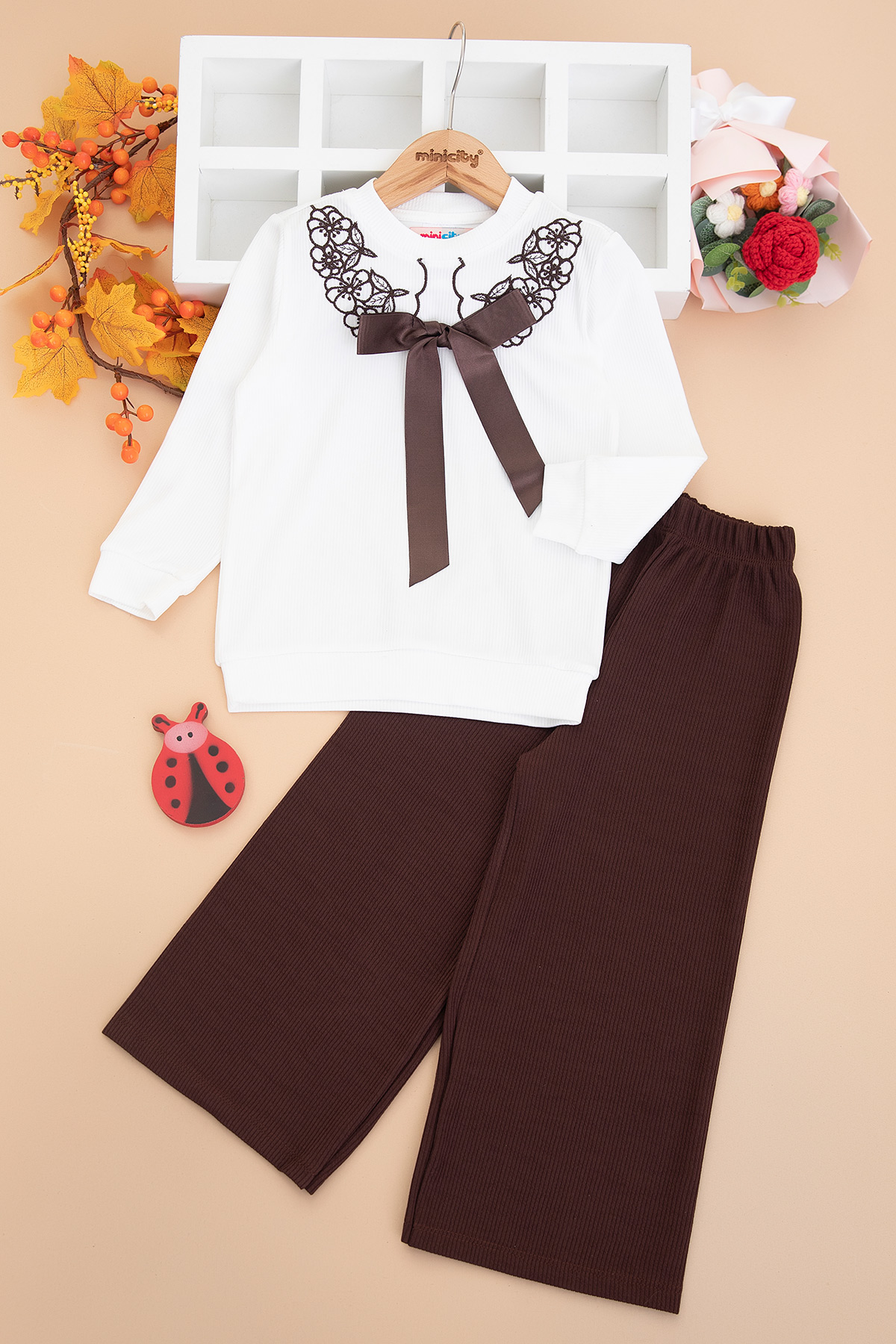 Kız Çocuk Yaka Nakışlı Kurdaleli Takım (3-14 Yaş)