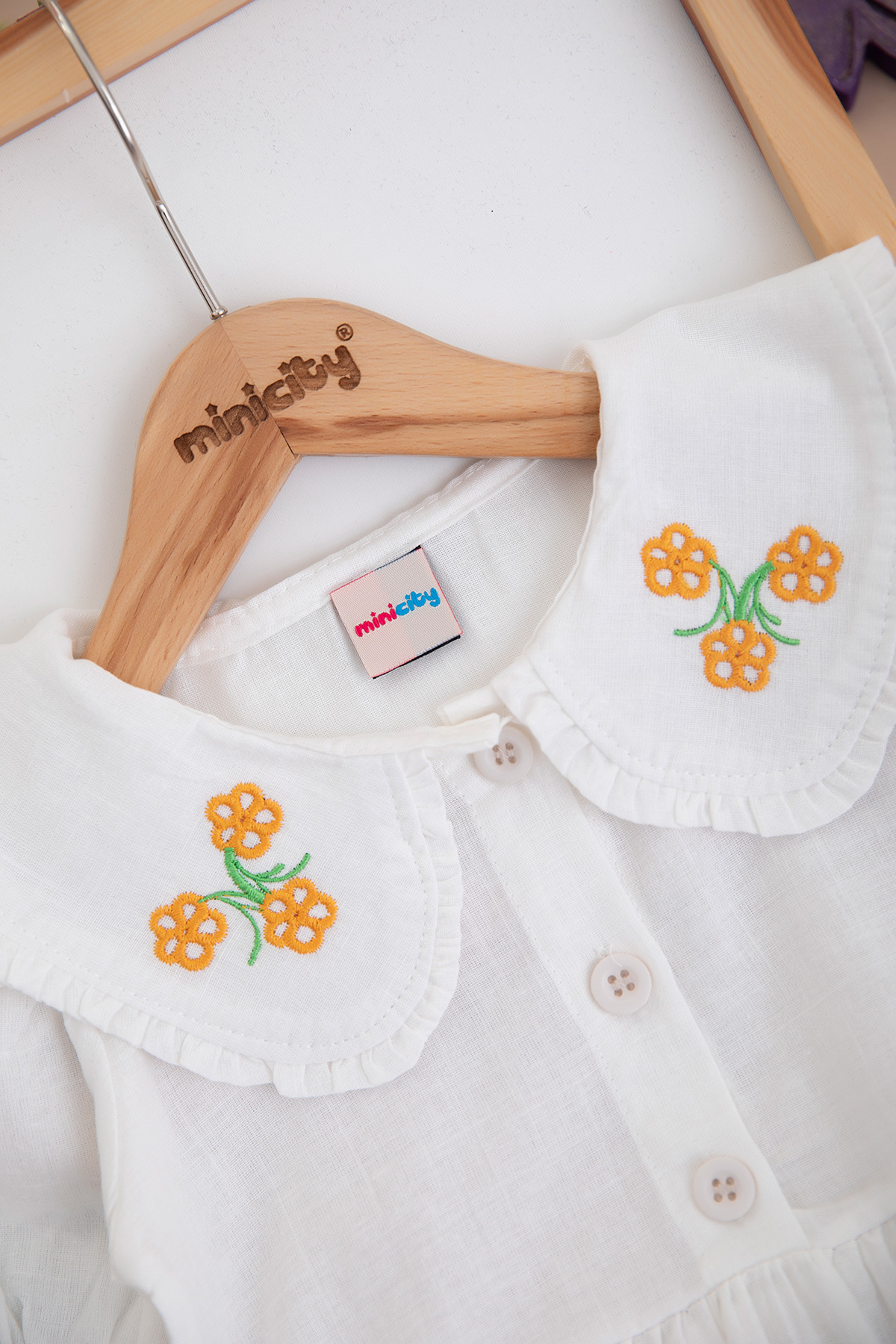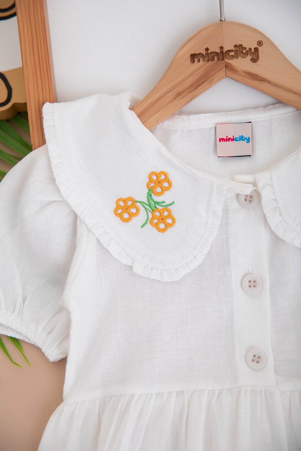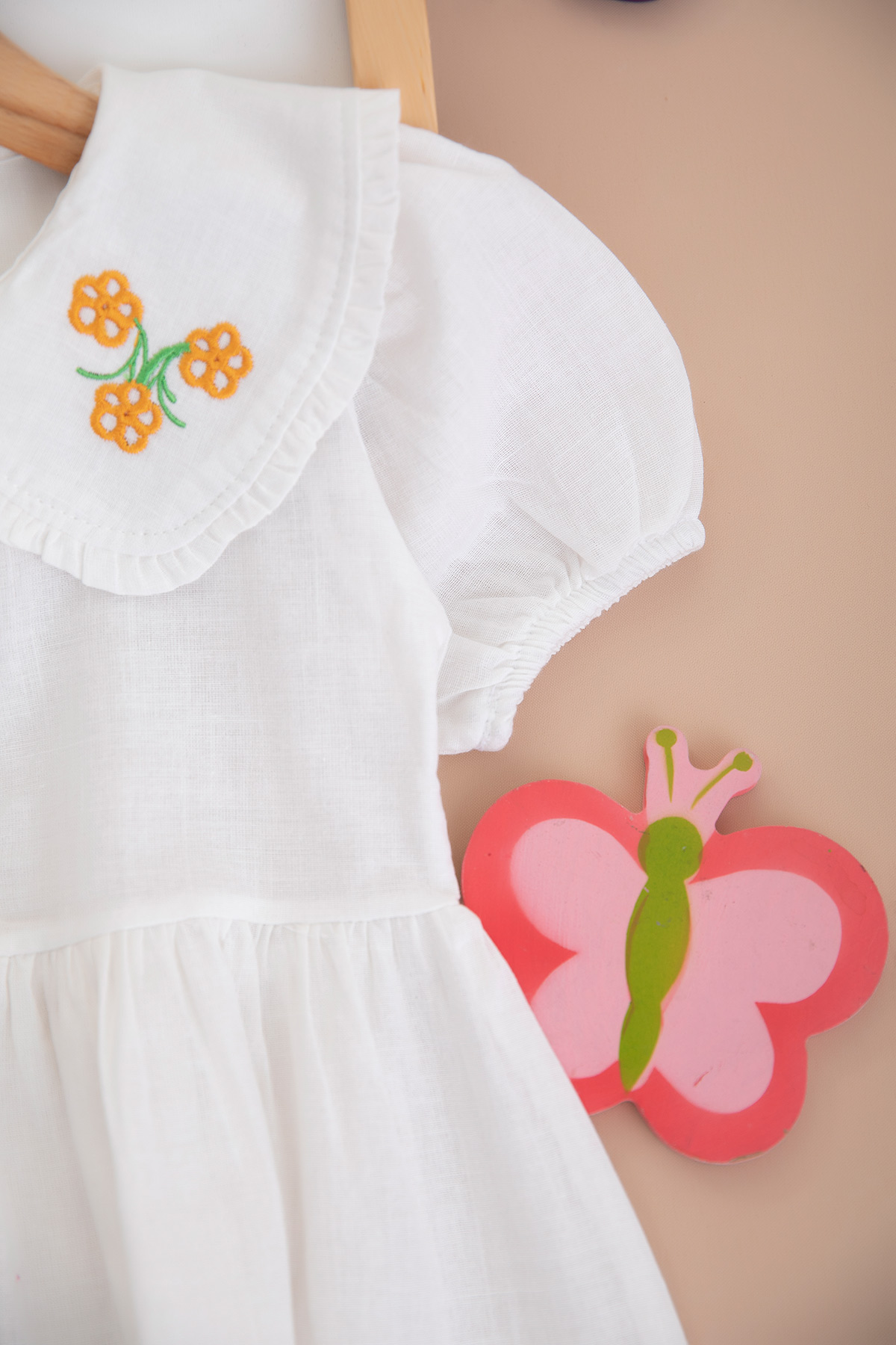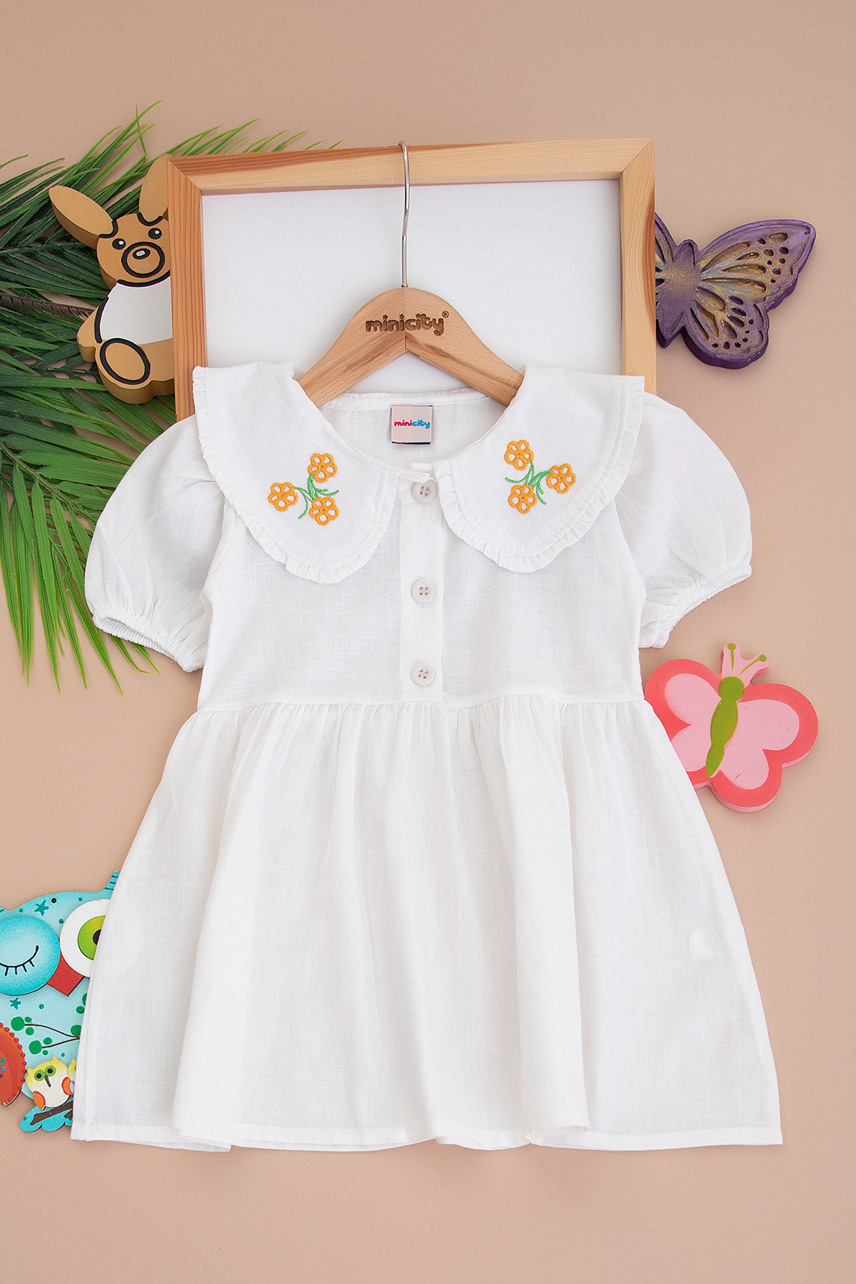 Kız Çocuk Yaka Nakışlı Ön Patlı Elbise - 10116 (2-6 Yaş)