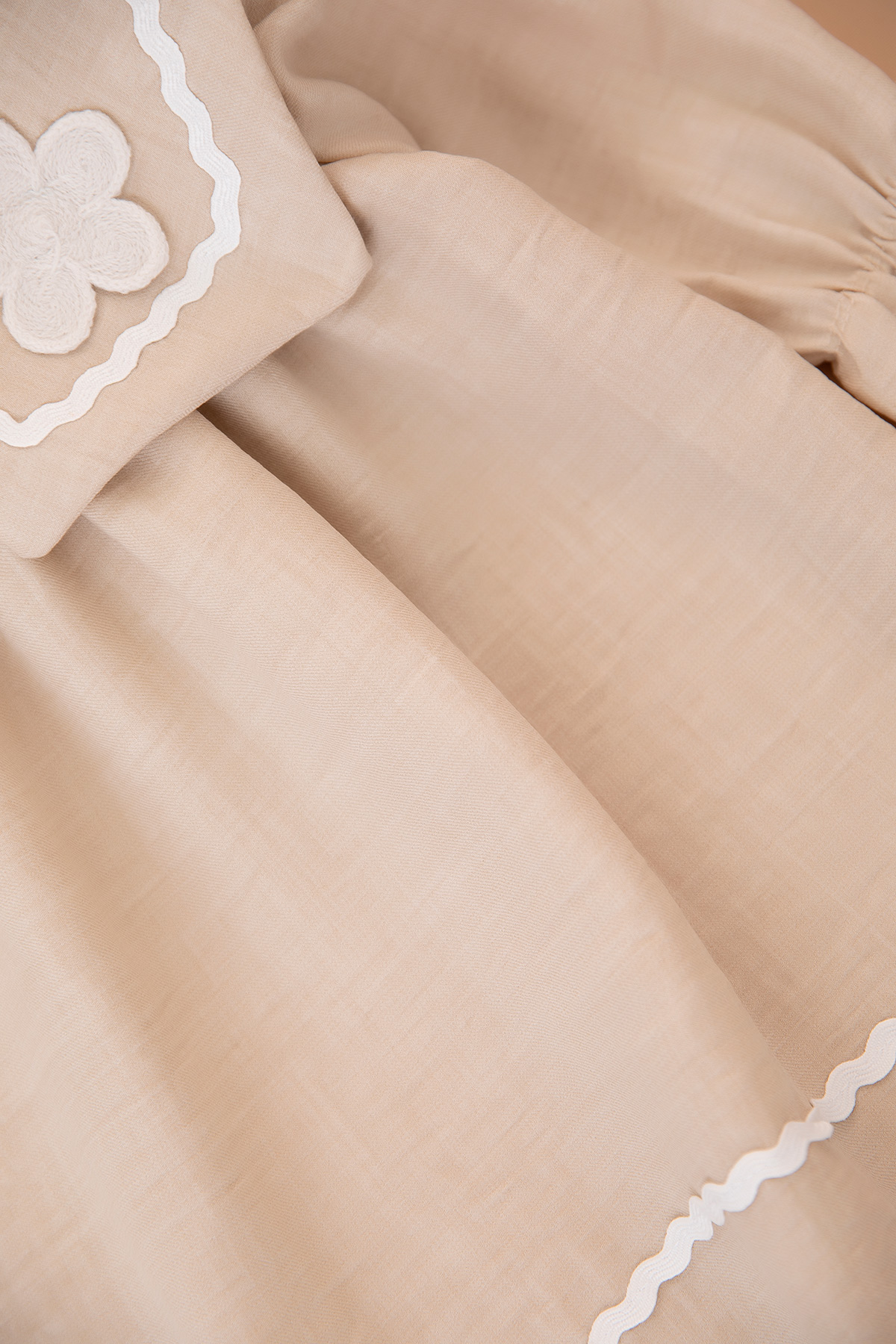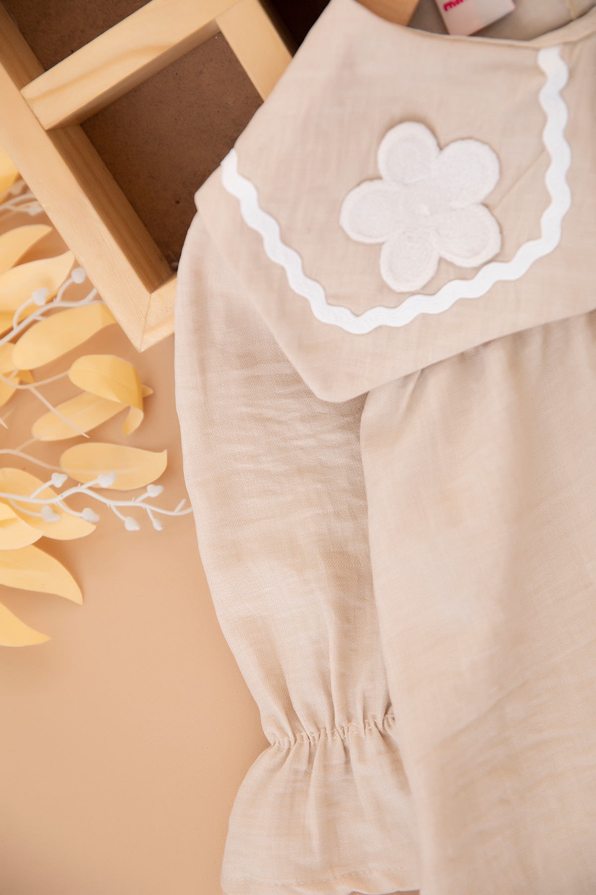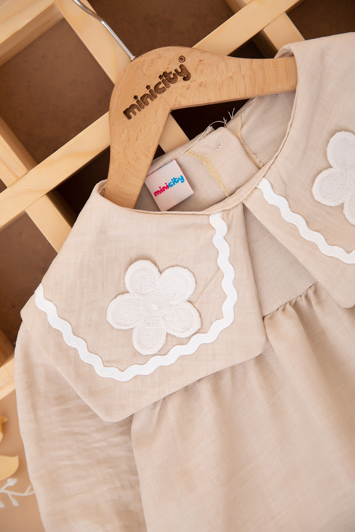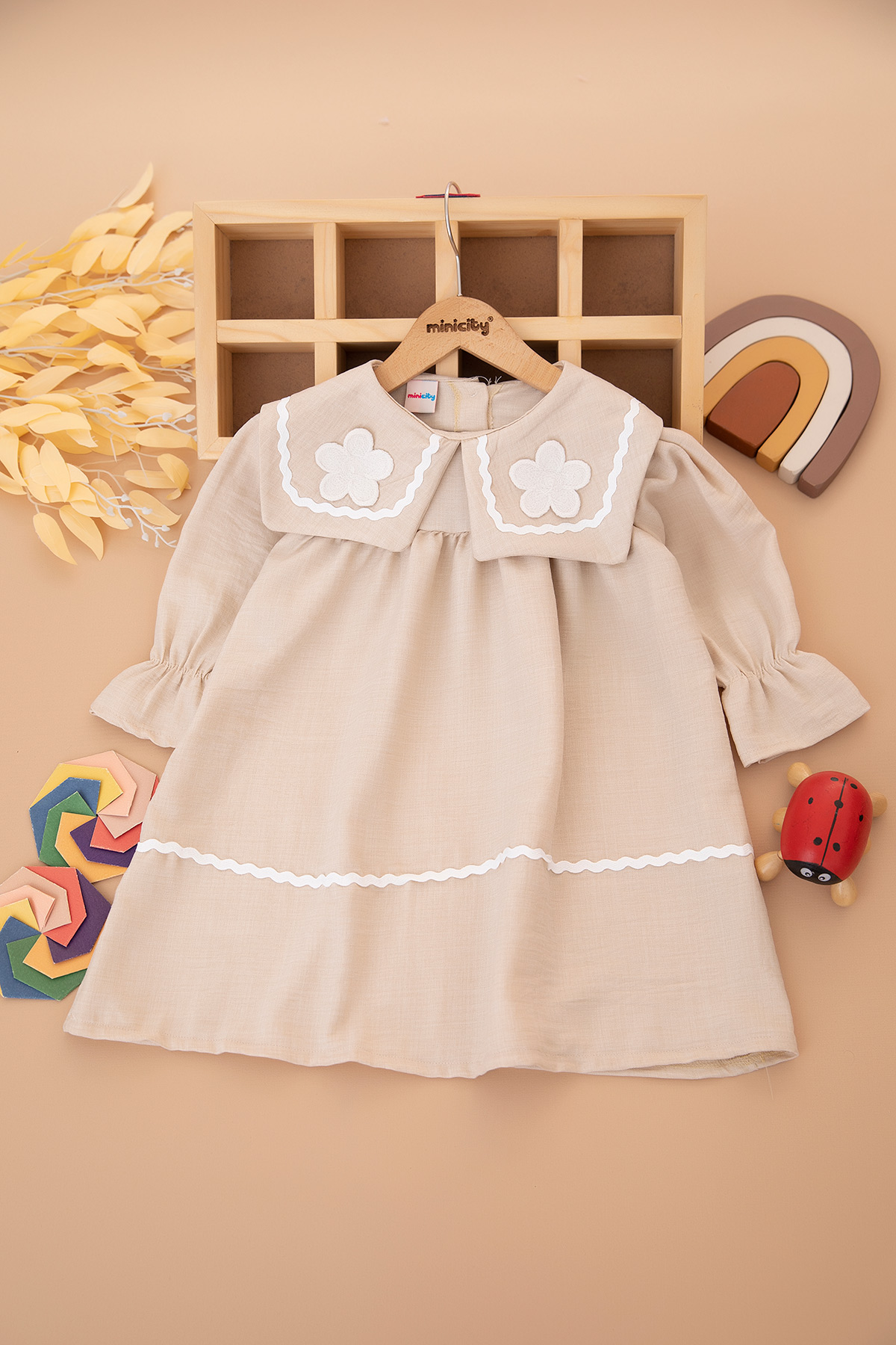 Kız Çocuk Yaka Papatya Nakışlı Elbise - 12024 (4-8 Yaş)
