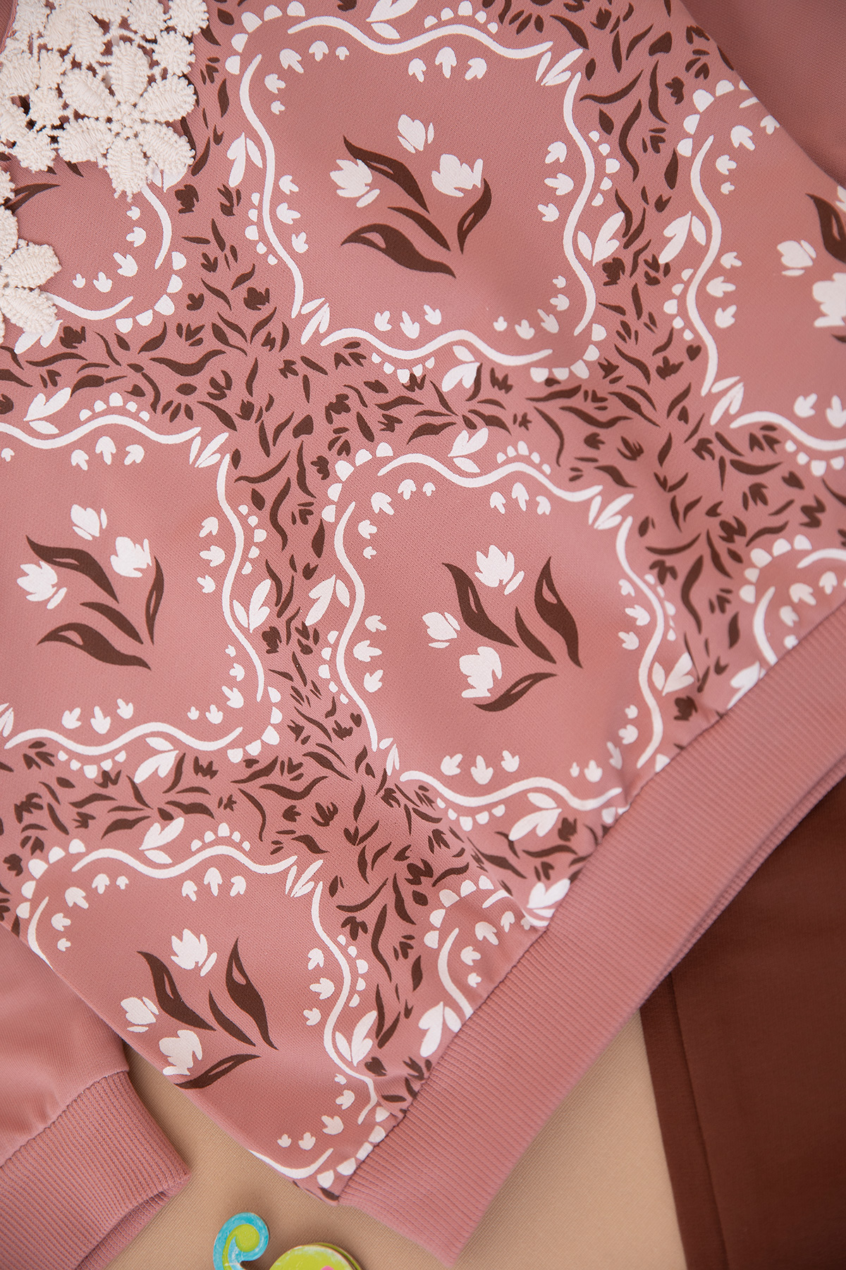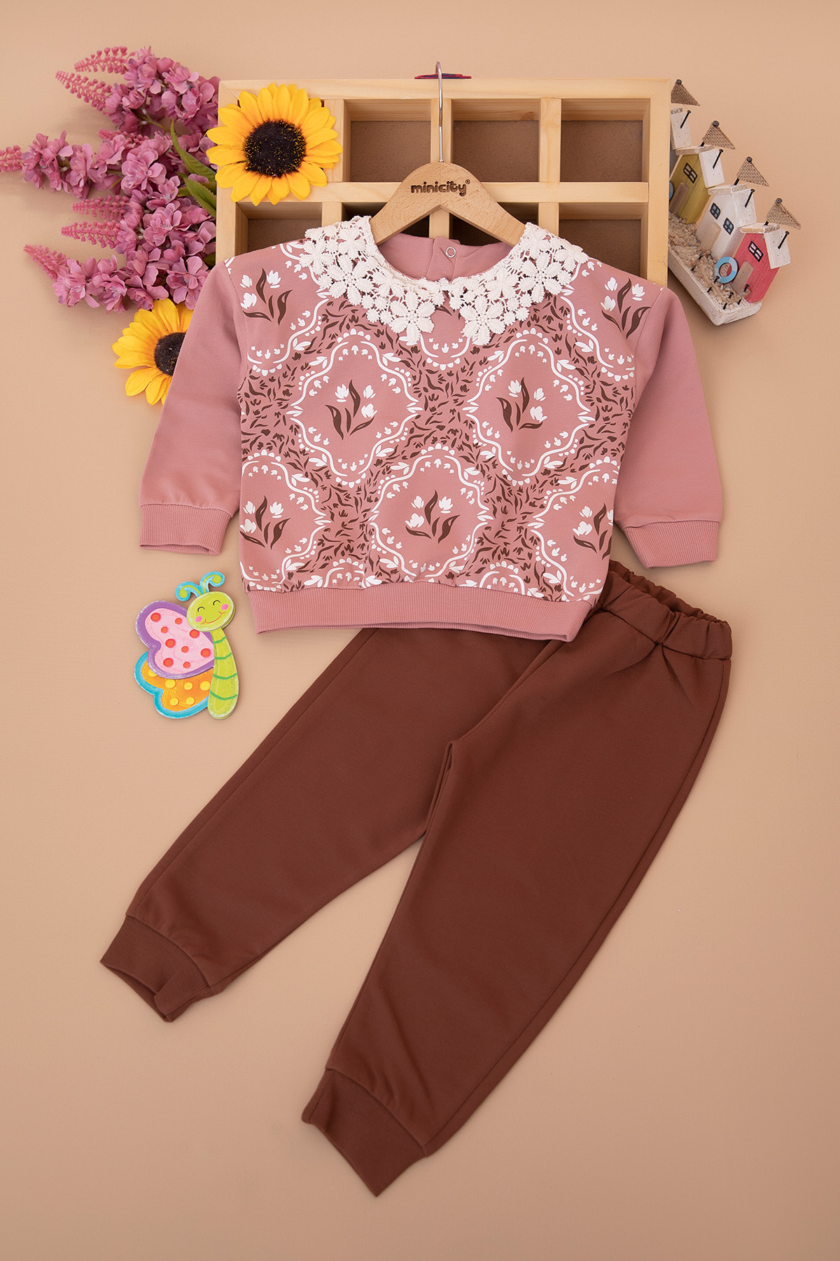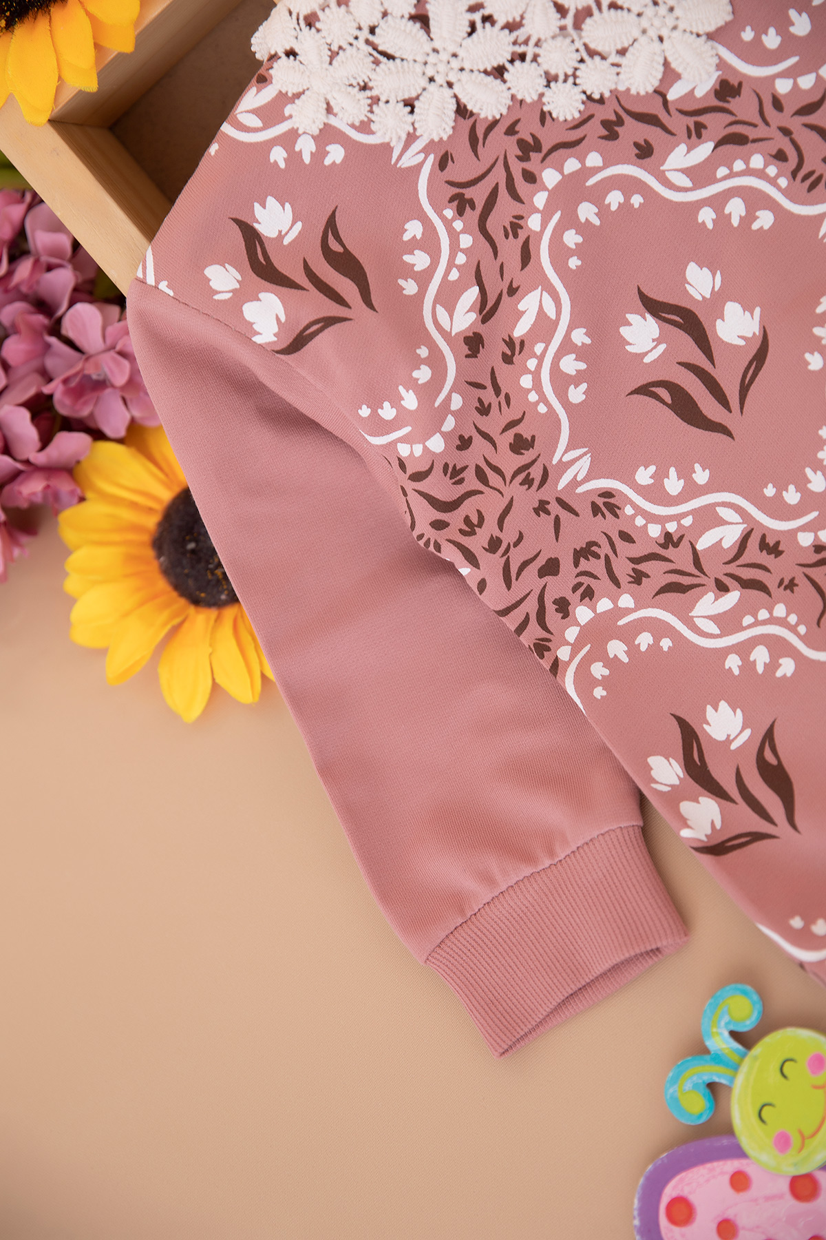 Kız Çocuk Yakalı Antik Desenli Takım - 2825 (2-6 Yaş)