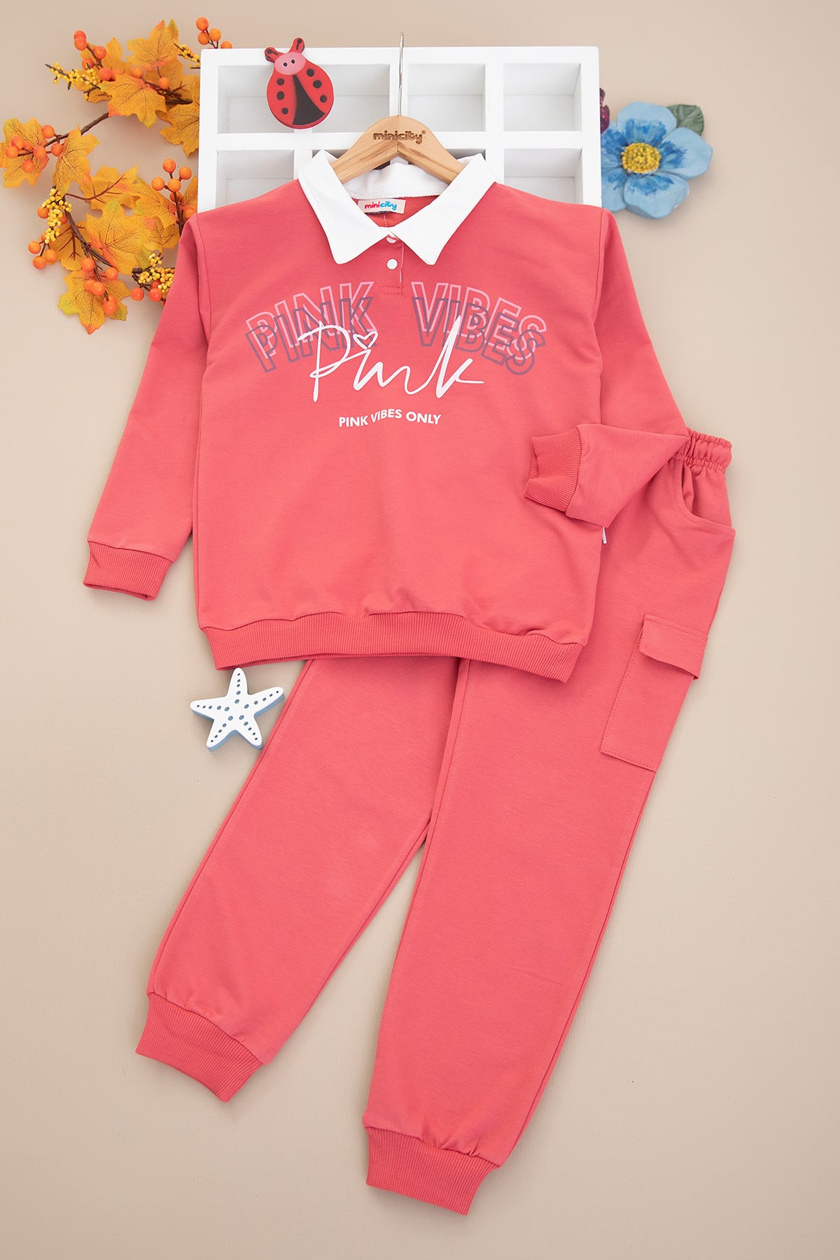 Kız Çocuk Yakalı Pink Vibes Takım - 26004 (7-10 Yaş)