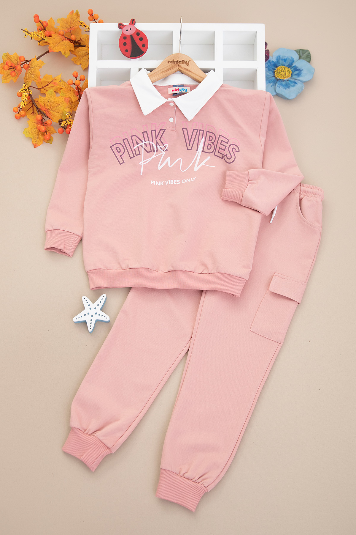 Kız Çocuk Yakalı Pink Vibes Takım - 26004 (7-10 Yaş)