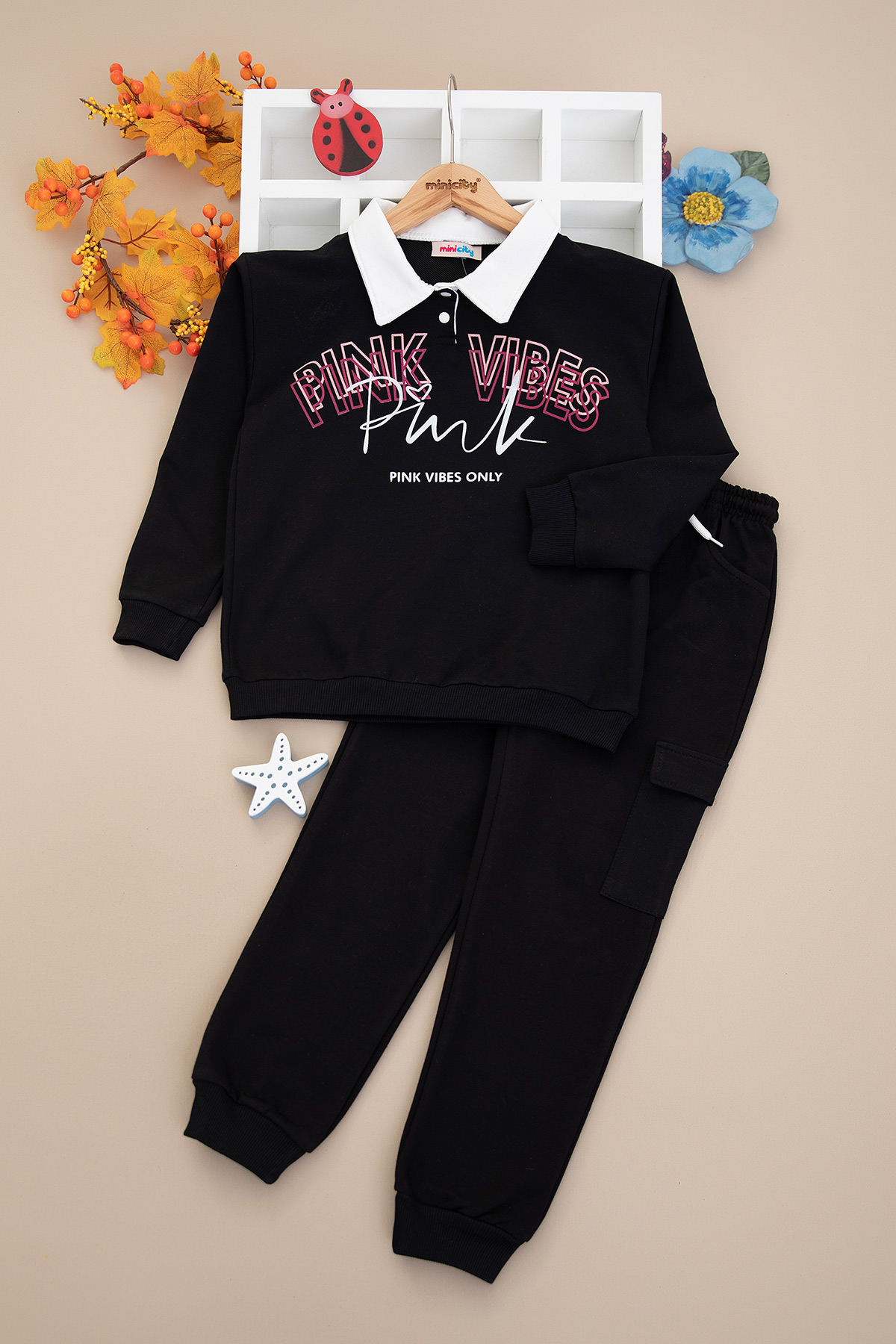 Kız Çocuk Yakalı Pink Vibes Takım - 26005 (3-6 Yaş)
