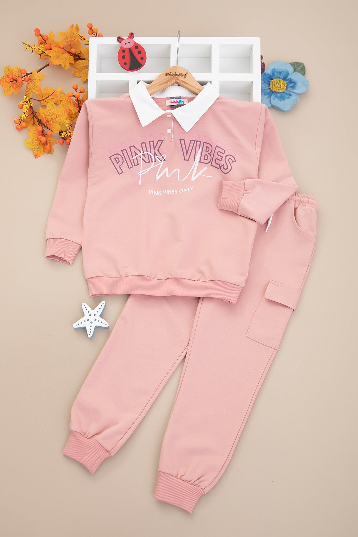 Kız Çocuk Yakalı Pink Vibes Takım - 26005 (3-6 Yaş)