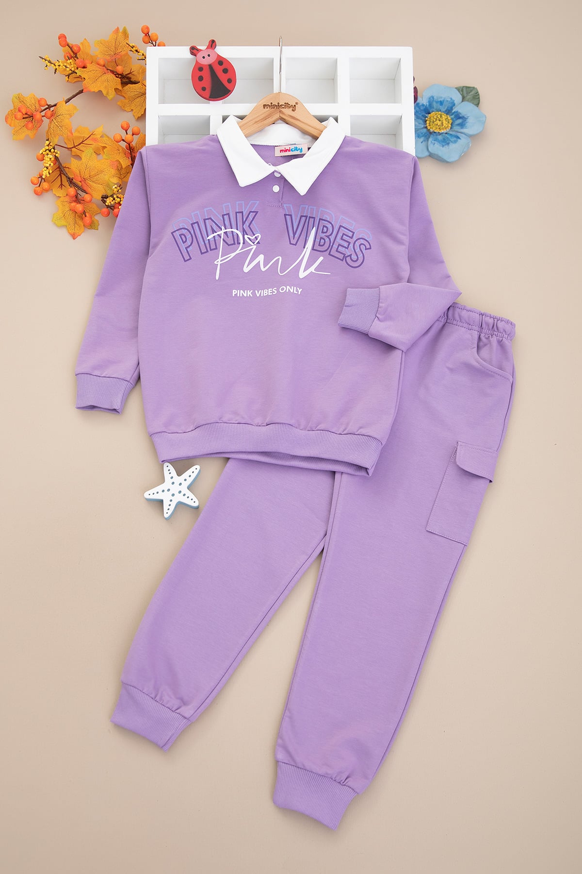 Kız Çocuk Yakalı Pink Vibes Takım - 26005 (3-6 Yaş)