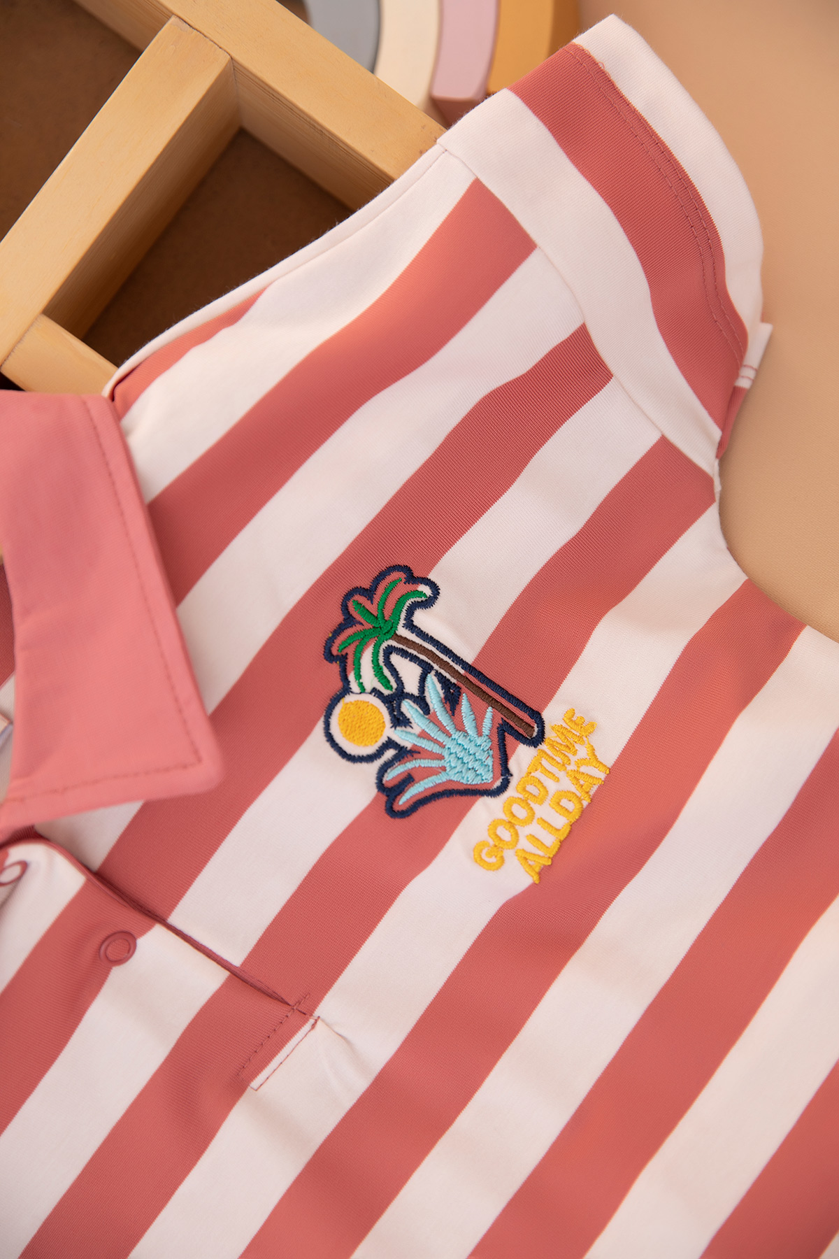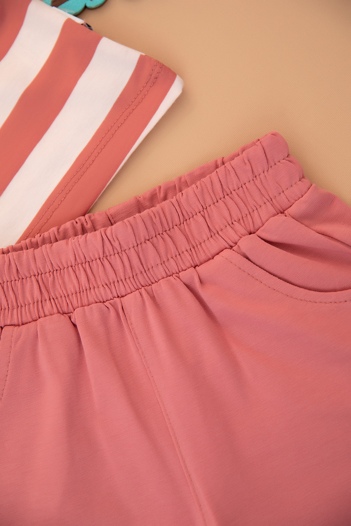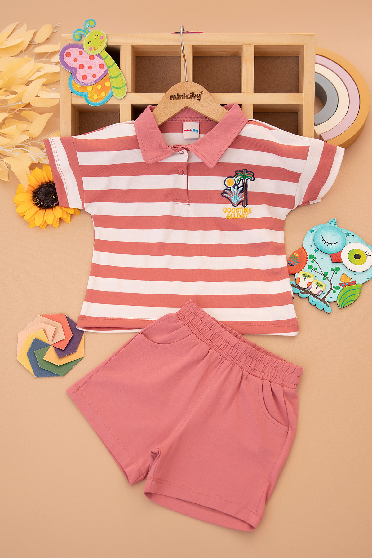 Kız Çocuk Yakalı Ringelli Şortlu Takım - 25201 (3-6 Yaş)