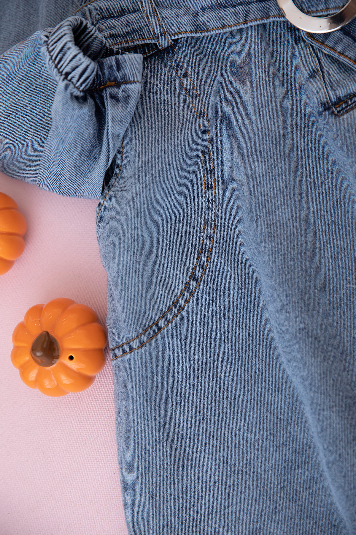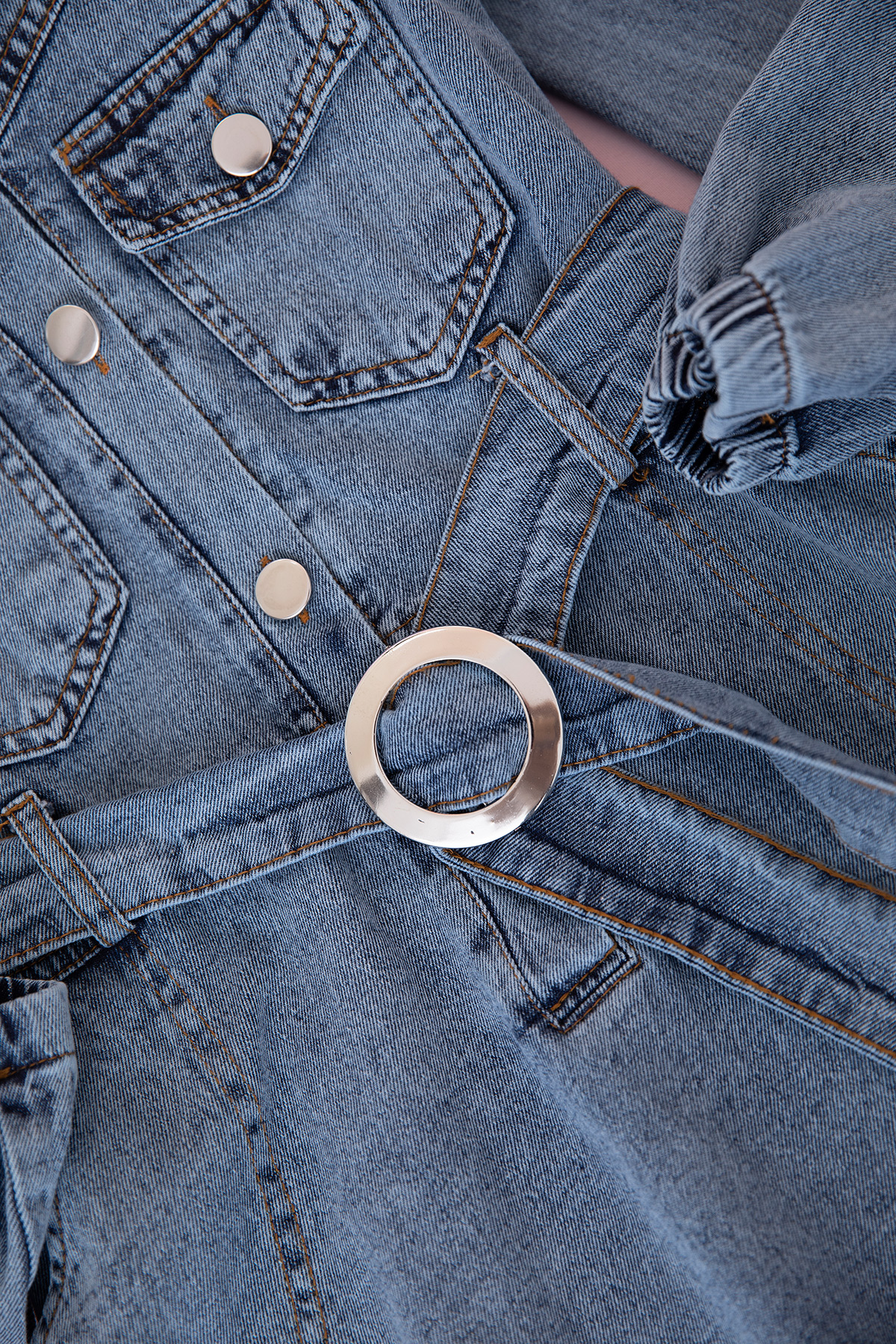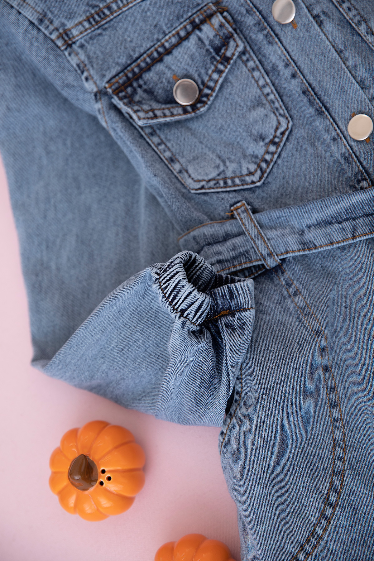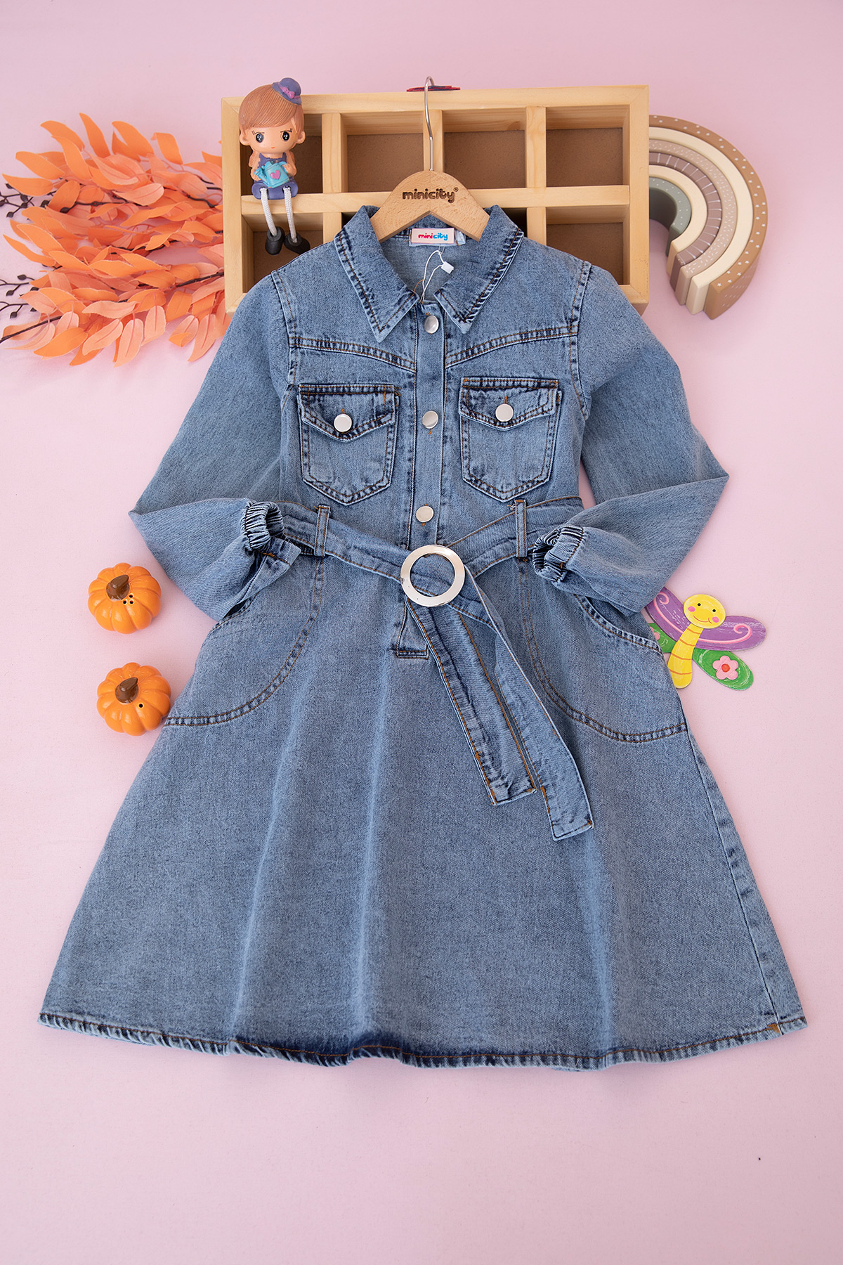 Kız Çocuk Yakalı Uzun Kol Kot Elbise - 9032 (9-14 Yaş)