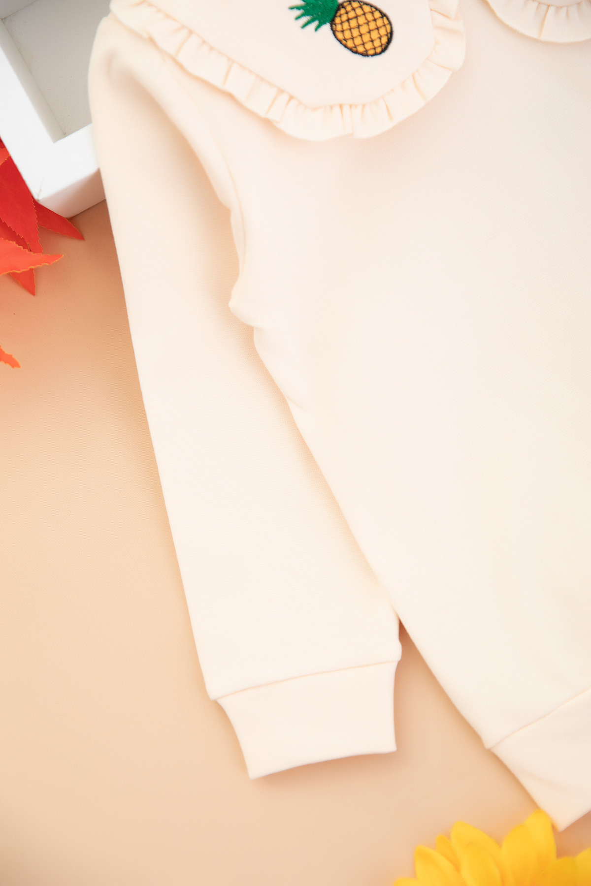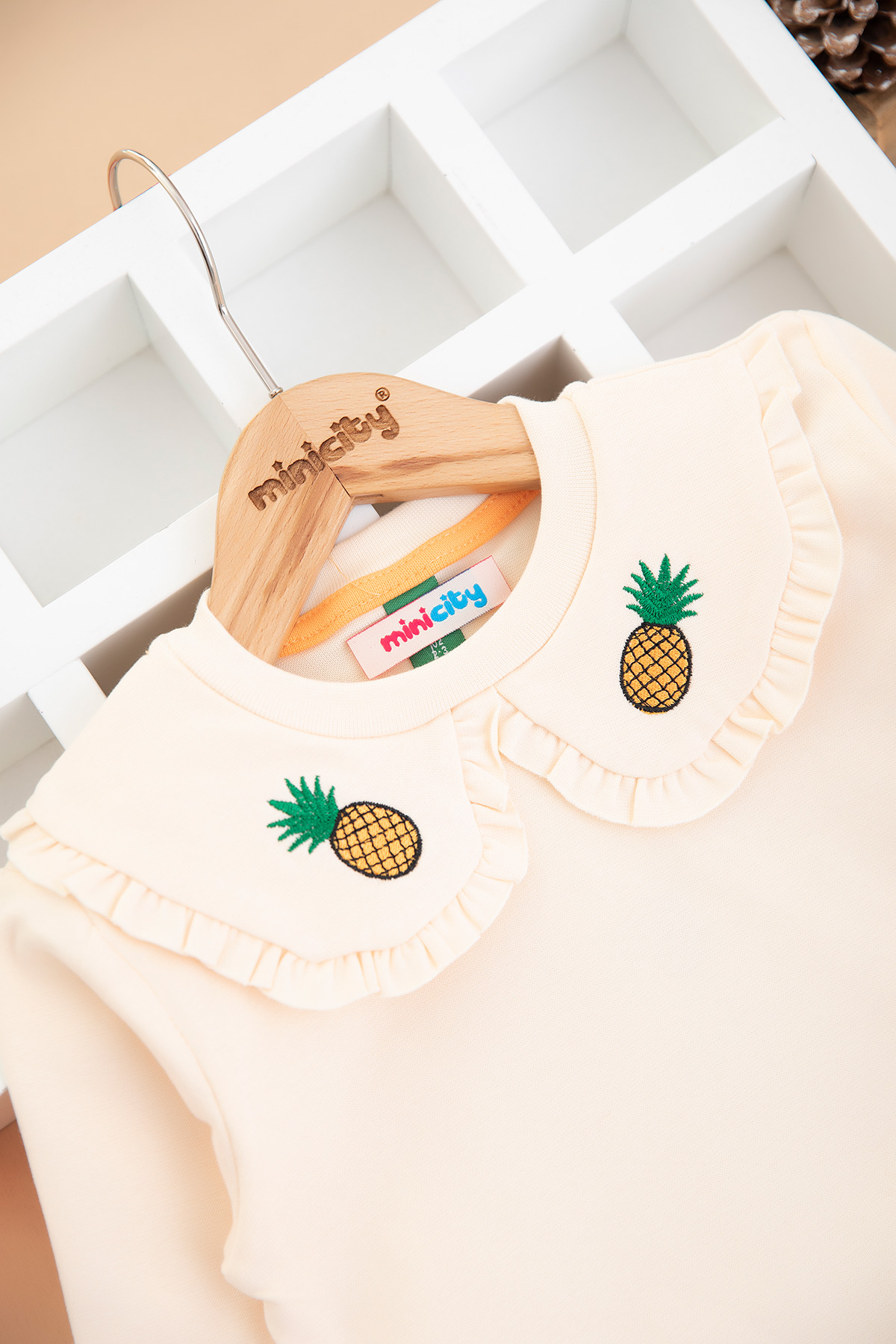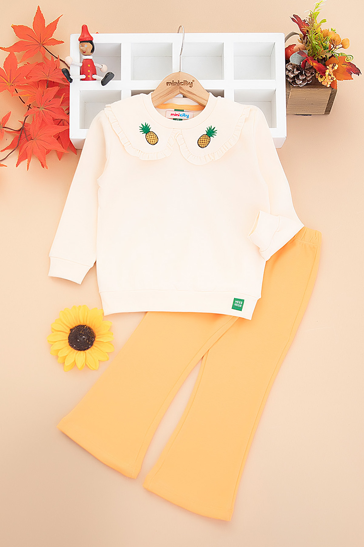 Kız Çocuk Yakası Ananas Nakışlı Taytlı Takım (2-7 Yaş)