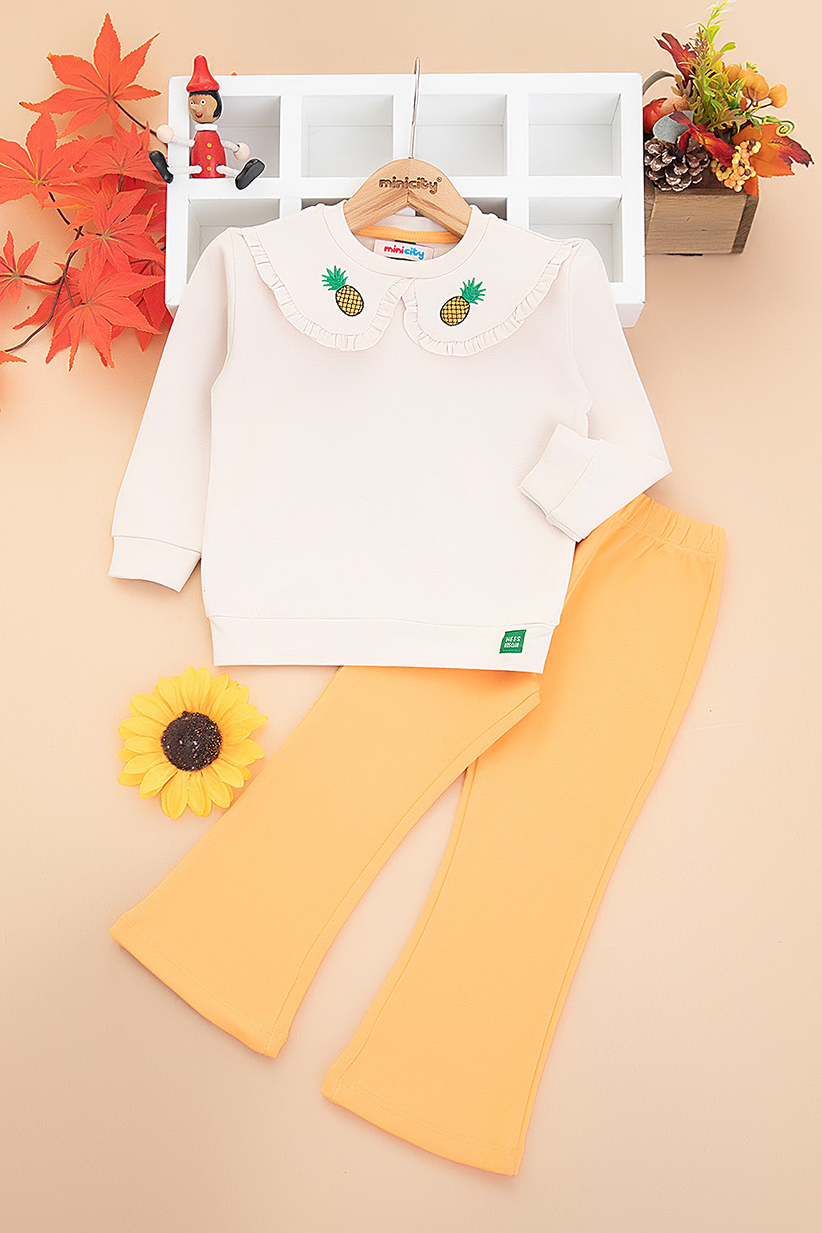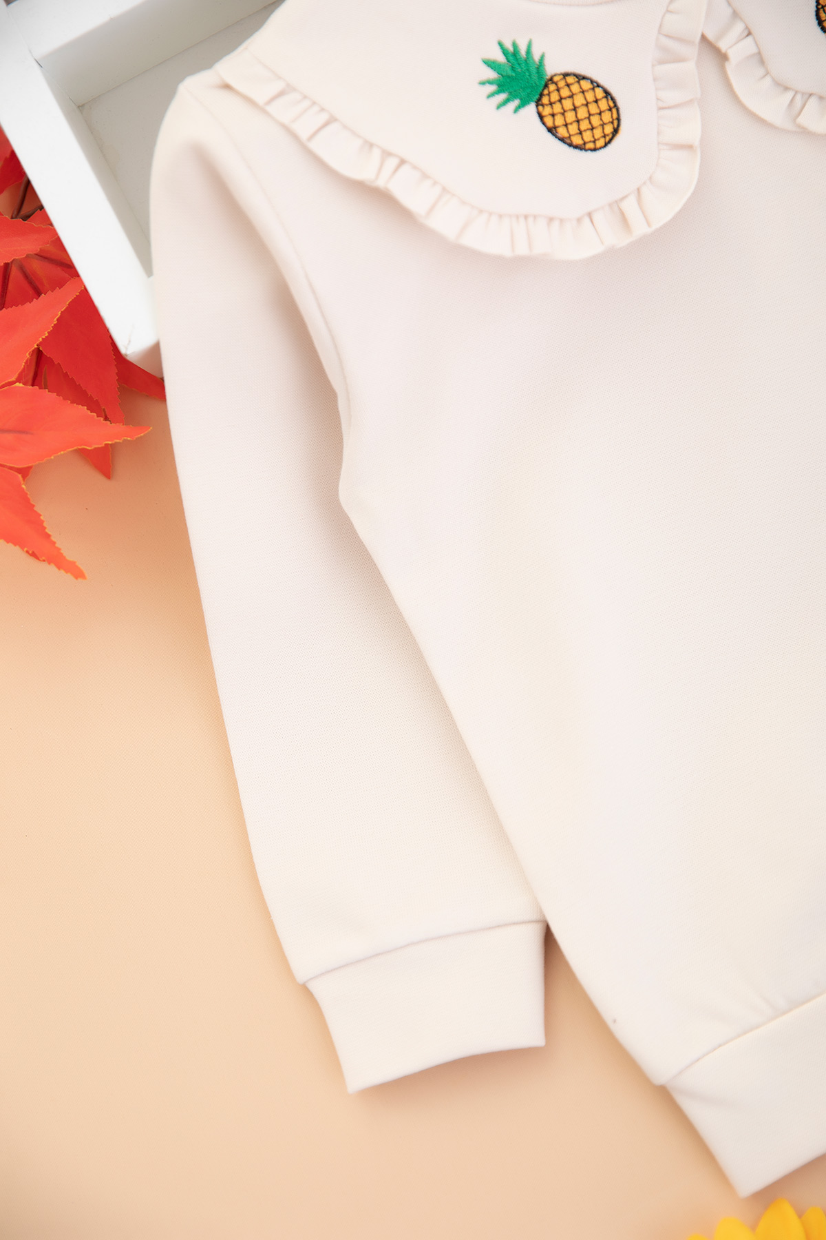 Kız Çocuk Yakası Ananas Nakışlı Taytlı Takım (2-7 Yaş)