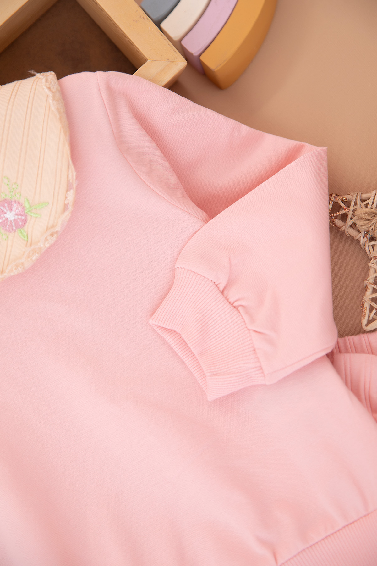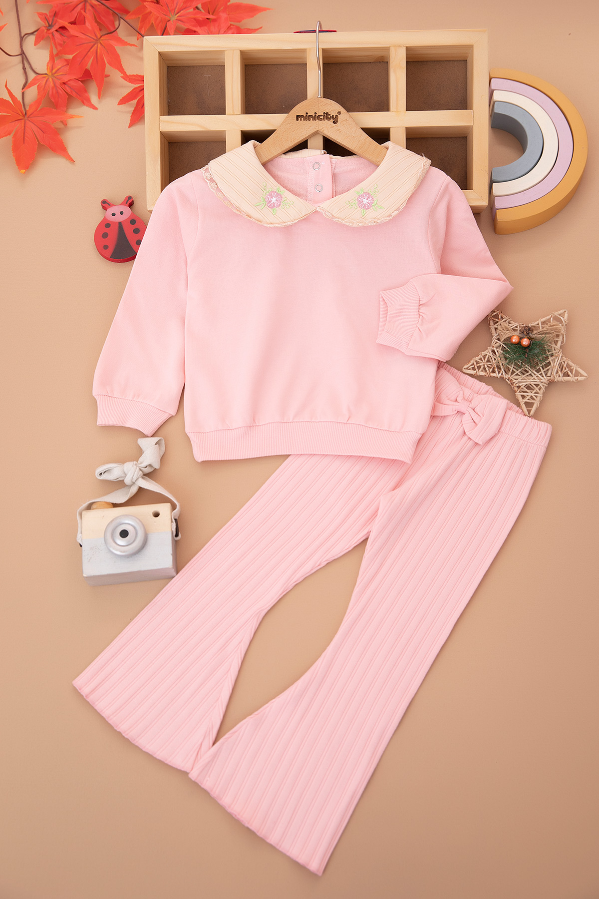 Kız Çocuk Yakası Çiçek Nakışlı 2`Li Takım - 40615 (2-5 Yaş)